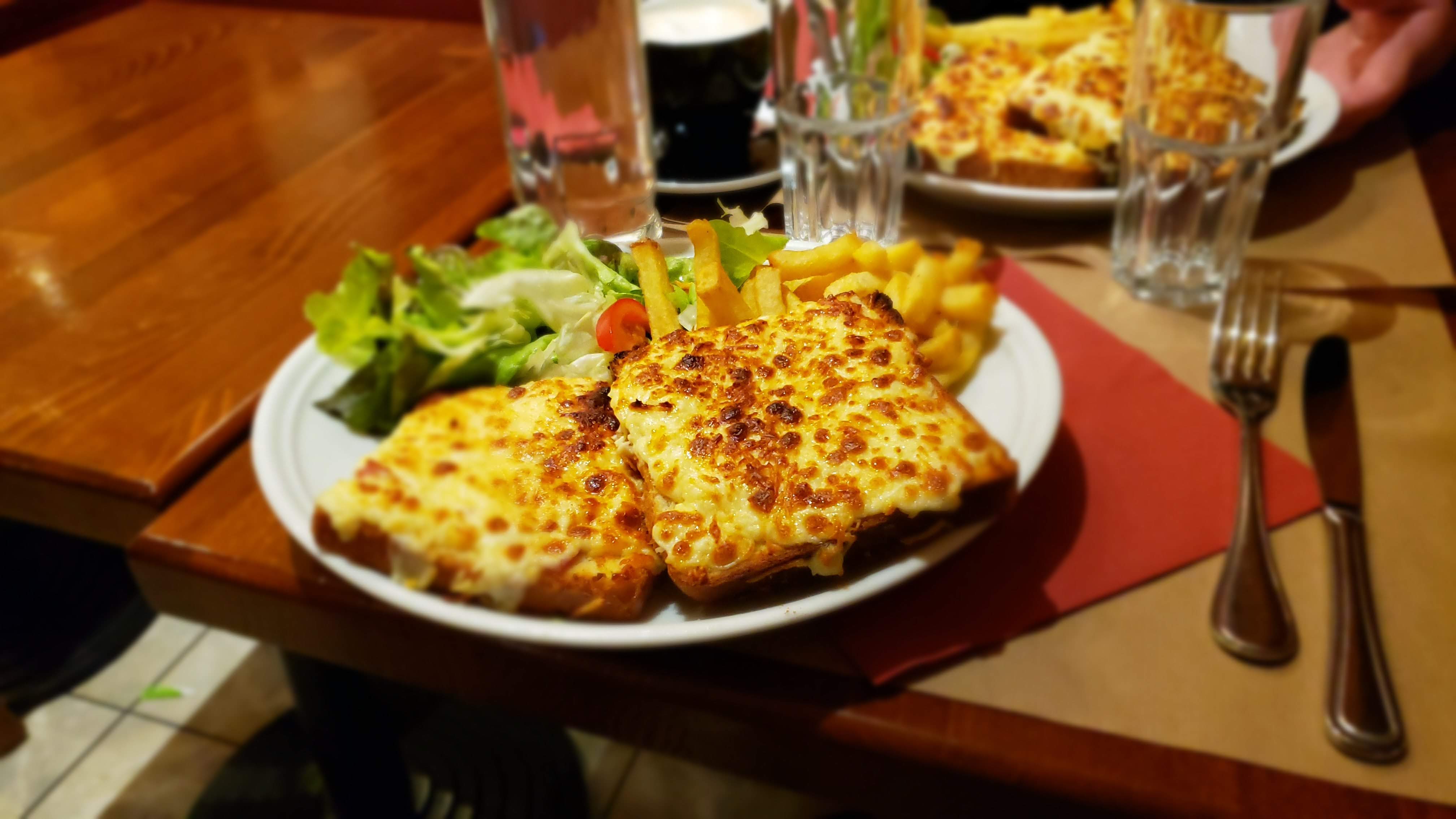 La nourriture était correcte, le service n'était pas génial. Notre serveur est parti à mi-chemin du repas et n'a pas pris la peine d'apporter l'assiette d'une personne. Au moment où nous avons attiré l'attention de quelqu'un, tout le monde avait fini la nourriture, puis l'homme s'est mis en colère quand nous ne voulions pas de croque froid. Je ne le recommanderais pas.