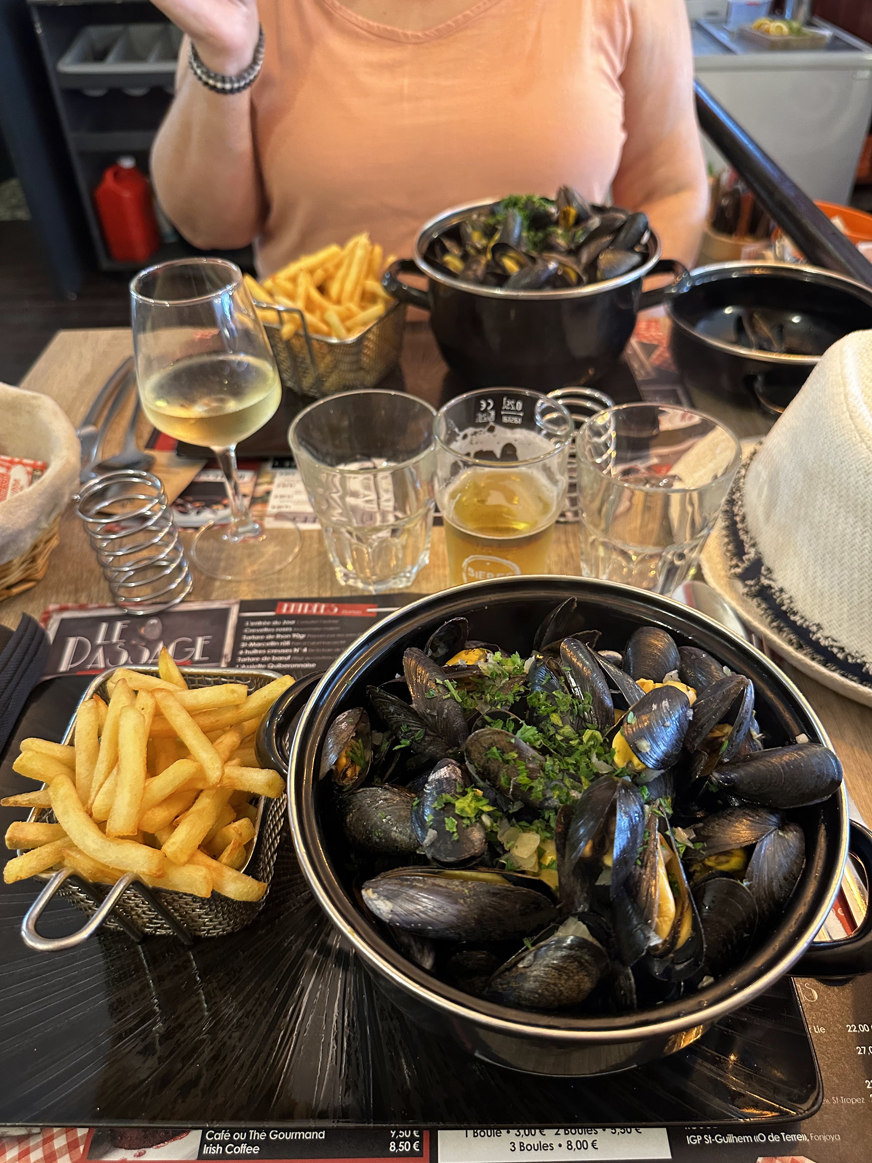 Les moules sont délicieuses, dans la salade les lardons et les patates sont excellents, tout fait maison. Très appétissant et le personnel très accueillant et pas trop cher avec vu sur l'océan. Super restaurant :) Meilleur moule jamais mangé :)