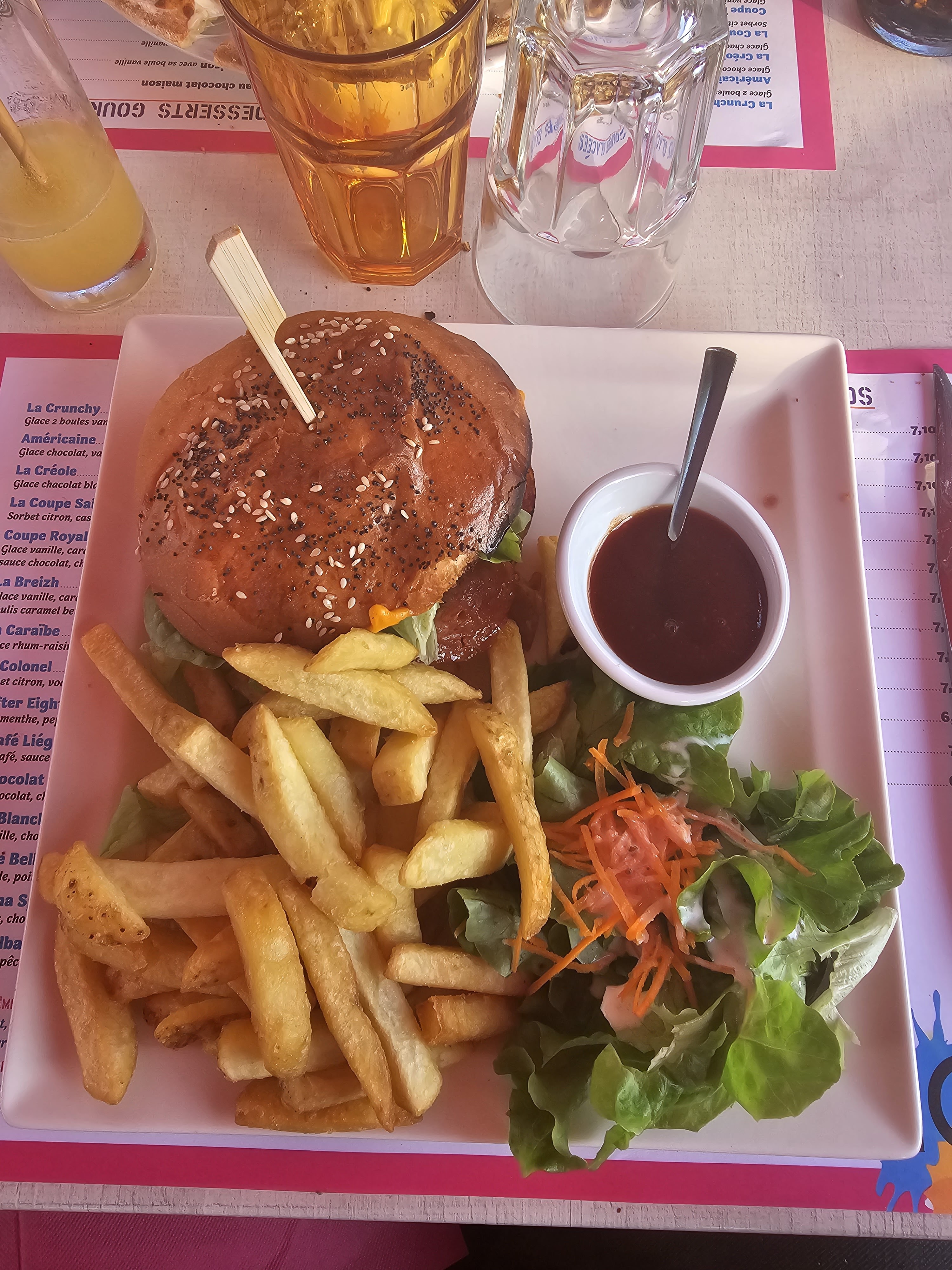 Pour une première fois à Argentan nous nous sommes régalés hamburger 🍔excellent garniture copieuse🍟🥗 et la mousse au chocolat 🍫 un régal on recommande vivement vous ne serez pas déçu 😉👍