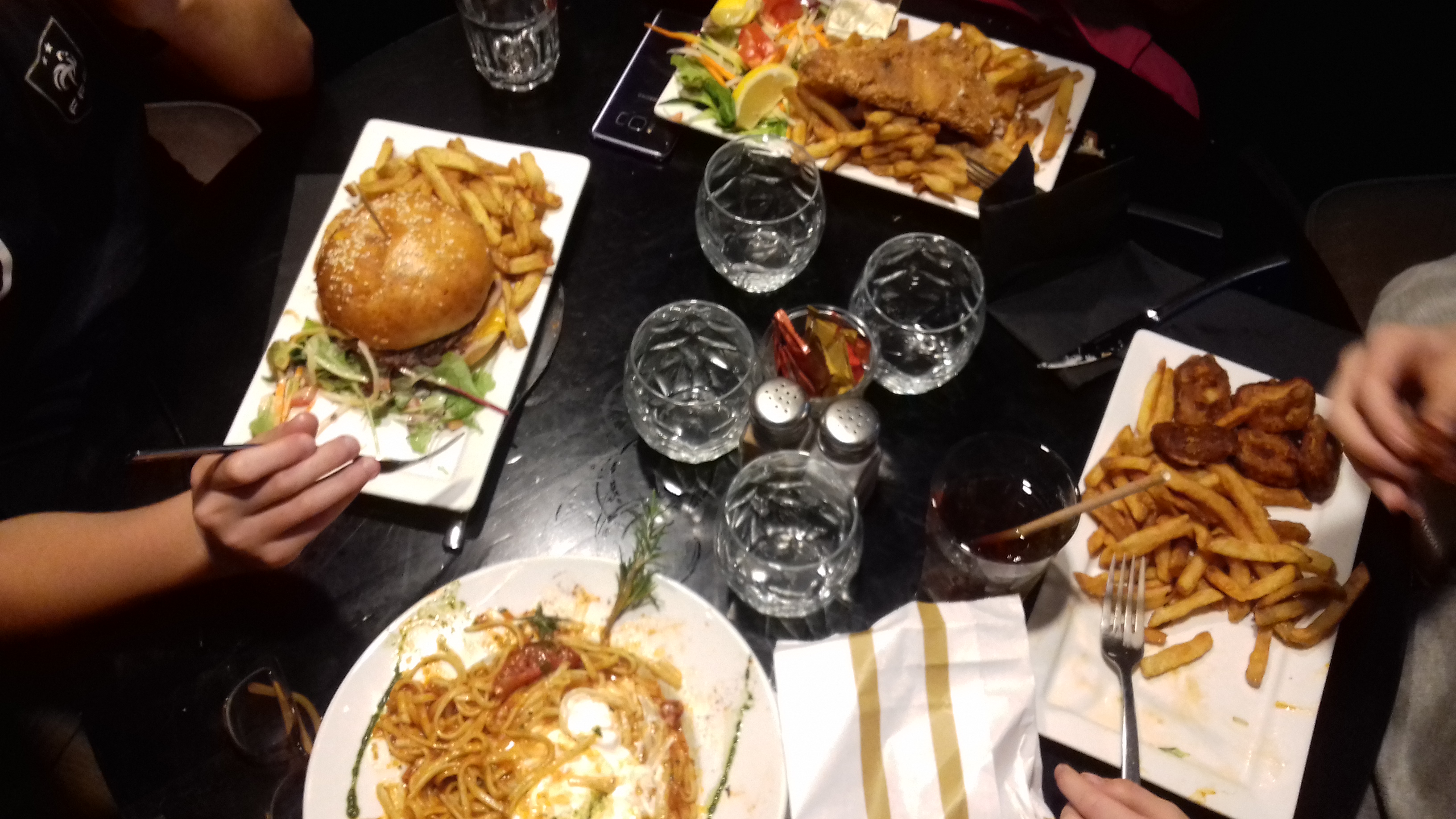 Extrêmement bruilant car il y avait beaucoup de monde. Côté repas: choix assez limité le soir, il y avait pratiquement que de la friture donc des choses grasses pas saines, burger écœurant car il y avait trop de sauce, les frites étaient brûlées, sur la salade il y avait également beaucoup trop de sauce... Bonne location au centre ville pour boire un verre seulement