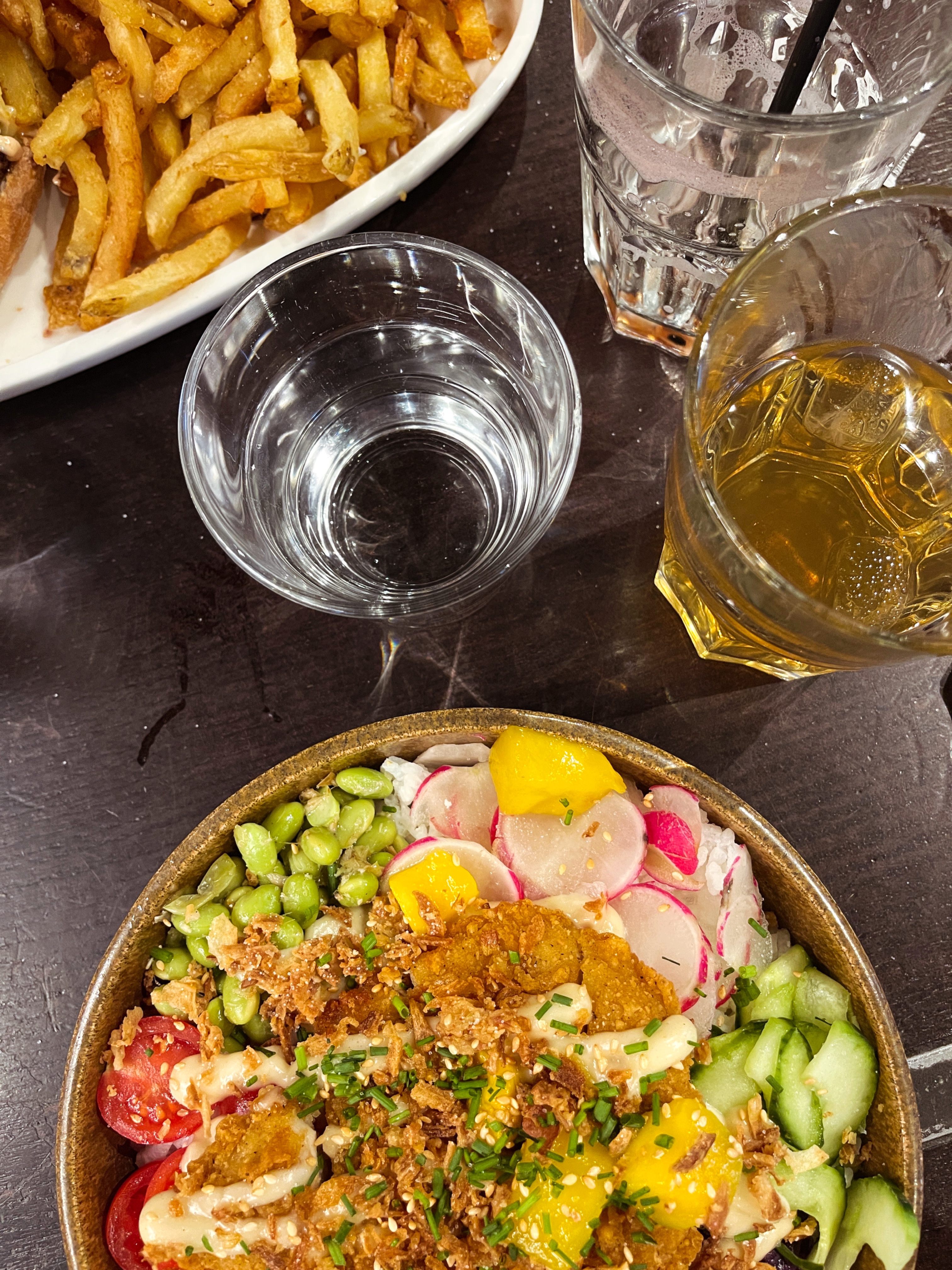 Avis assez mitigé.. les serveurs et serveuses nous ont trouvé et gardé une table alors que nous n'avions pas réservé et que c'était plein ce qui est adorable. Par contre, les frites beaucoup trop cuite et des poké qui n'étaient pas composé avec ce qui est inscrit dans le menu a empêché mes amis de manger entièrement leur plat nous ont un peu déçu.