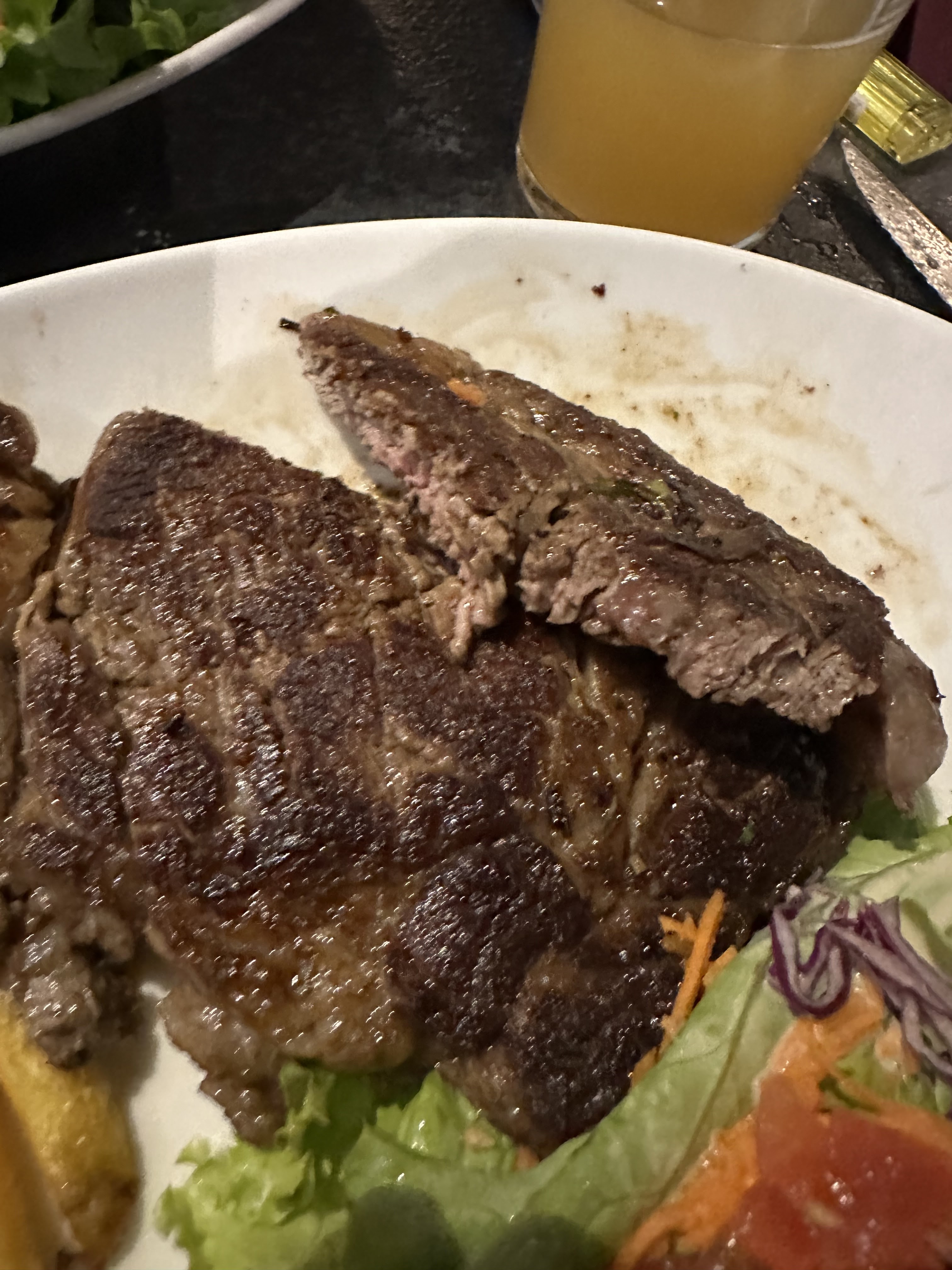Nous avons commandé un tartare de saumon en entrée et un faux-filet en plat principal. Très clair dans notre communication. Nous avons eu les deux en même temps. Les frites de saumon étaient FROIDES. On nous a demandé de reprendre les steaks pour que nous puissions manger notre entrée. Après avoir mangé du saumon avec des frites chaudes, nous avons eu nos steaks DOA. J'ai dû les renvoyer. De plus, la « sauce » (beurre) avait disparu. BTW - mince comme du papier toilette. Le personnel a eu la tête très courte et a commencé à mal agir. Un conseil : si vous cherchez quelque chose à manger tard (comme nous devions le faire - nous sommes arrivés en retard), ALLEZ AU MCD. Au moins, vous savez ce que vous obtenez. Nous savions que nous n'obtiendrons pas de Bib Gourmand - mais au moins, répondez directement à vos commandes. Au fait, le deuxième steak était également bon Fait et livré avec une attelle osseuse et c'est potentiellement dangereux. 🤬