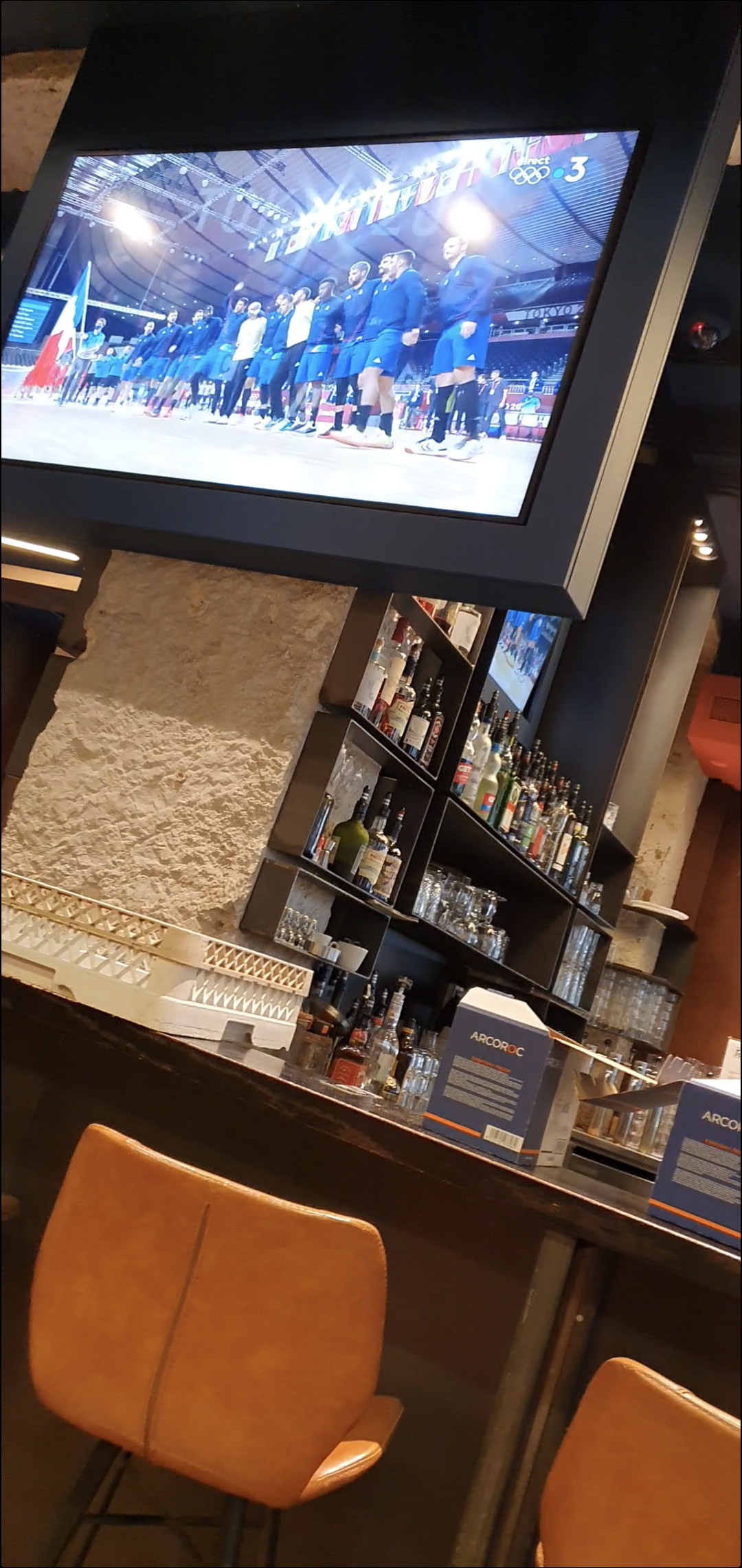 Parfait pour aller suivre des évènements sportifs. Des écrans partout et visibles depuis toutes les places. Les serveurs sympas et le principal : plats et dessert très bons.