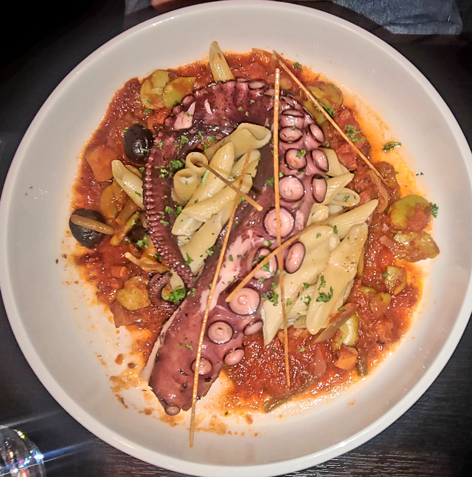 Nous y sommes juste passé pour prendre un verre. Un spritz limoncello et un spritz manzana. Ils étaient très peu dosé par rapport à ce que nous avons l'habitude. Le cadre est sympathique à part des spots leds qui clignotent et dérangent très fortement.