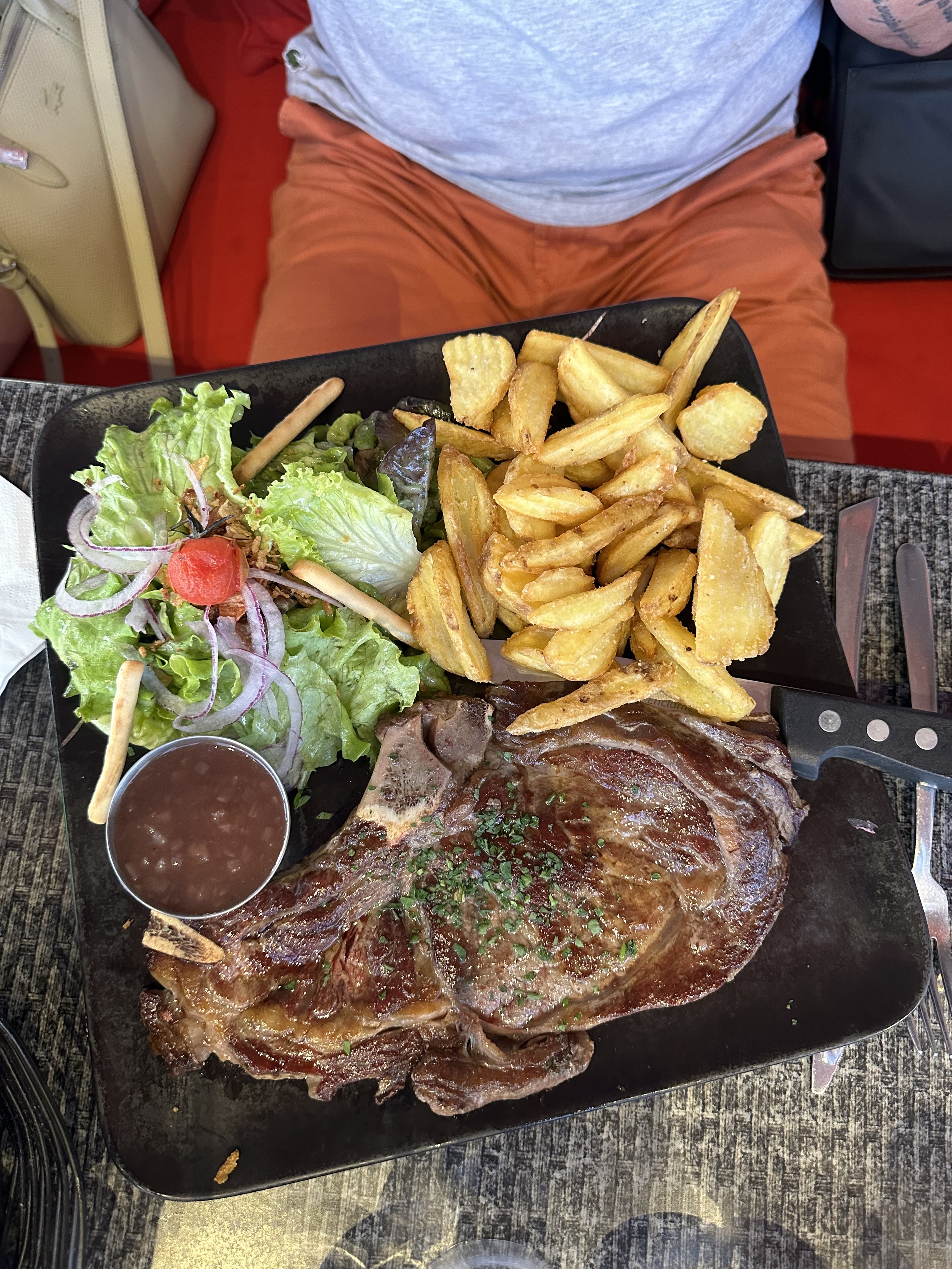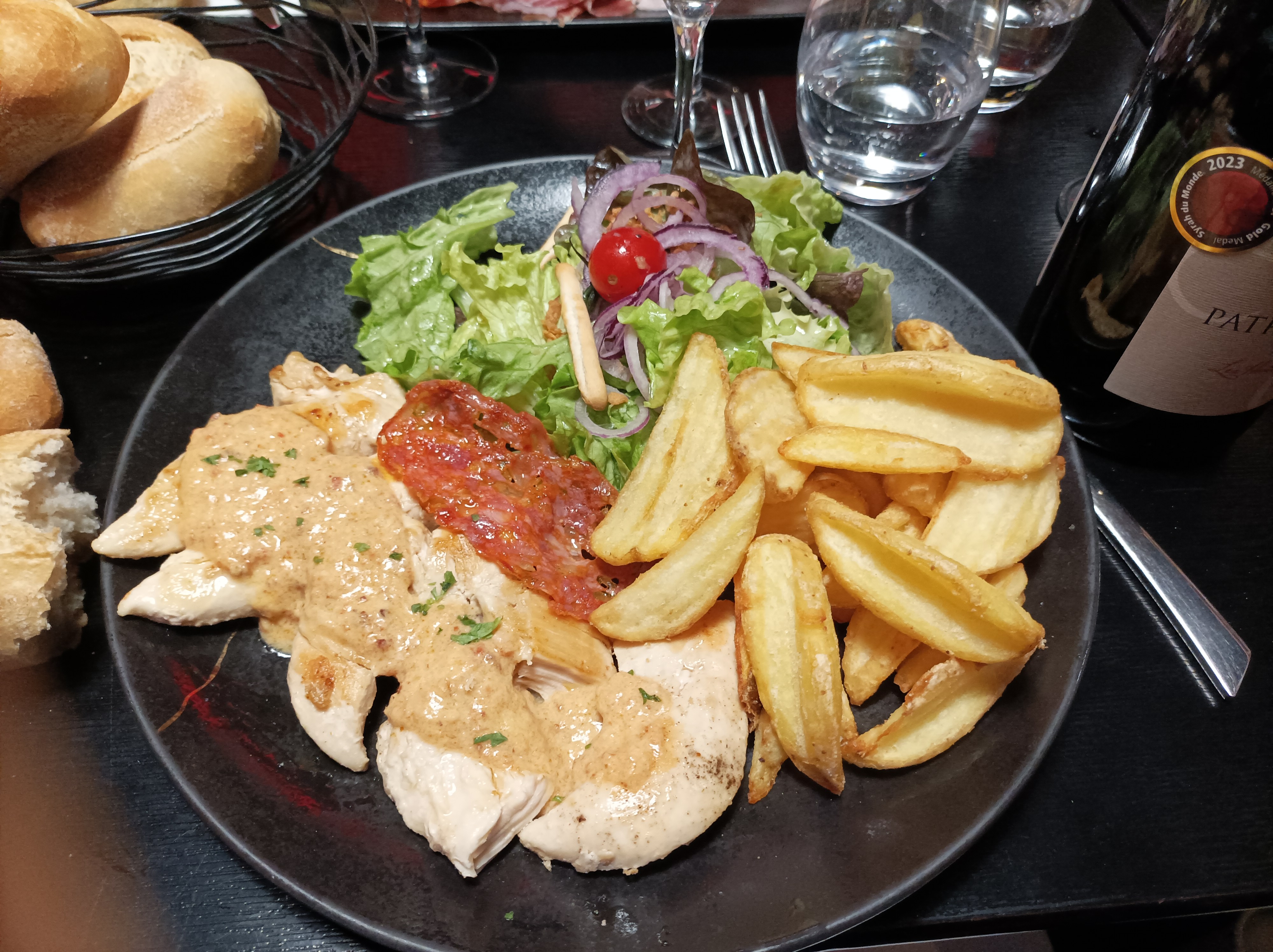 Entrecote inmangeable, pleine de nerf je n'arrivais pas à la couper. Voyant la quantité restant dans l'assiette le patron m'en a offert une autre, mais elle était pire que la première. Sinon service sympa