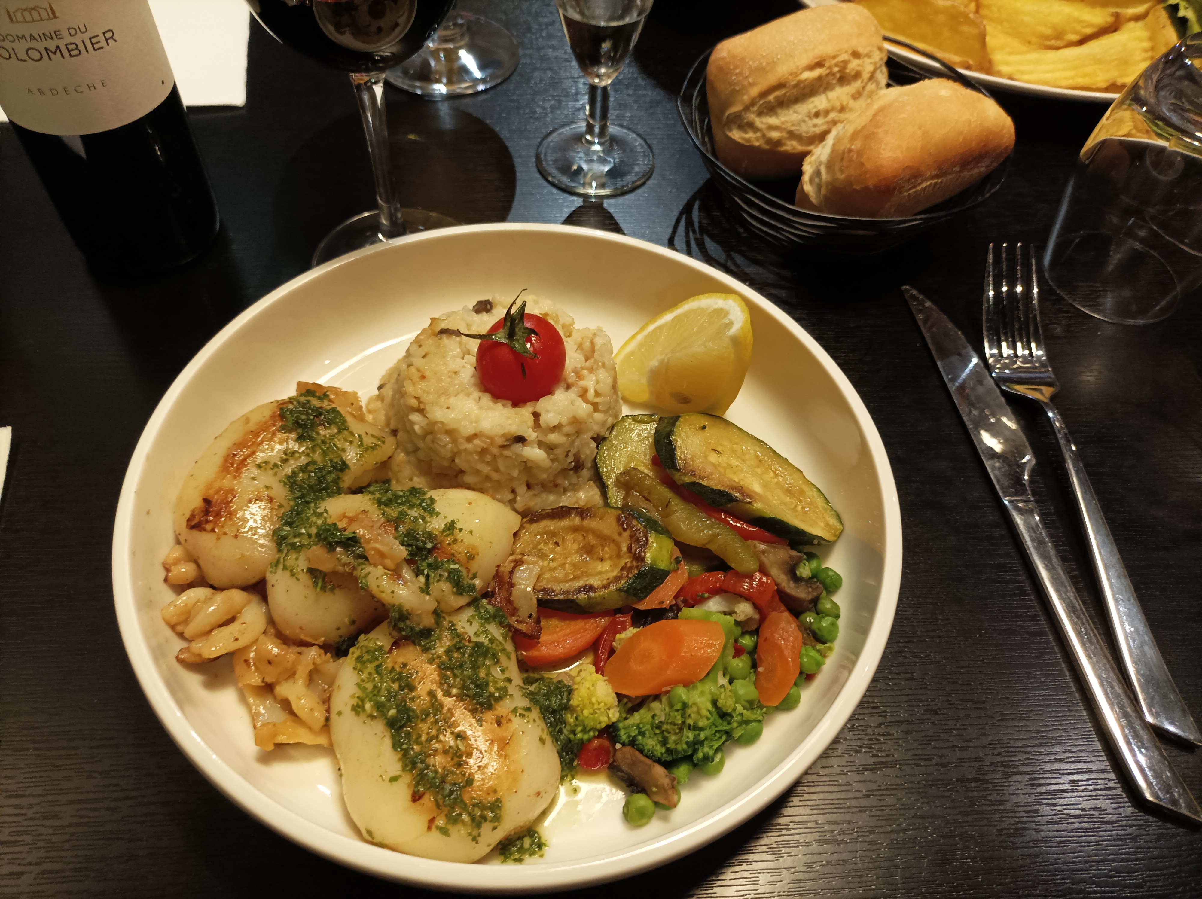 Plat du soir, filer de saint pierre, excellent. Accueil impeccable, agréablement surpris, je recommande.