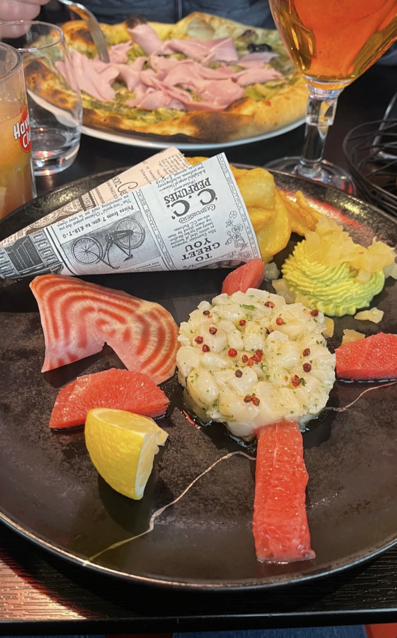Nous avons mangé 2 soirs de suite au Spritz étant de passage dans la région. Les repas sont dignes d un bon restaurant. La présentation est sublime et le service soigné avec tout particulièrement une serveuse adorable et à l écoute. Un réel instant plaisir. Un grand merci 🥂