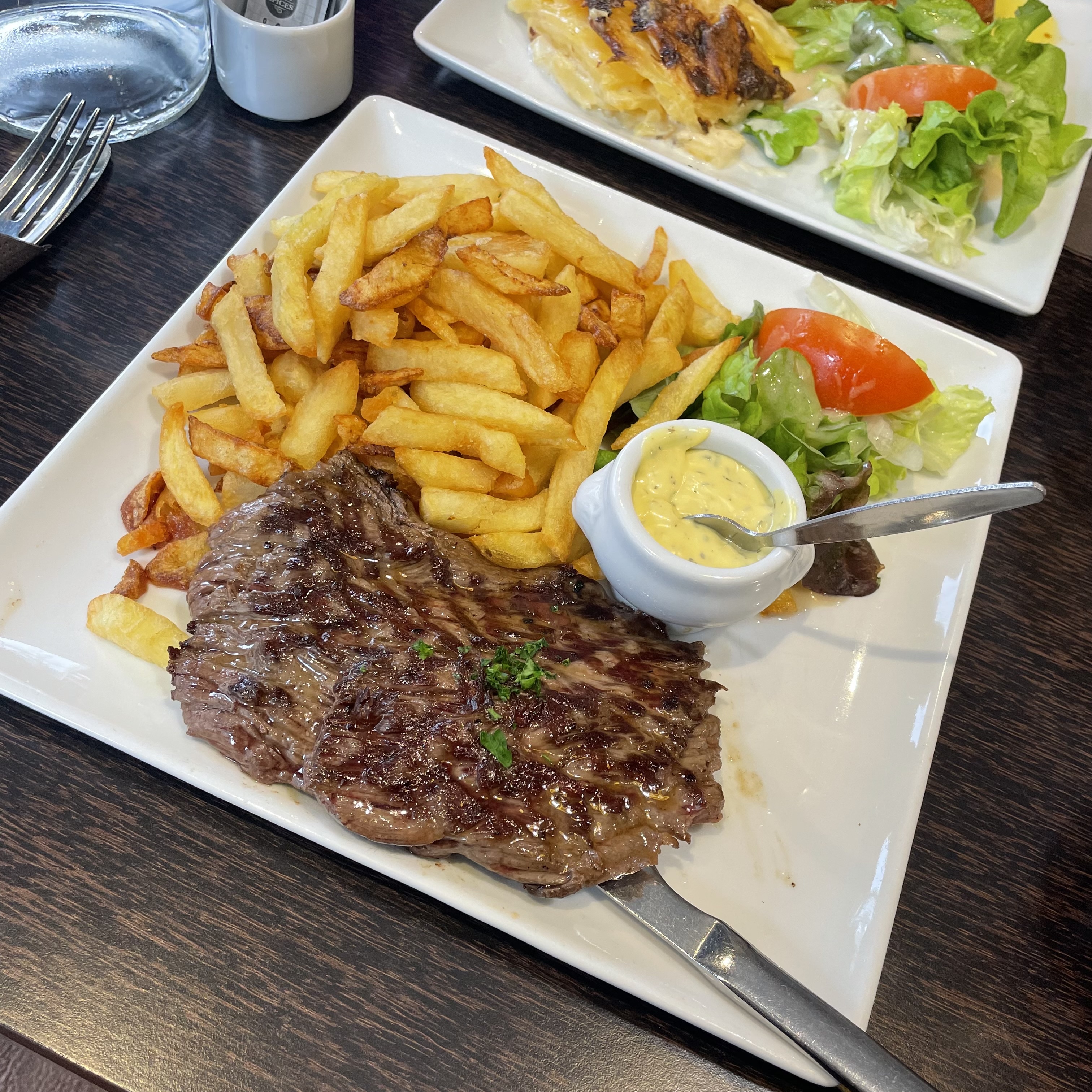 Une entrecôte frite excellente et très goûteuse. Un service très agréable.je le recommande à ma femme qui travaille à côté.
