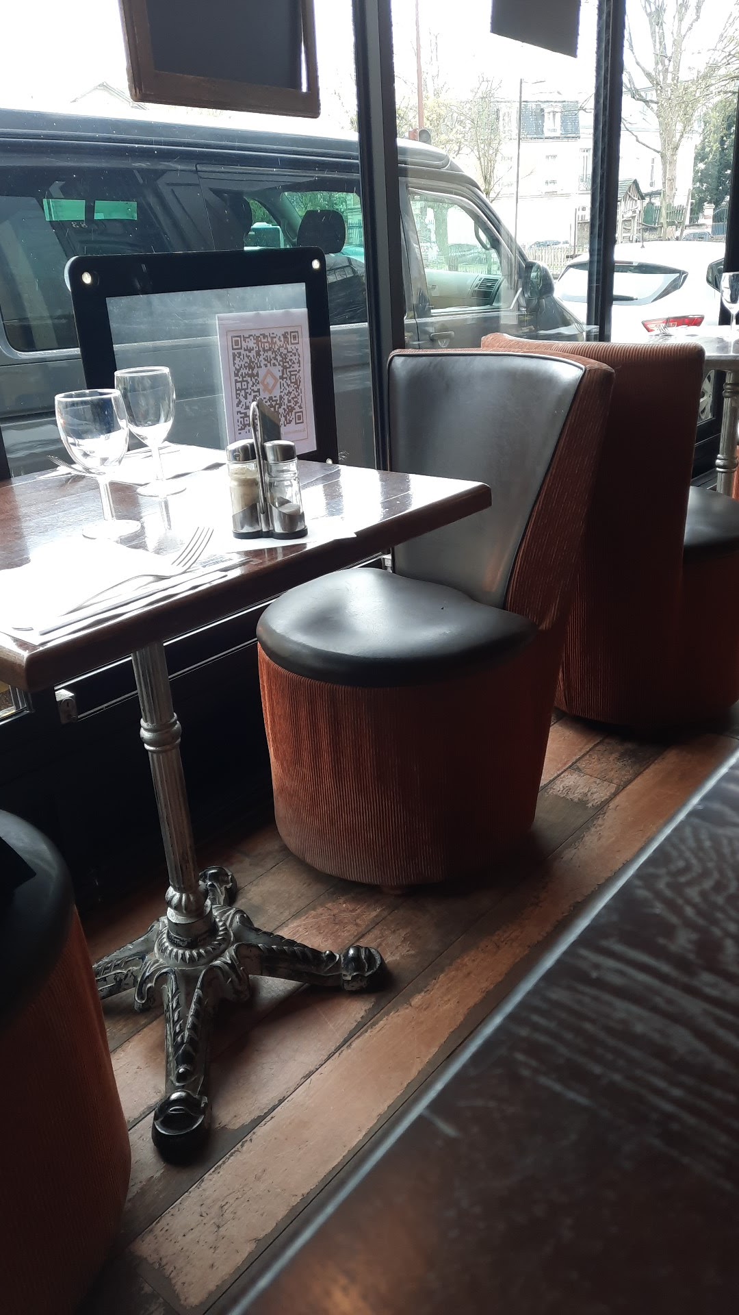 Un peu à l'écart de l'agitation de la place du marché ou du centre de Versailles et de ses foules de touristes et de passants, vous trouverez cette belle brasserie, à environ 7 minutes à pied de la gare Rive Droite en descendant la rue Maréchal Foch. Le public est exclusivement constitué de gens du quartier et c'est ici plus calme, plus confortable et un peu moins cher que dans le centre-ville animé. J'ai beaucoup aimé revenir dans cet endroit, boire un verre à la pression 1664, contempler l'agitation de la rue et de la place Houdon, profiter des belles boiseries sombres et de l'accueil et du service d'une extrême politesse.