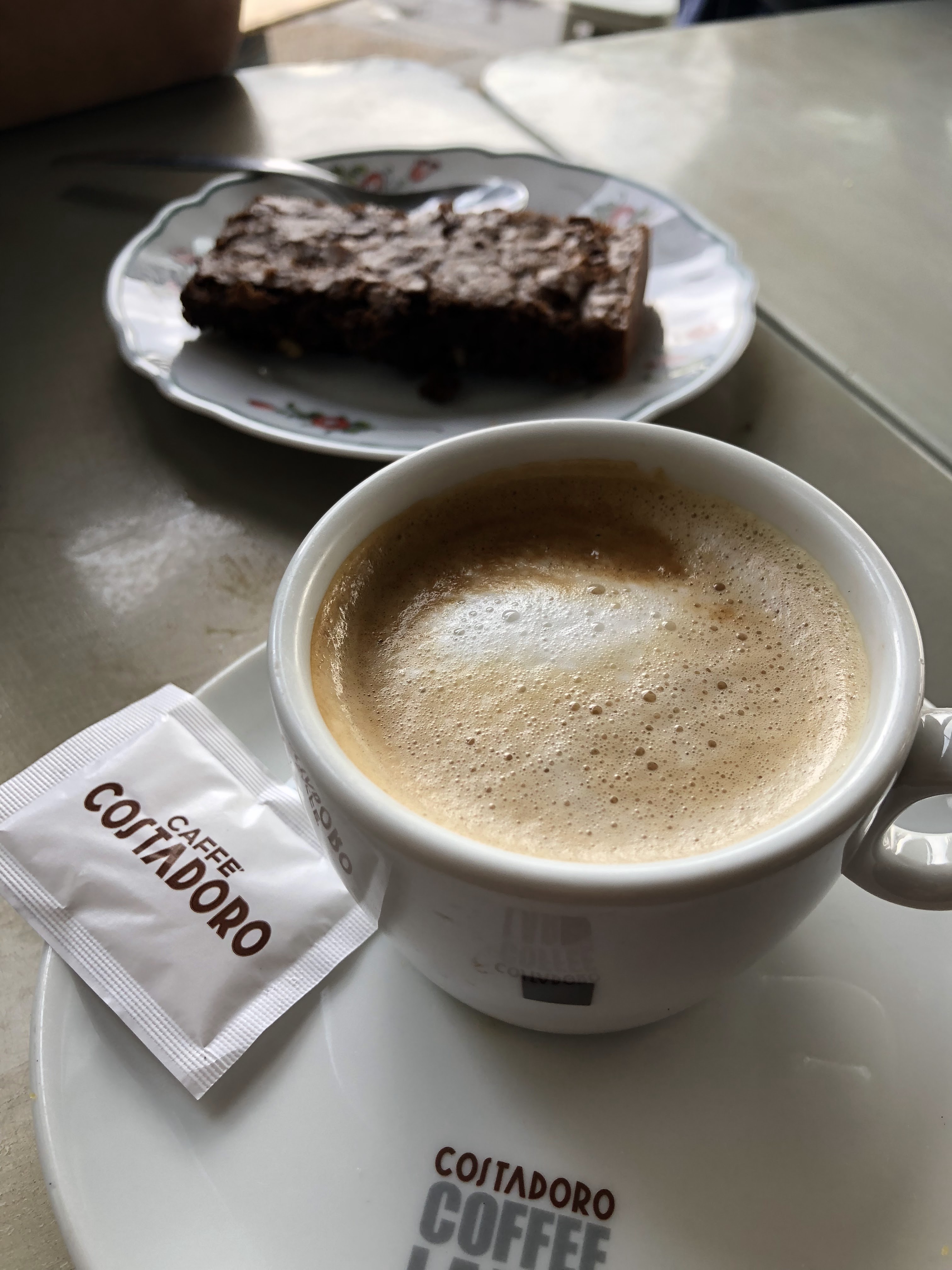 Le café a bon goût. Le brownie était également délicieux et assez gros.