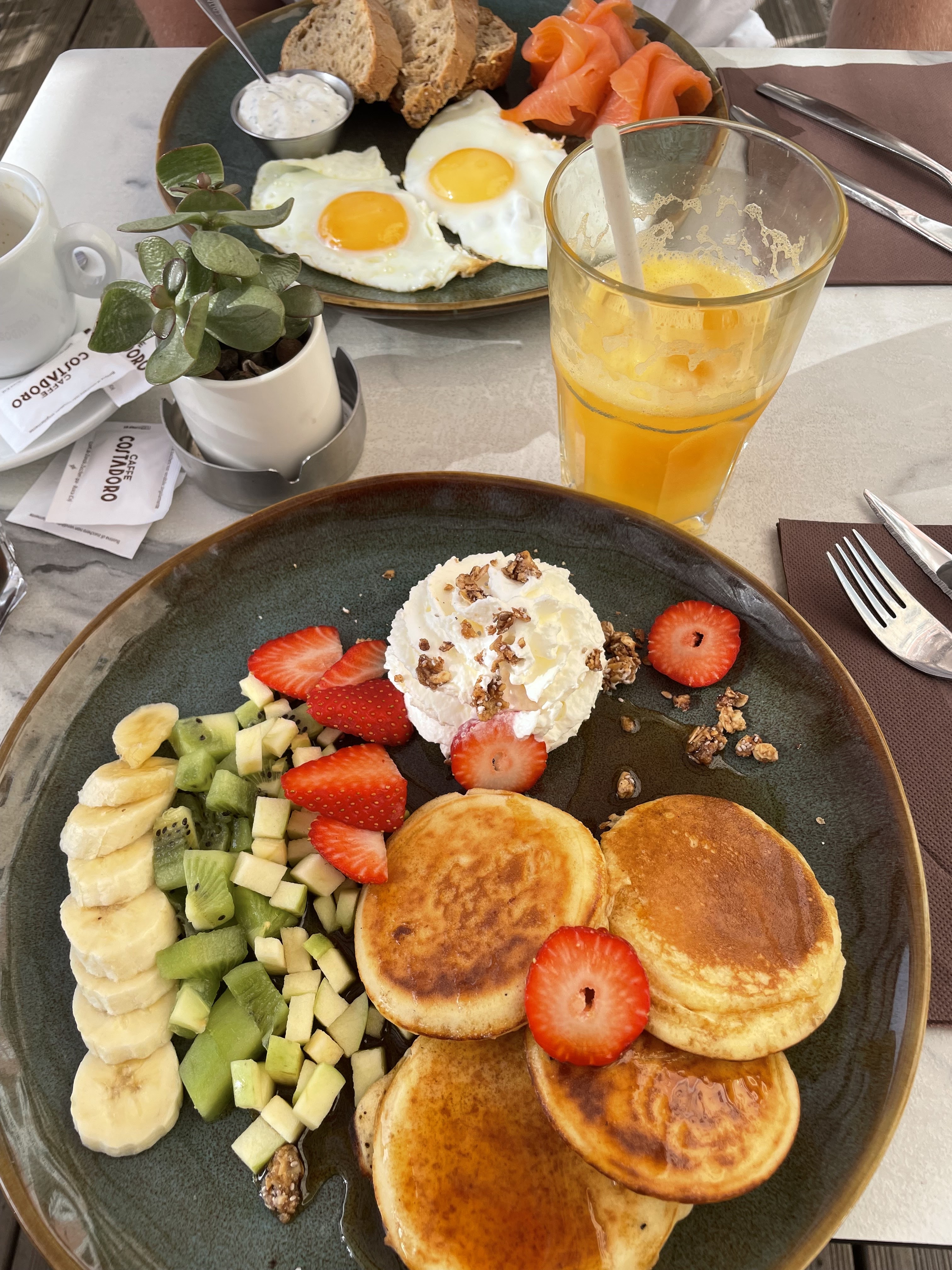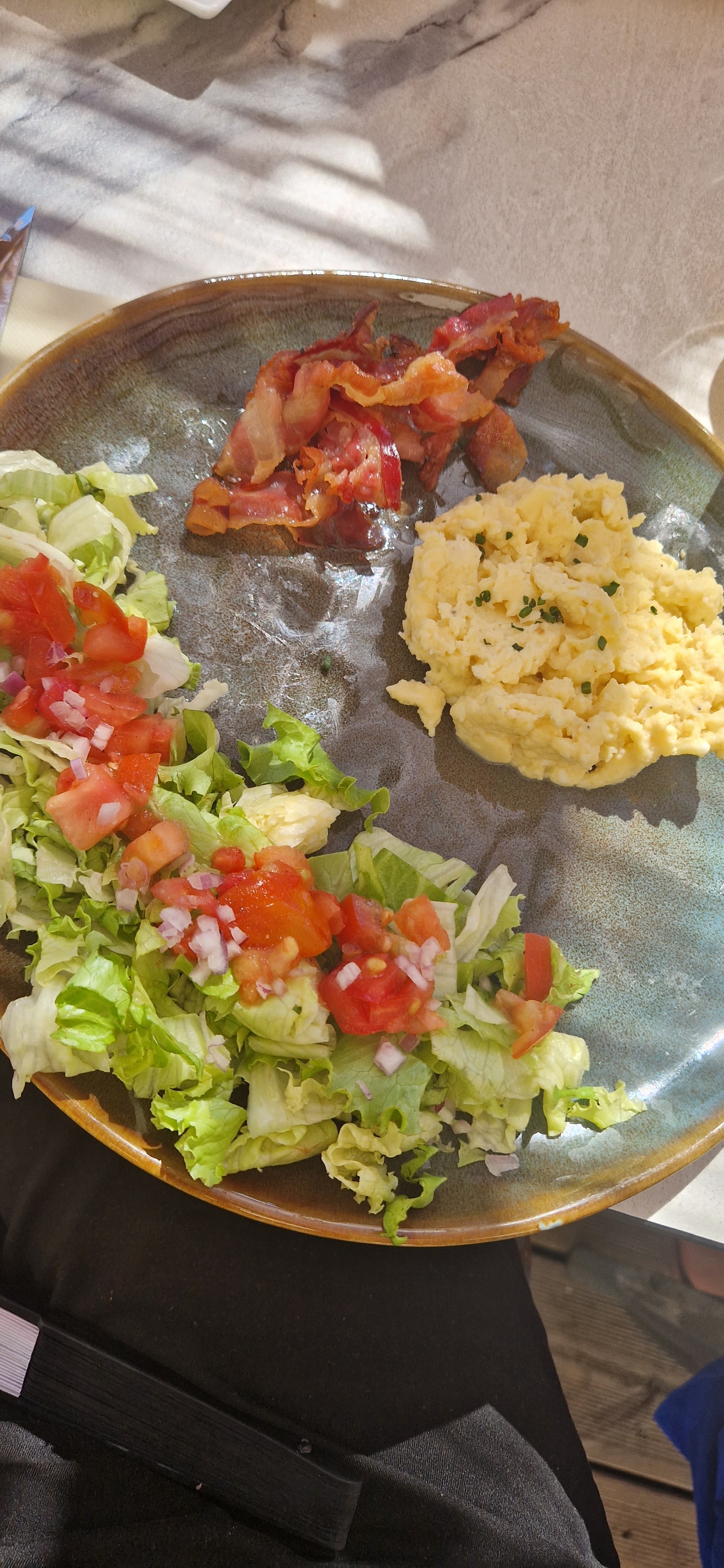 Excellent café, vous pouvez vous asseoir confortablement sur la terrasse. Bon début après une nuit sur le ferry !