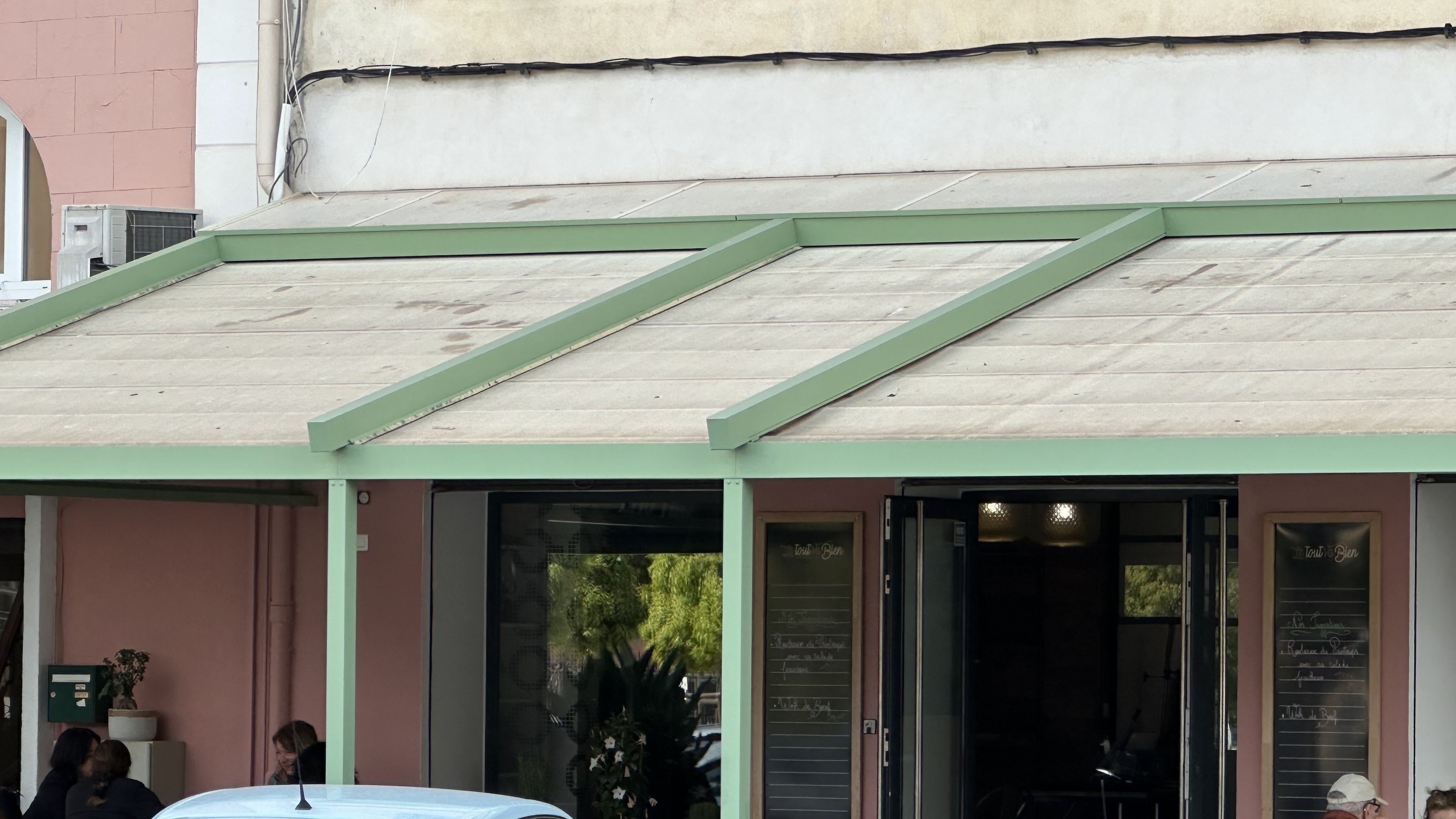 Accueil sympathique avec un barman souriant, belle terrasse véranda en face du marché et petit déjeuner simple bon et efficace !