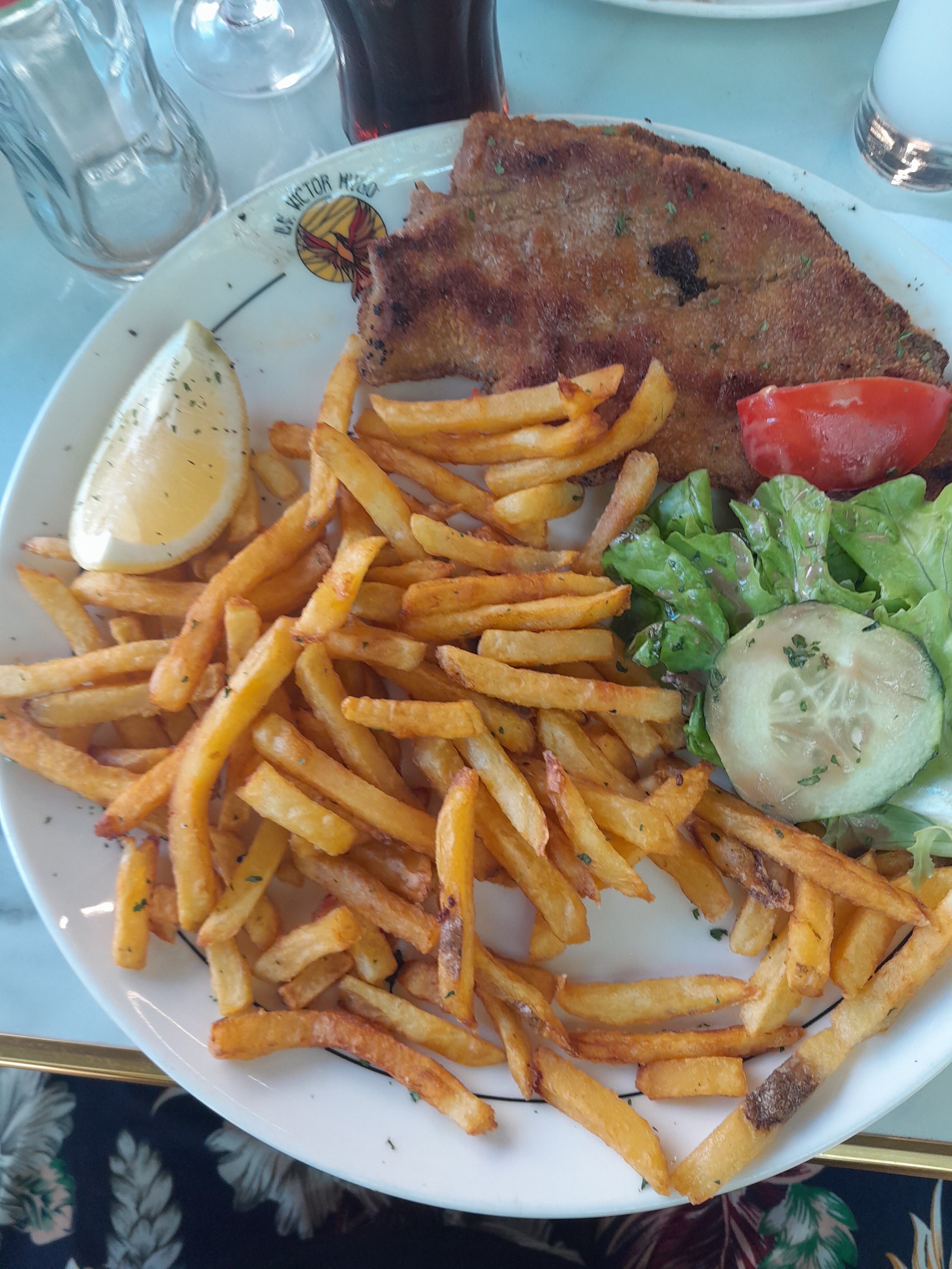 L'escalope panée était très grasse et grillée, avec un cheveu sur le gras...... Manque le grain de café sur la chantilly du café liegeois, dommage.