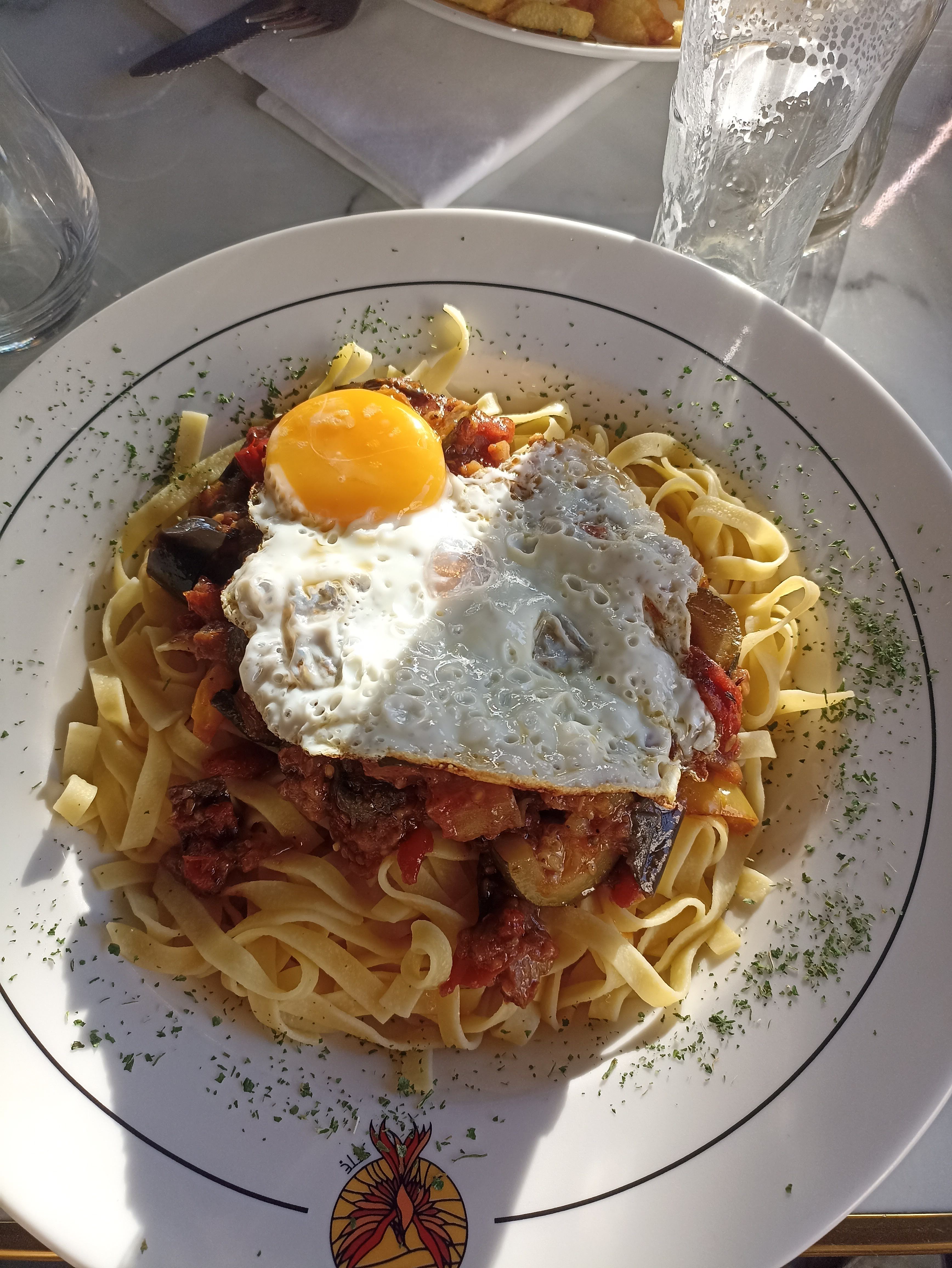 Nous avons choisis le restaurant par hasard on a bien fait, menu du jour (entrée, plat 14 € ) la sèche avec sa compotée de légumes 🌶aubergines, poivrons, tomates un régal + ( 3€ ) Les spaghettis à l’Italienne un régal . PS le pain 🥖 une tuerie la serveuse était charmante et gracieuse