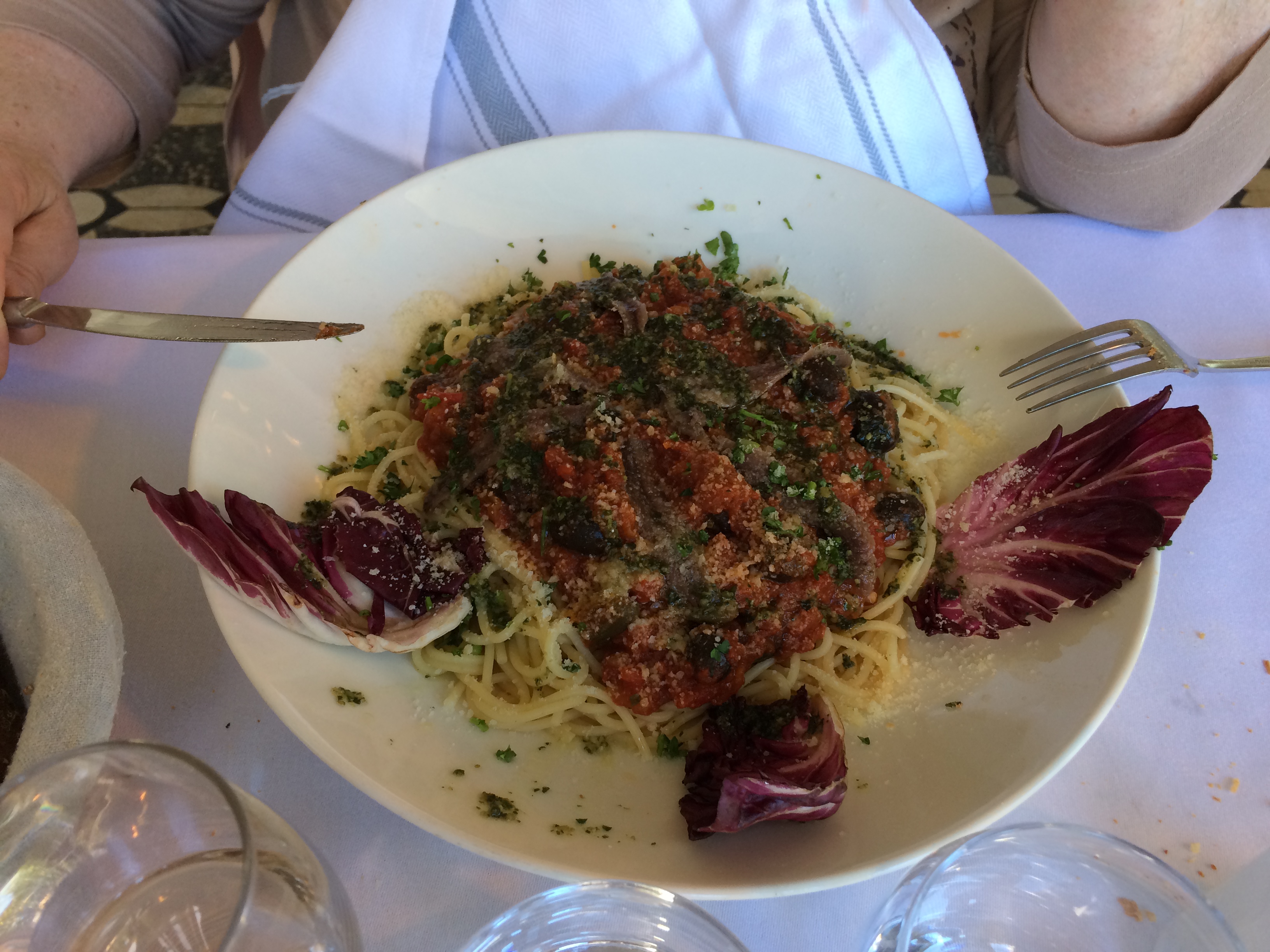 L'endroit est vraiment très sympa sauf le patron qui nous sert des citrons pressés dans des petits verres, avec l'eau dans des petits verres aussi et qui rechigne à nous amener une carafe d'eau... Jamais vu ça, bonjour le service de sa part