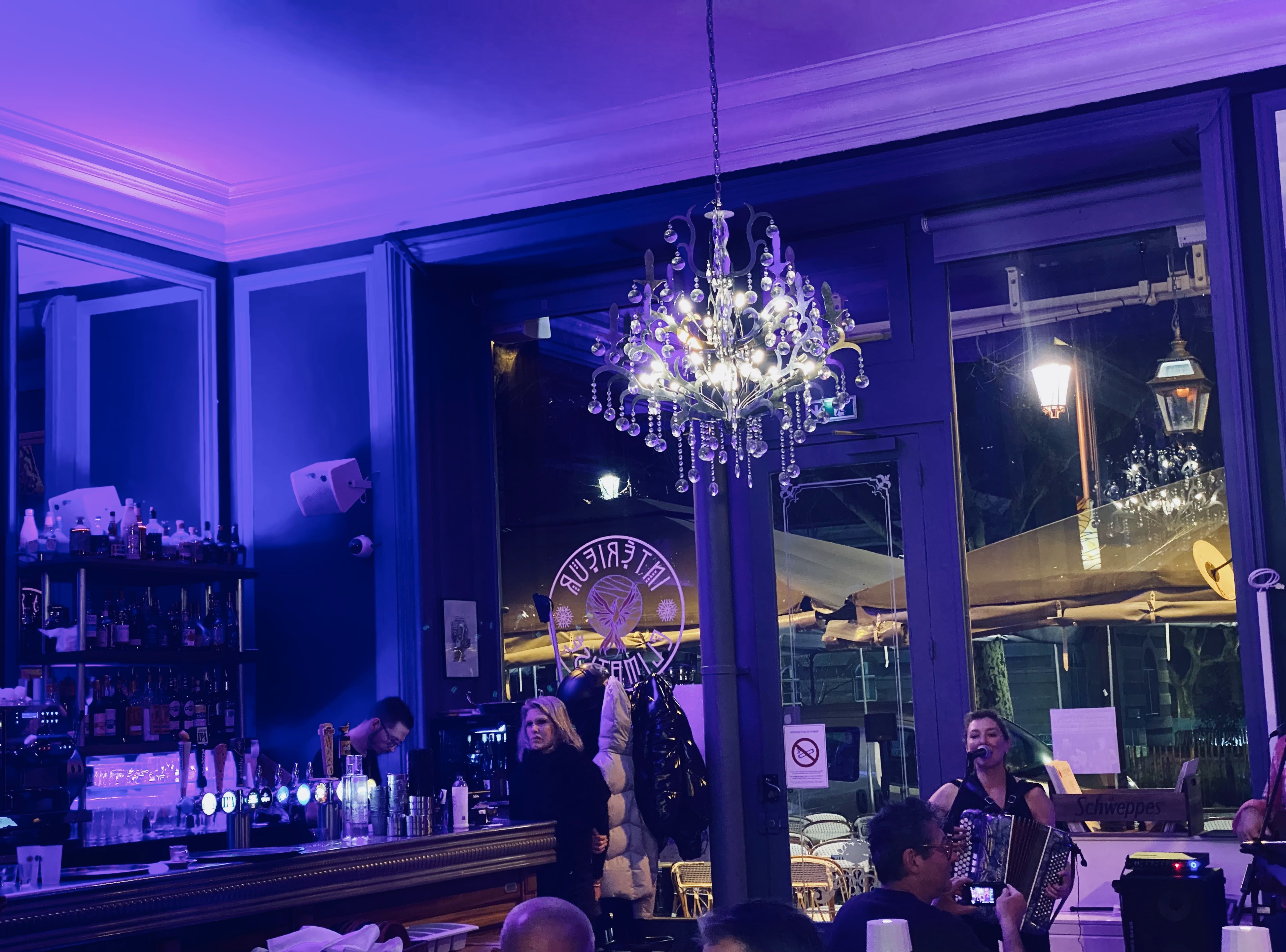 Le cadre est sympathique: jolies lumières, jolie décoration qui est cependant entachée par des moulins à sel et poivre sortis directement du supermarché. L’ambiance était agréable : un concert de chansons françaises avec un talentueux duo pianiste/chanteuse. Merci à vous deux ! Cependant. Tout juste assises, le serveur nous presse pour prendre notre commande, à peine souriant le long de la (courte) soirée…. Pour ce qui est des plats: les prix ne sont pas en adéquation avec la qualité. Pour ma part, je ne me suis jamais autant débattue avec une entrecôte plus que tiède et son couteau de cantine…