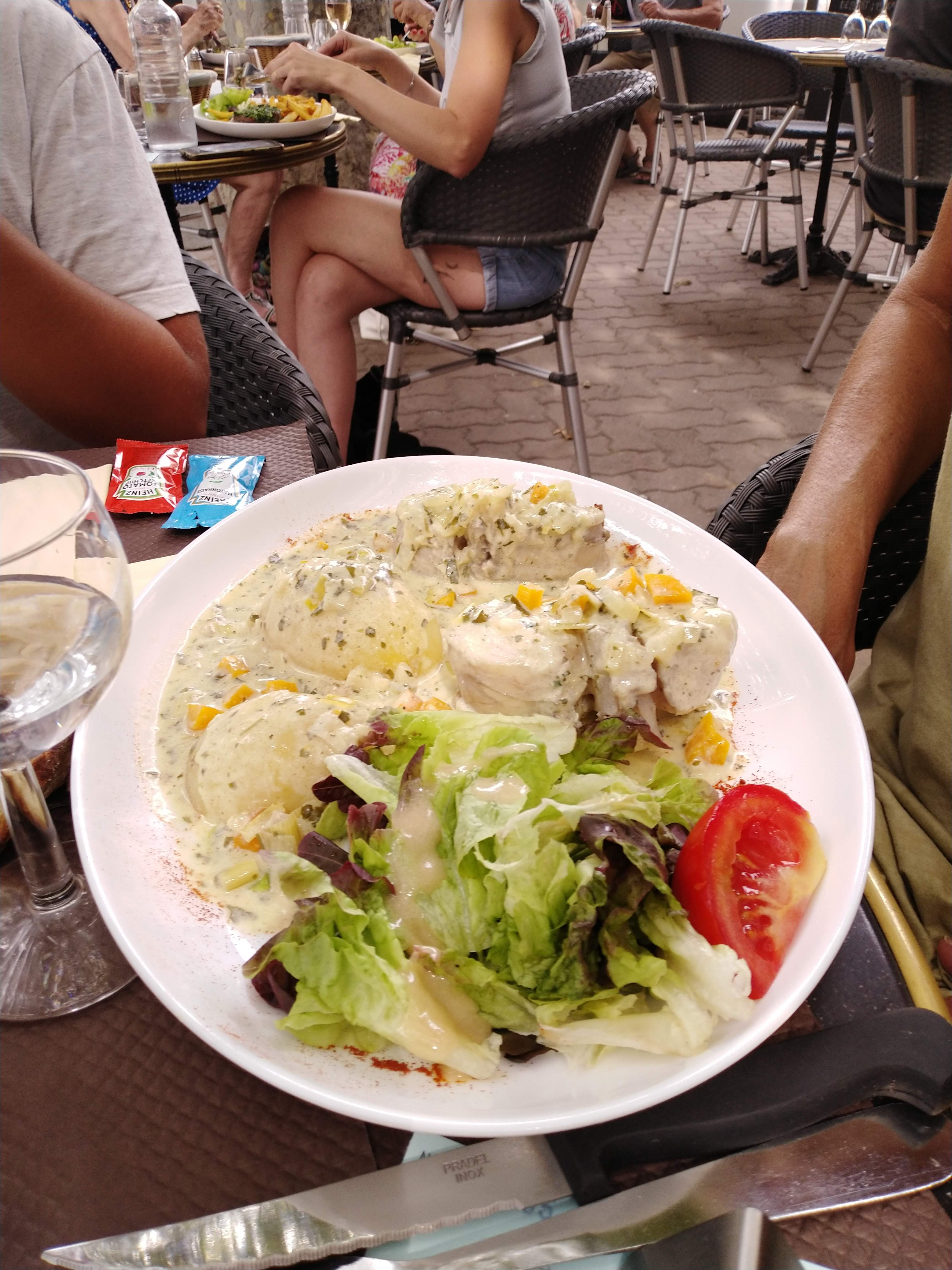 Établissement très agréable , cuisine généreuse et bonne. Grande terrasse ombragée, indispensable en été. Les plus sont des soirées musicales, le vendredi soir, soirée gitane, un vrai plaisir. Le personnel est très dynamique et compétant.