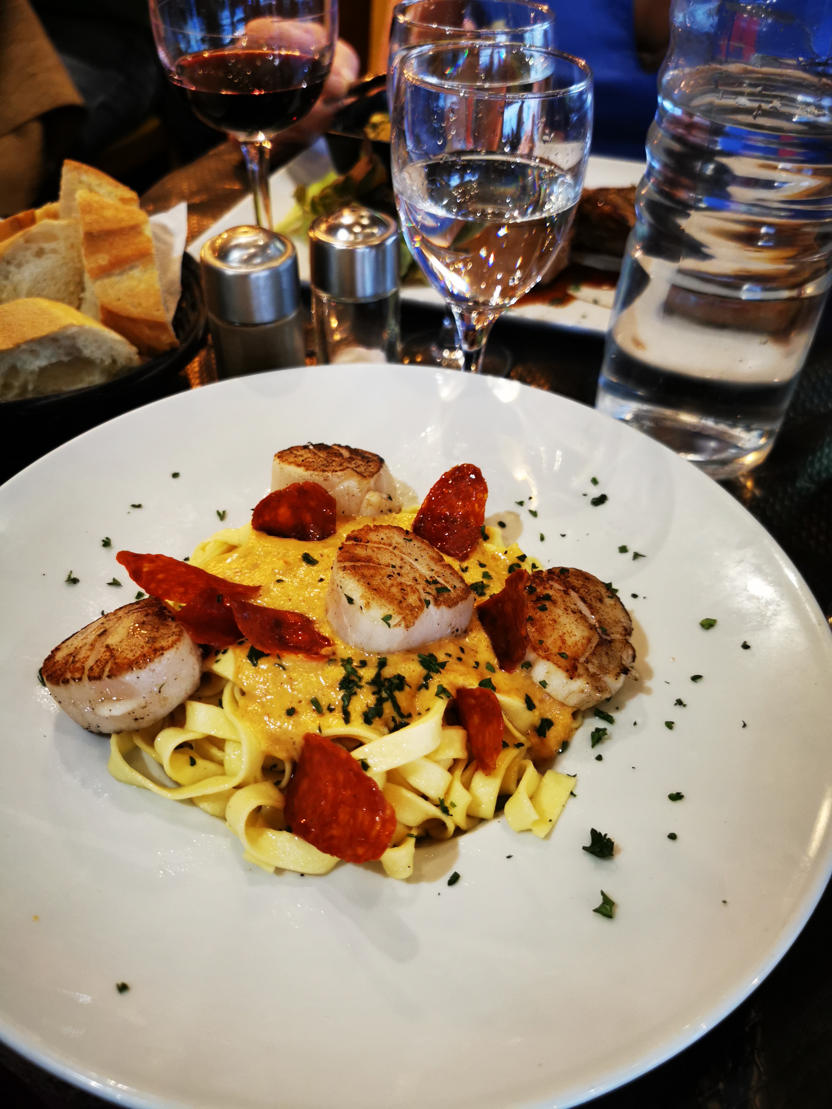 Bon repas entre collègues de travail. Nous avons choisi une variété d'entrées et de plats principaux, tous très bons. J'ai vraiment apprécié les tagliatelles, les pétoncles et le chorizo. Le vin n'était pas universellement apprécié, même si le Pouilly Fume que j'avais choisi était excellent ! 😁