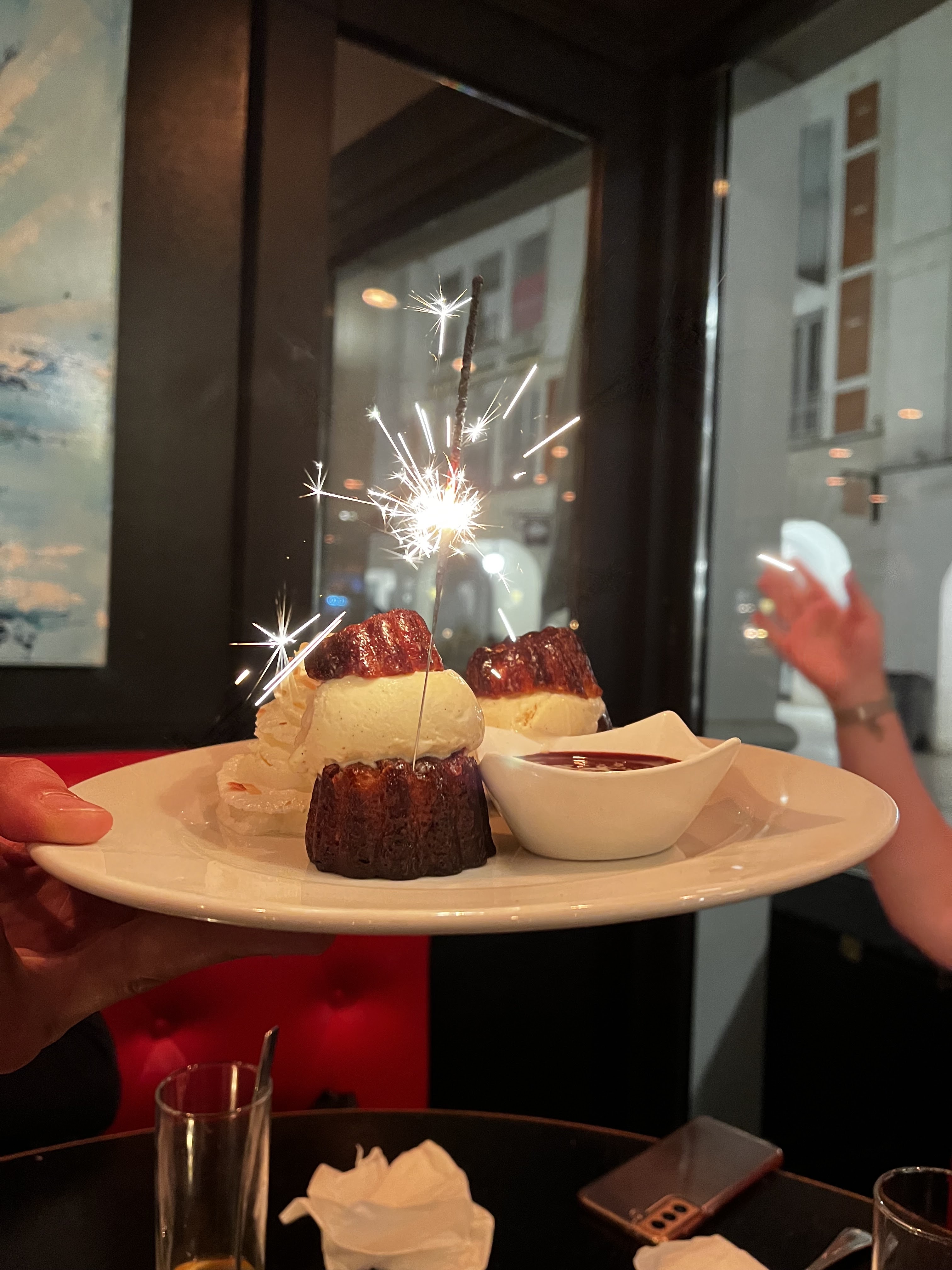 Nous avons mangé avec des amis à 9 un dimanche midi très bon emplacement, bonne cuisine, les huitres et les moules étaient bien fraiches et mention spéciale pour ce dessert incroyable cannelés façon profiteroles !