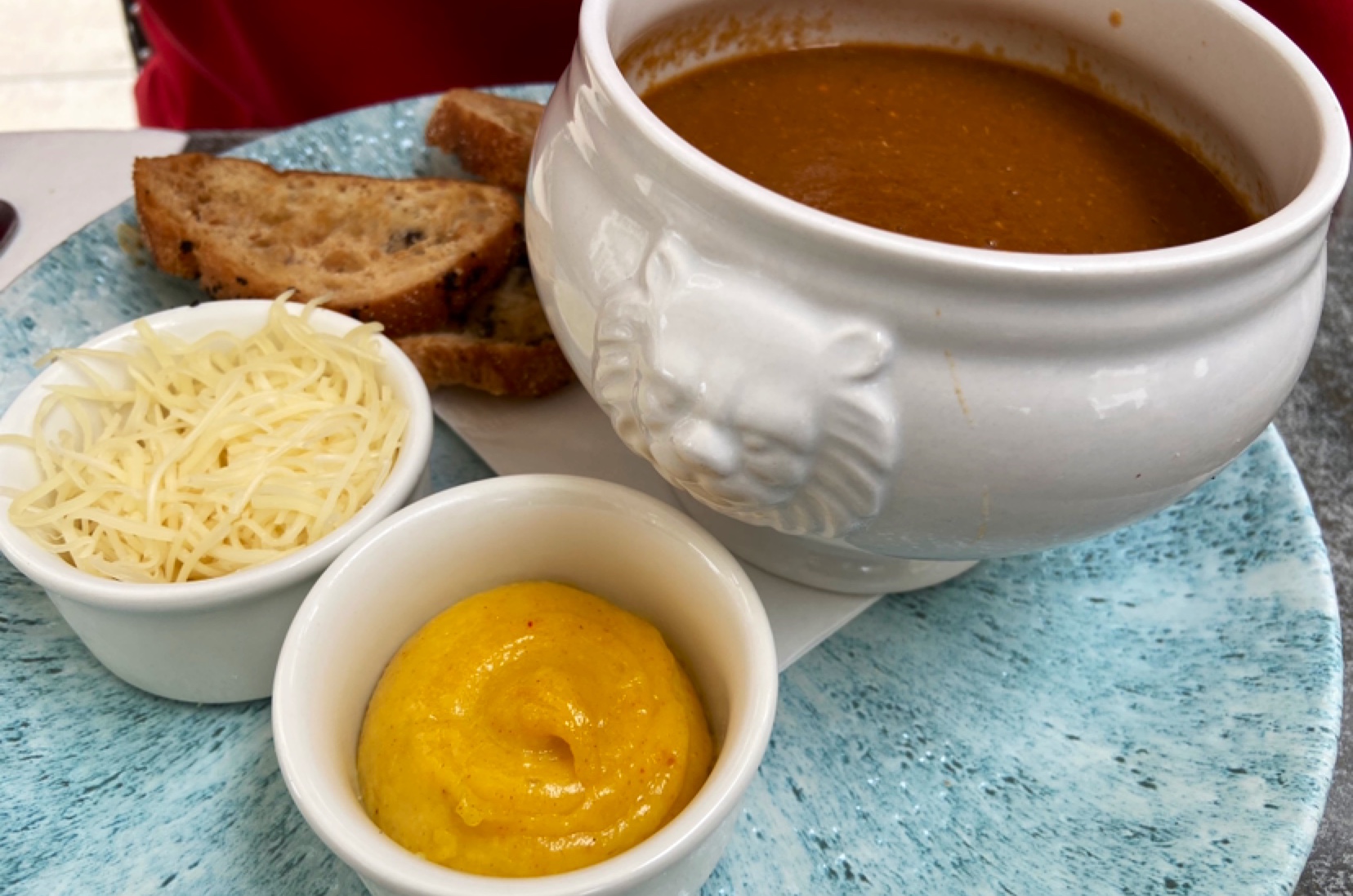 Personnel accueillant mais complètement débordé j’ai attendu 20 minutes pour que l’on vienne prendre ma commande et ensuite 30 min pour avoir une soupe de poisson à peine chaude et pas vraiment bonne avec juste 3 petits croûtons, la cassolette du pêcheur était excellente