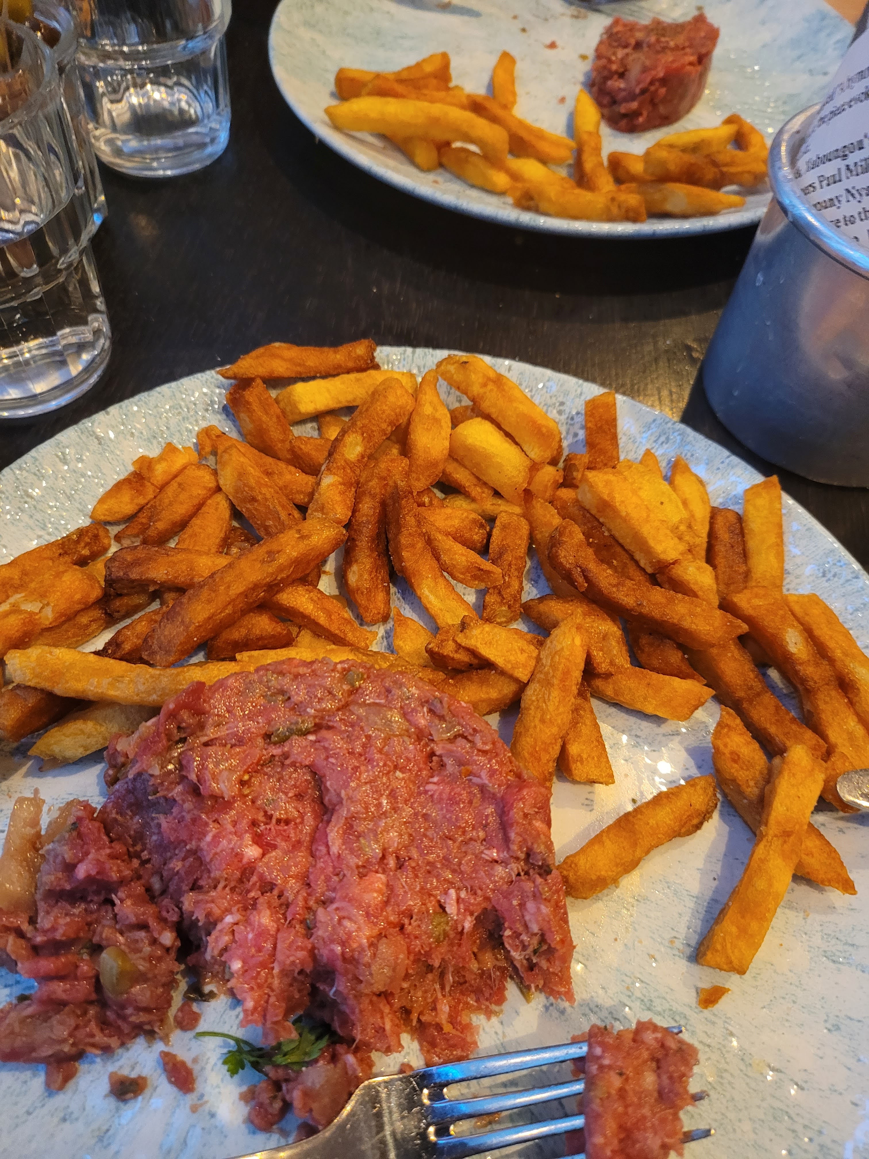 Nous y sommes allés en couple le samedi soir pour manger. Nous avons commencé par friture de poisson et saucisson, puis nous avons mangé sur place. Des produits d'excellente qualité, préparé avec soin, la viande que j'ai mangé était cuite a merveille, plus de place pour un dessert après ce festin. Une merveille, un service parfait. Nous y retournerons a coup sur. Je recommande.