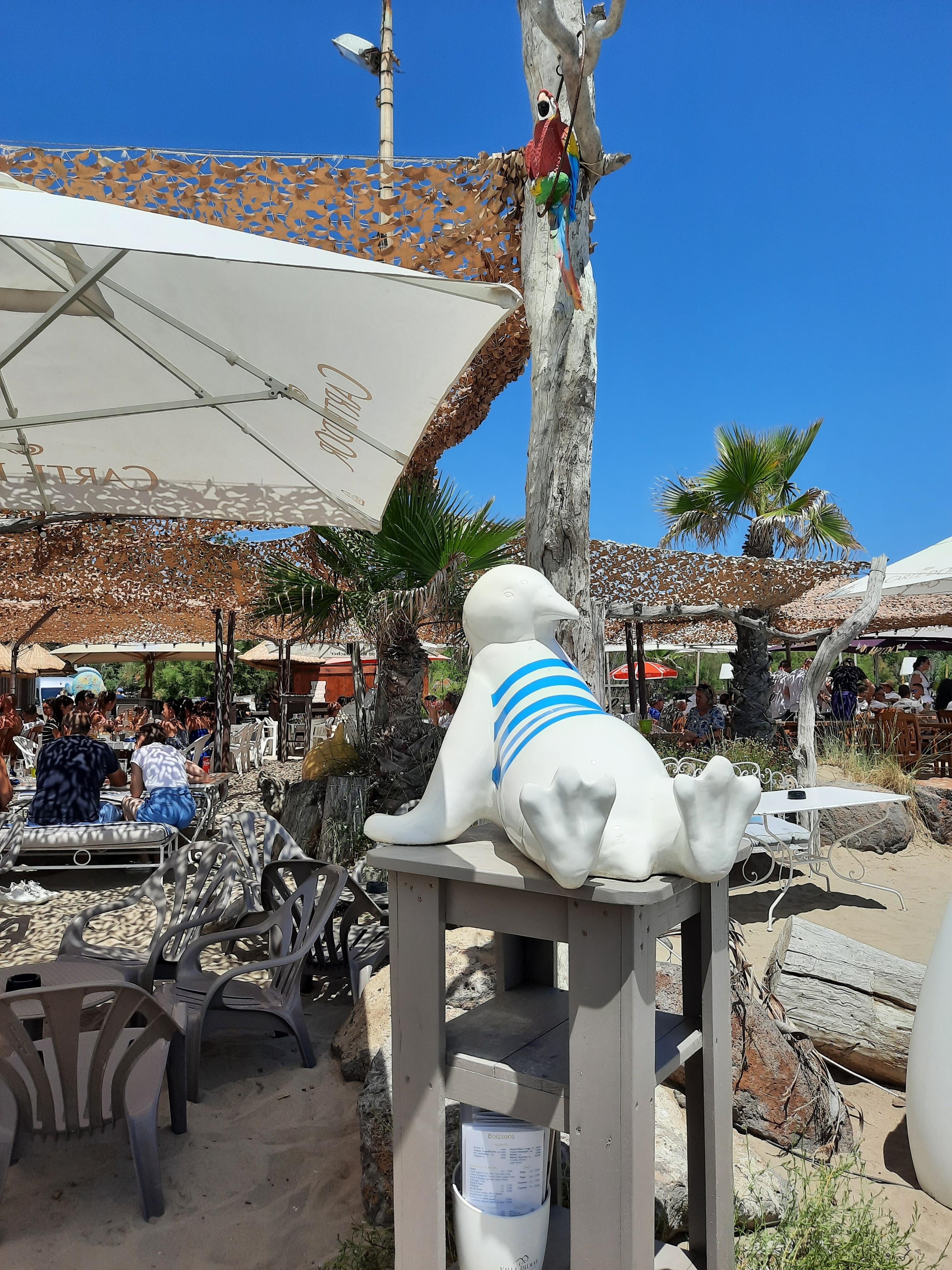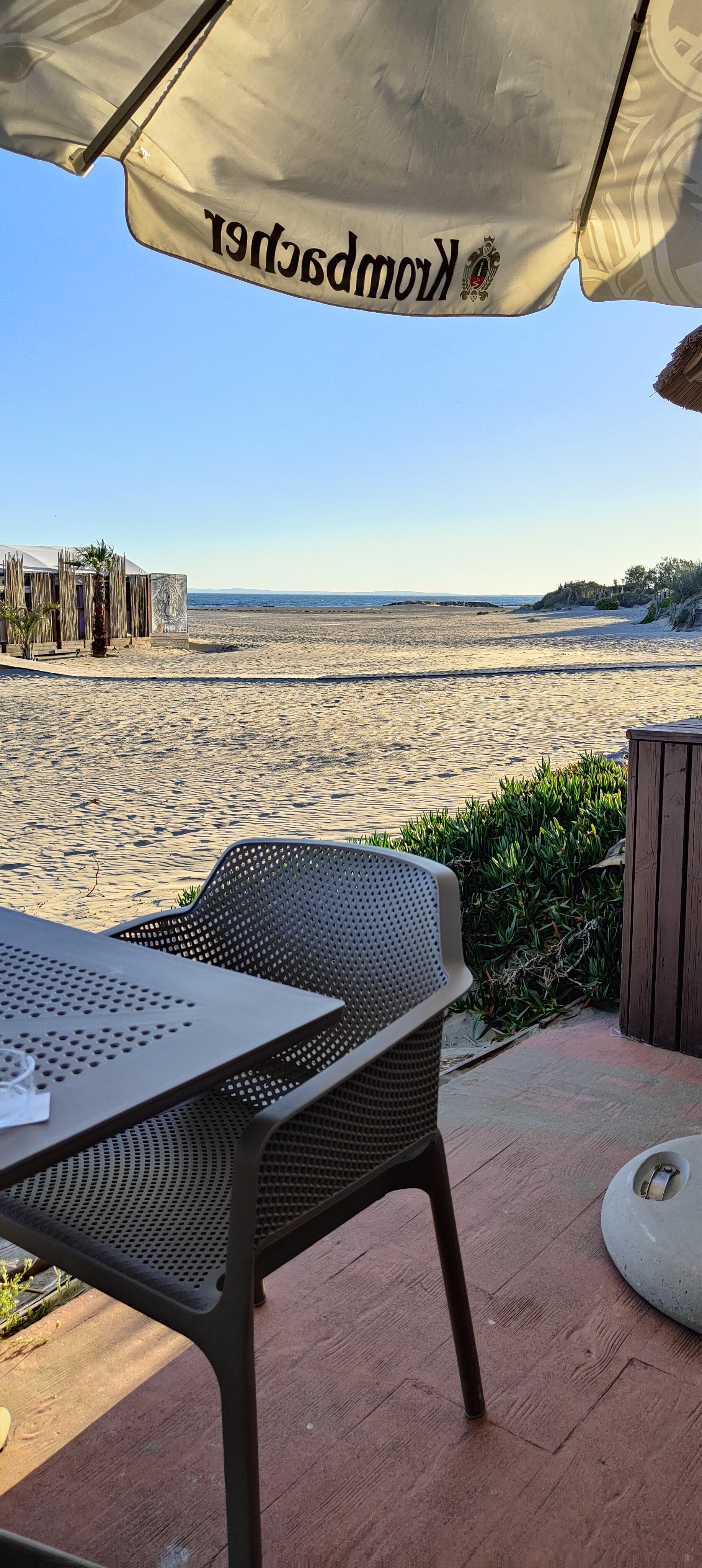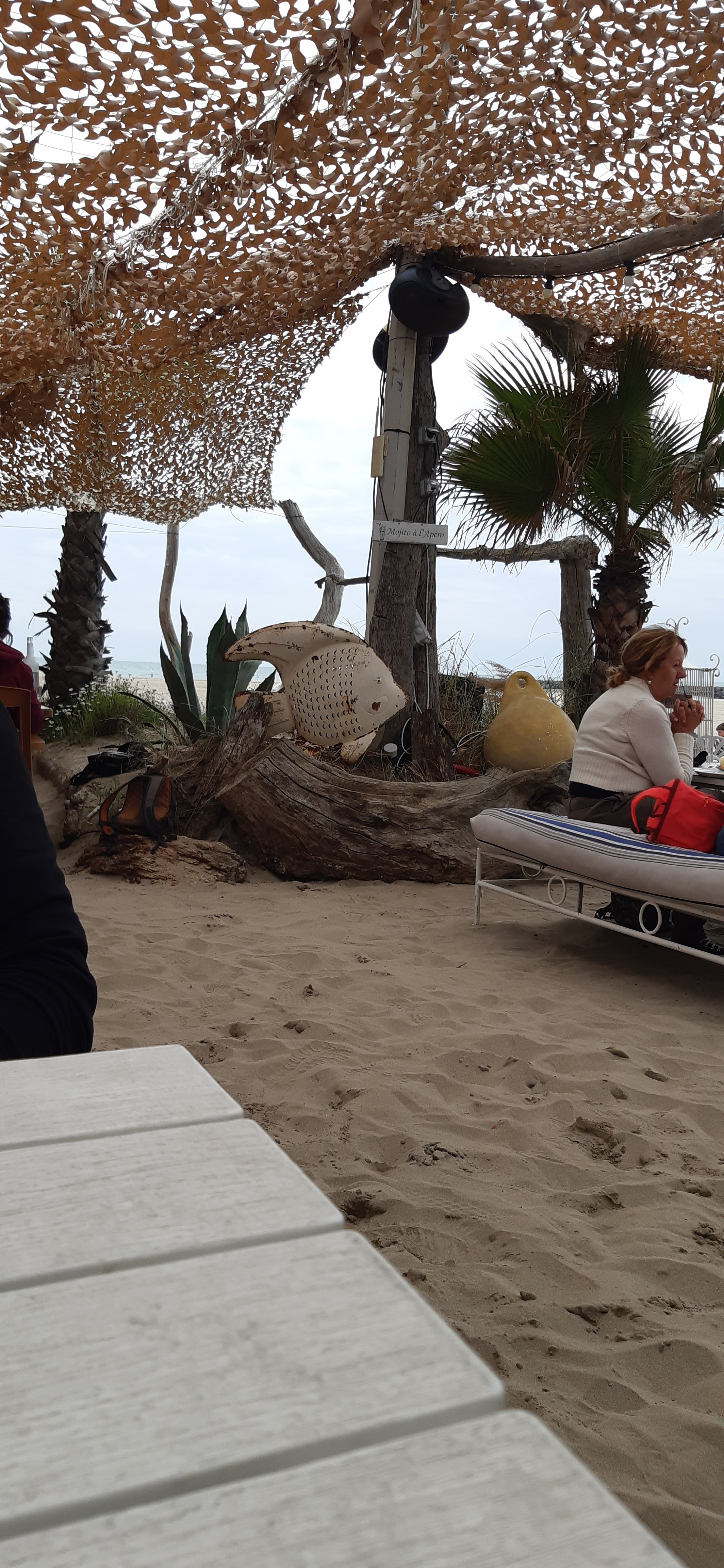 Déjeuner à midi entre amies, ce samedi 5/09 en terrasse, les pieds dans le sable,(moyennement apprécié) J'aurai vraiment préféré en mangeant mettre les pieds sur au moins des planches-bois ! Nous n'étions pas là pour se baigner mais pour manger. Le patron pas d'accord pour remplacer la patate prévue au plat choisi par des petits légumes (qui étaient l'accompagnement d'un autre plat !!!) Donc j'ai (par défaut) j'ai dû faire un autre choix, qui ne m'a pas satisfaite. Et pour le prix payé... Nous ne pensons que nous retournerons dans cette paillotte.