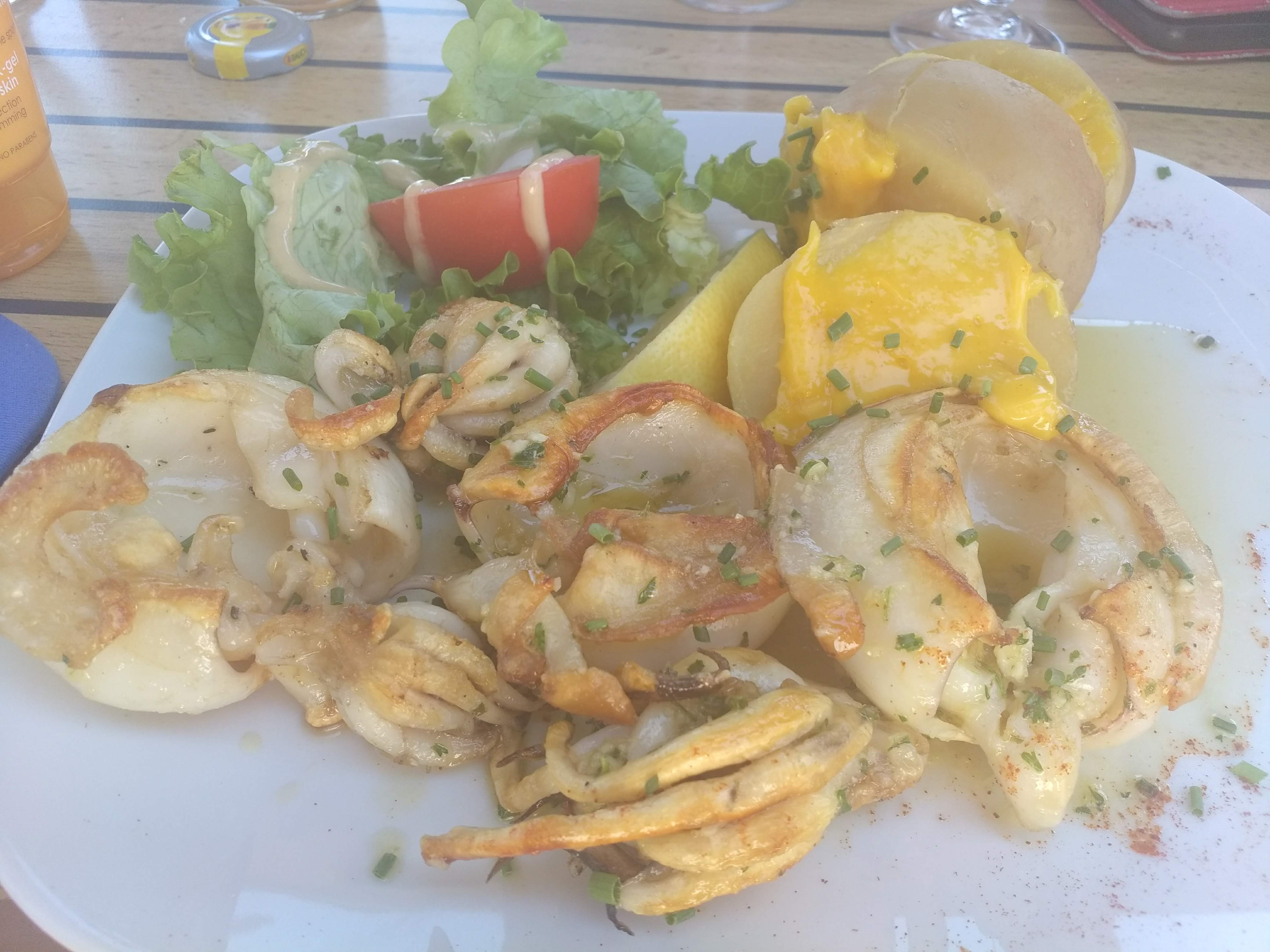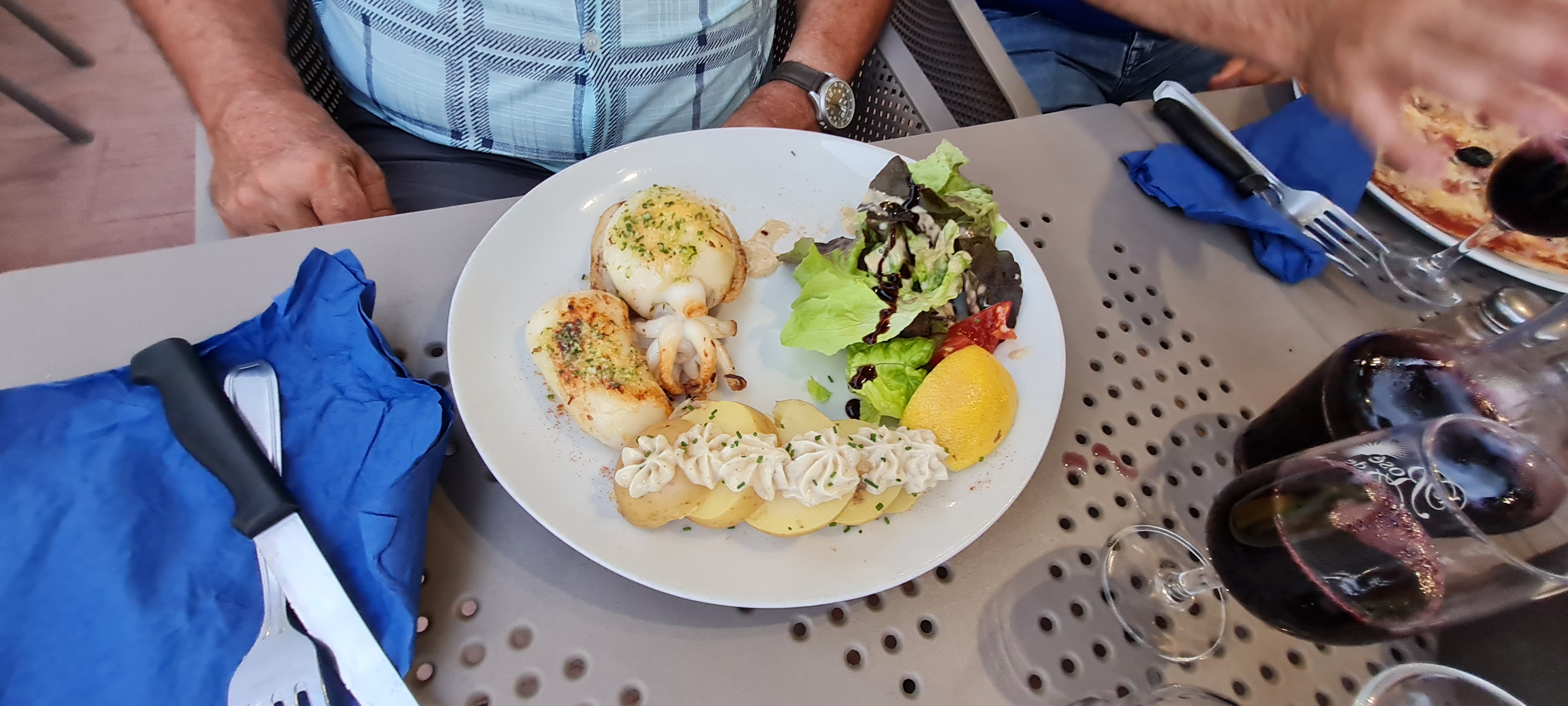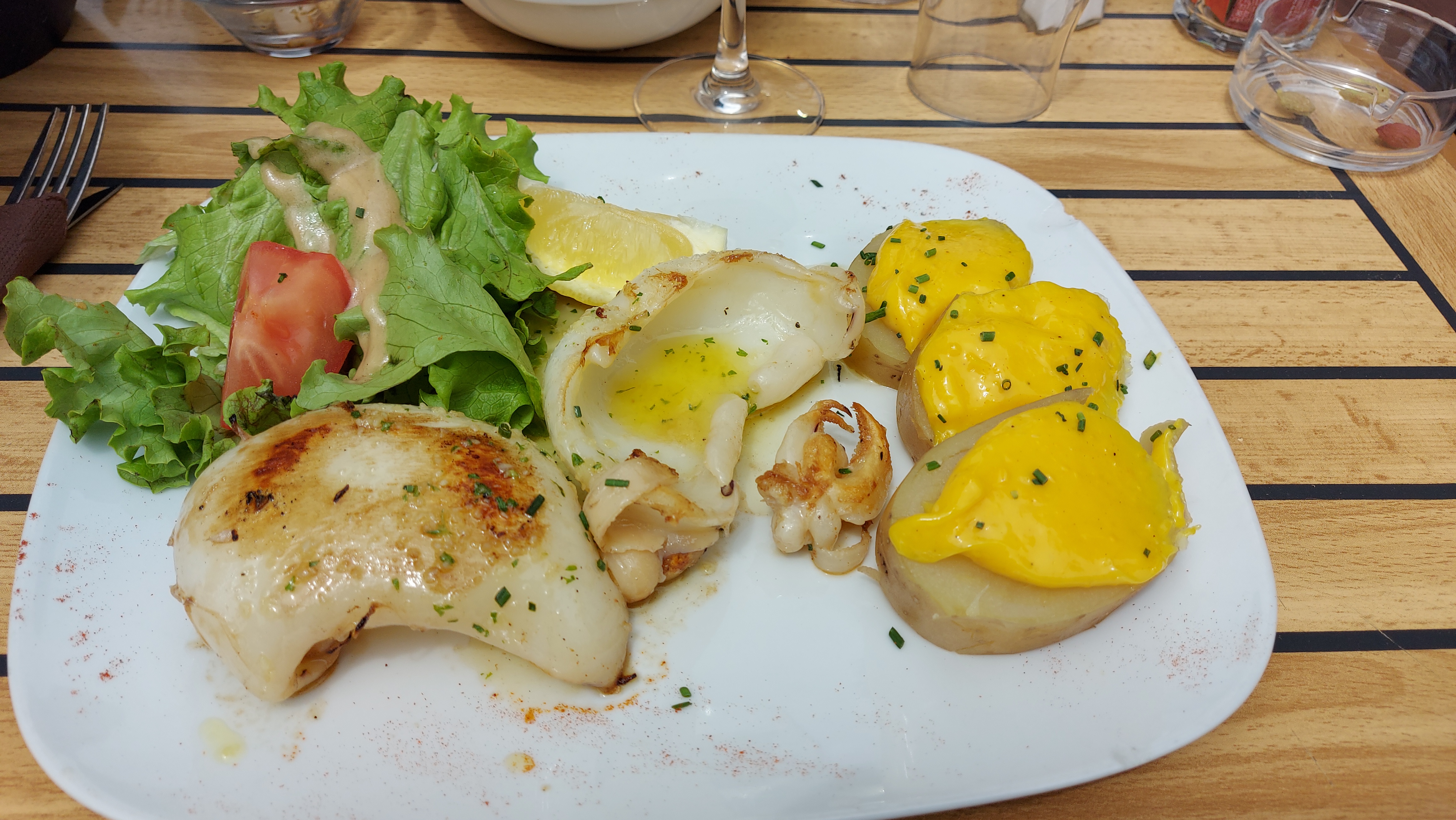 Piège à touriste parce que bien placé Nous avons pris 2 seiches à la plancha Une horreur, sans goût, sèches ,cuites sans doute à la friteuse vu la quantité d’huile. Enfin bref, ce n’est pas parce que l’on est bord de mer que l’on peut tout se permettre . A fuir malgré le cadre agréable