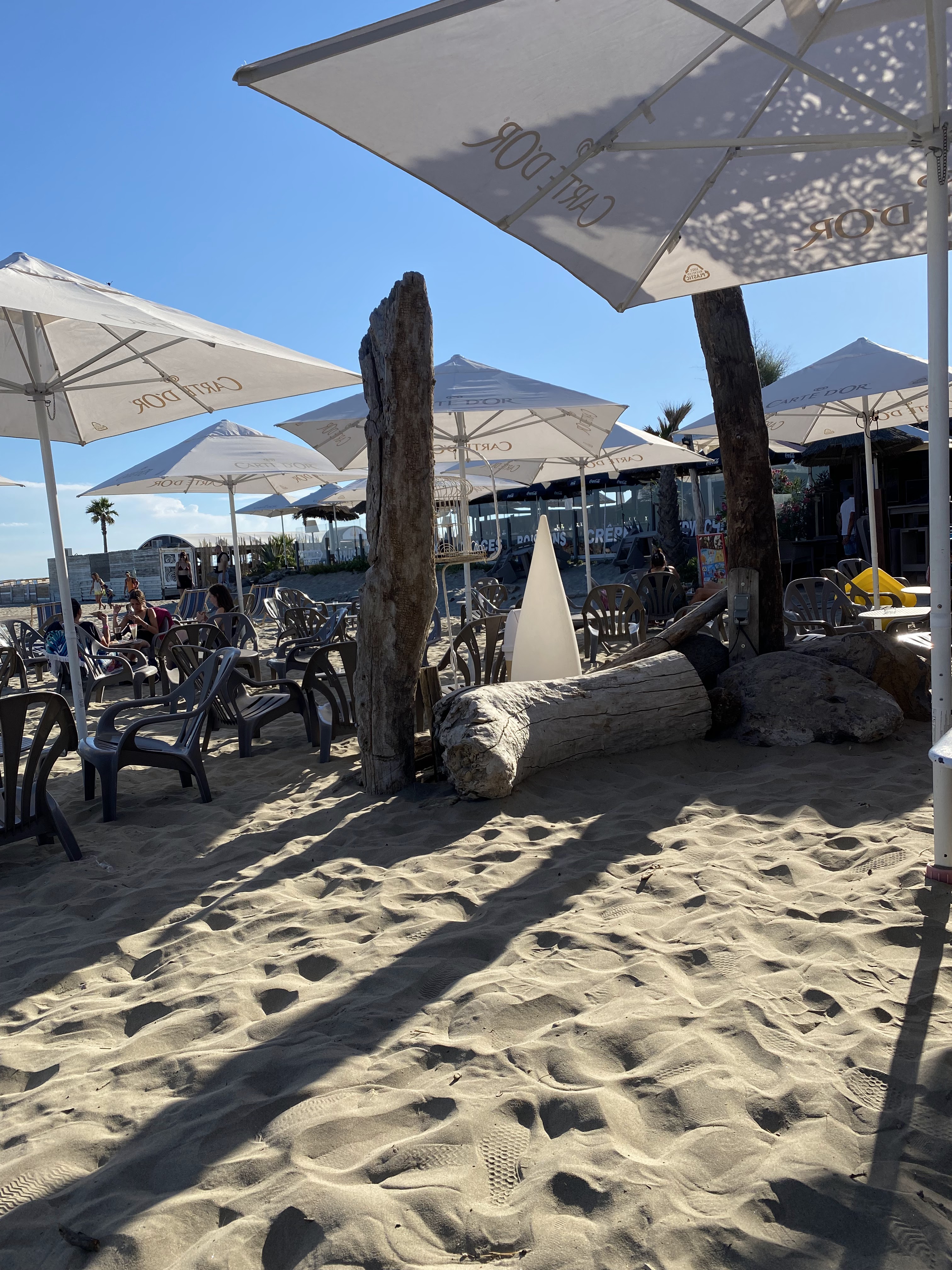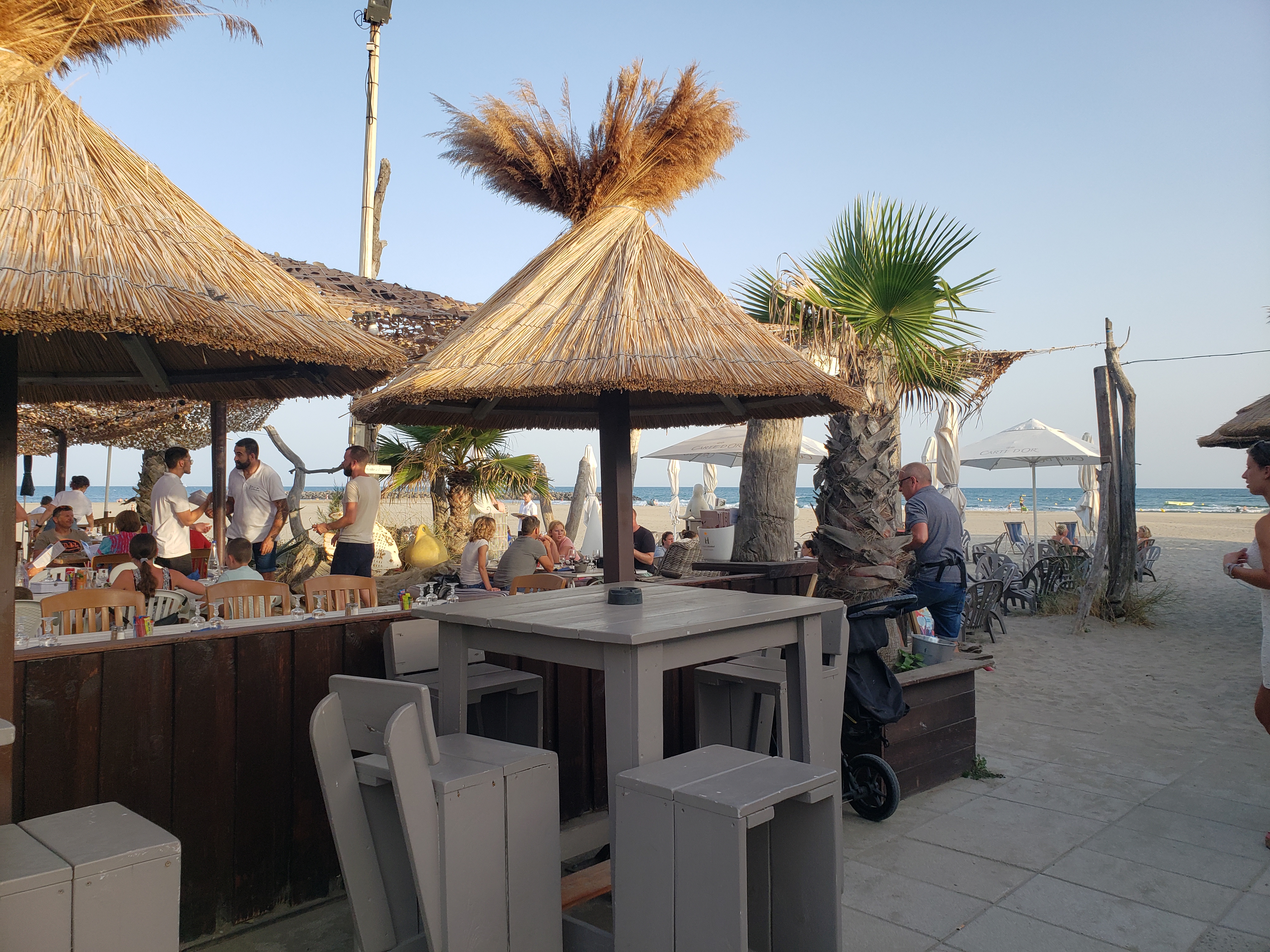 Paillote de plage , les pieds dans le sable , vue sur la mer, un endroit au top pour boire un apéro en soirée , personnel agréable