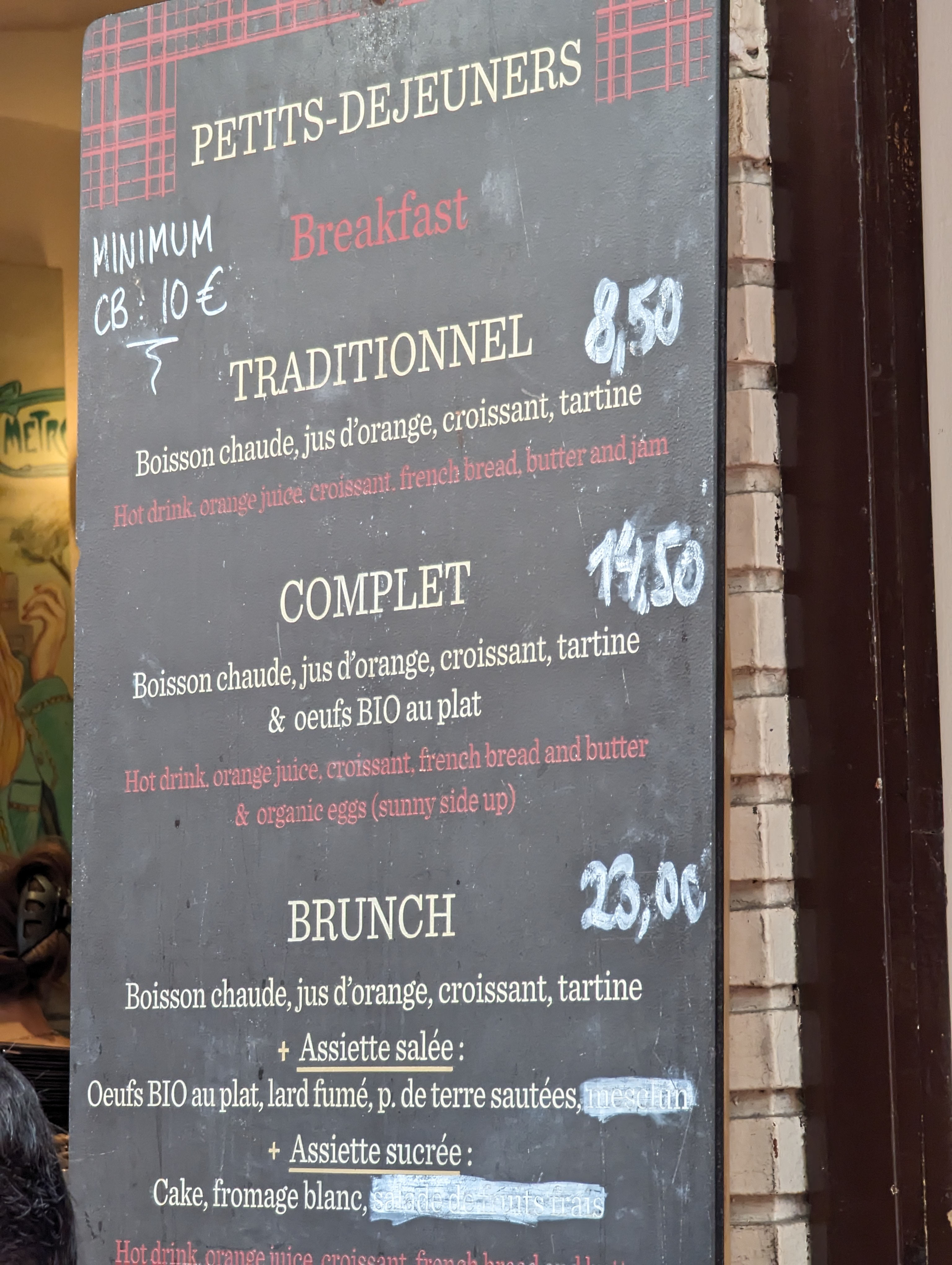 Nous avons visité l'endroit pour essayer un petit-déjeuner français traditionnel. Ils n'avaient pas tous les éléments du forfait petit-déjeuner, nous avons donc eu un repas réduit. Cependant, lorsque nous avons reçu le chèque, nous avons dû payer le prix total du repas même si nous n'avions pas reçu toute la nourriture. Ce fut une expérience assez désagréable, nous ne recommanderions donc pas cet endroit aux autres visiteurs.