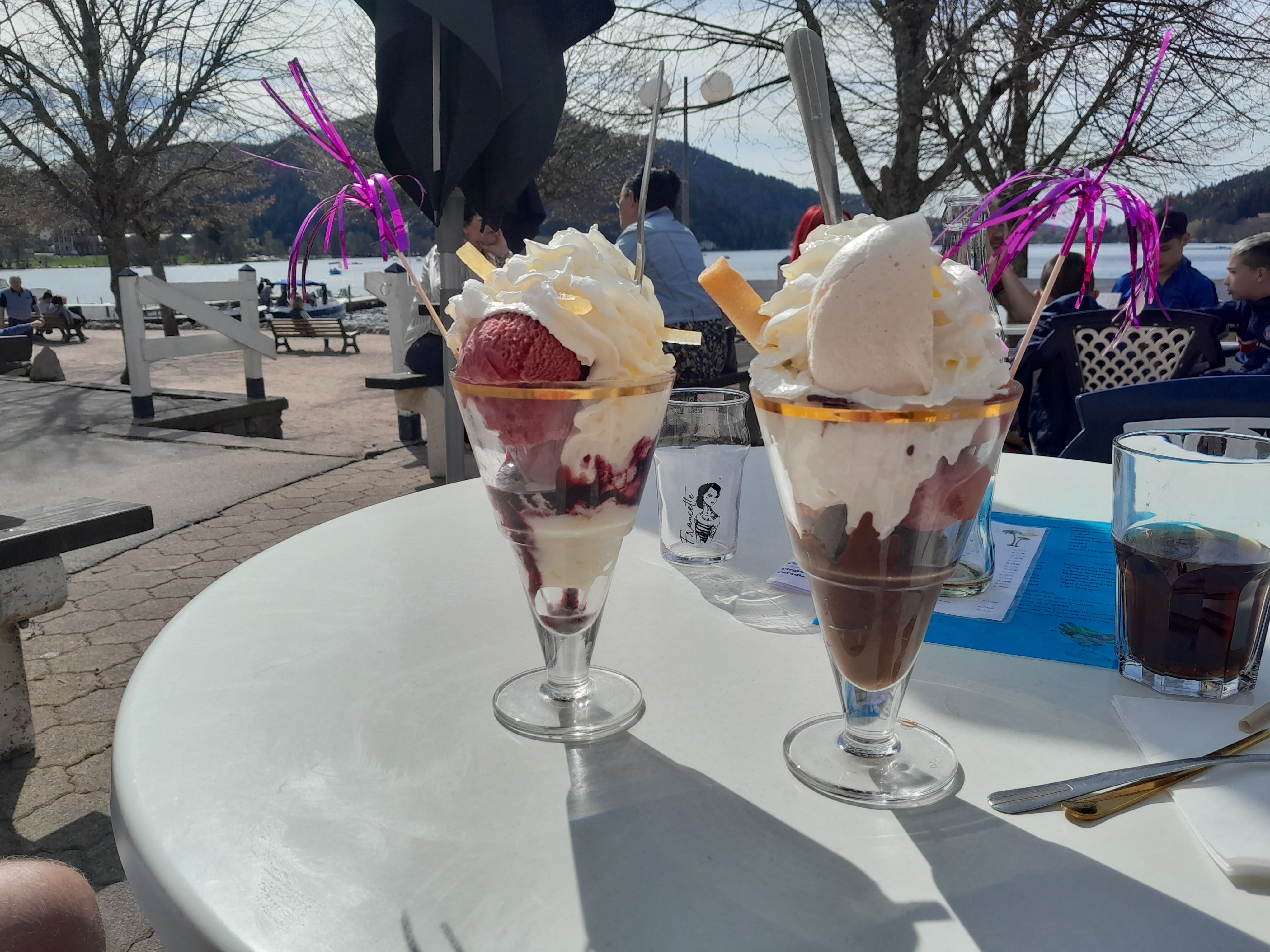 Nous y avons pris des desserts en terrasse au bord du lac. Les serveurs étaient dépassé s par l'affluence de ce fait, ils ont oublié mon dessert, après plusieurs relance on finit par me l'apporter... Évidemment les membres de ma famille avaient terminé le leur...