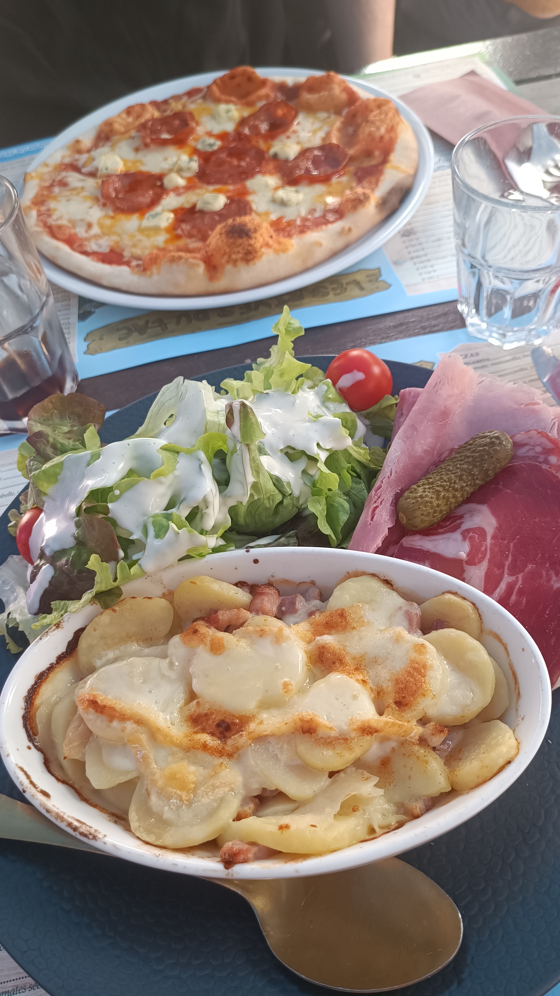 Pour ma part j’ai commander une pizza elle n’était vraiment pas bonne. La tartiflette était une tartiflette surgelée et même cramer sur les bords très huileuse en plus de tout ça. On a eu un service des plus horrible les serveurs pas du tout accueillant et de mauvaise humeur. Je vous déconseille les restaurants pour venir y manger si cela est pour la vue ses mieux.