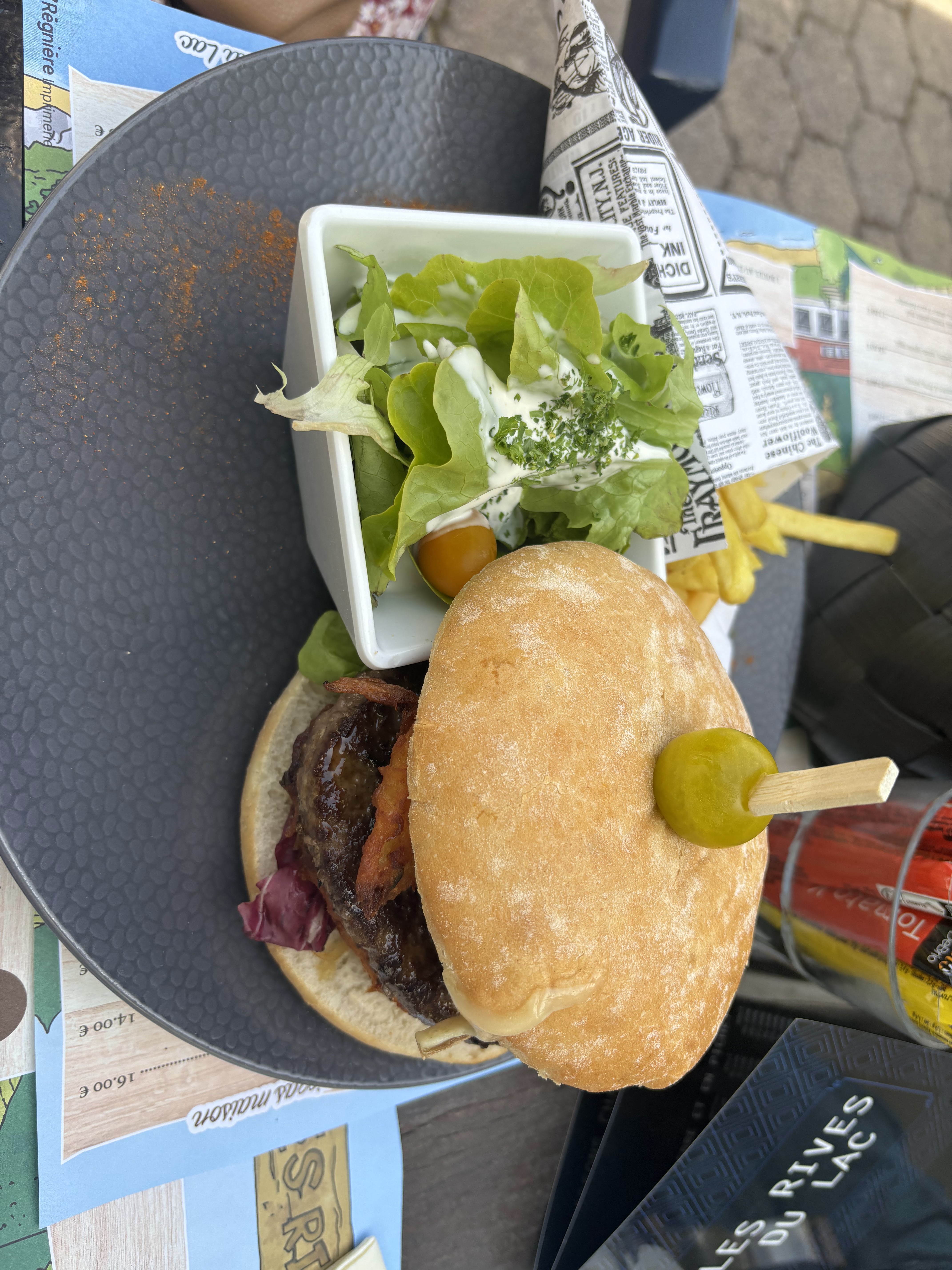 Cadre sympathique mais le service et les prestations n'étaient tout simplement pas à la hauteur des attentes... Entre les tarifs exorbitants dû à cette chance d'avoir une vue sur le lac et le service déplorable ainsi que les temps d'attente digne d'une salle d'attente de docteur et une cuisine juste horrible Les hamburgers je déconseille le pain abominable et ramollit, trop de gras qui coule dans l'assiette, une salade en entrée ou l ingrédient gruyère stipulé dans la liste et tout simplement du gruyère râpé en sachet ... même le irish coffee du dessert devait arriver d'Irlande car limite froid .. Bref sacrément déçu