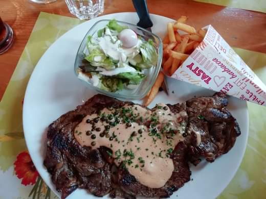 Accueil aimable Repas bon et bien servi mais Frites trop cuite