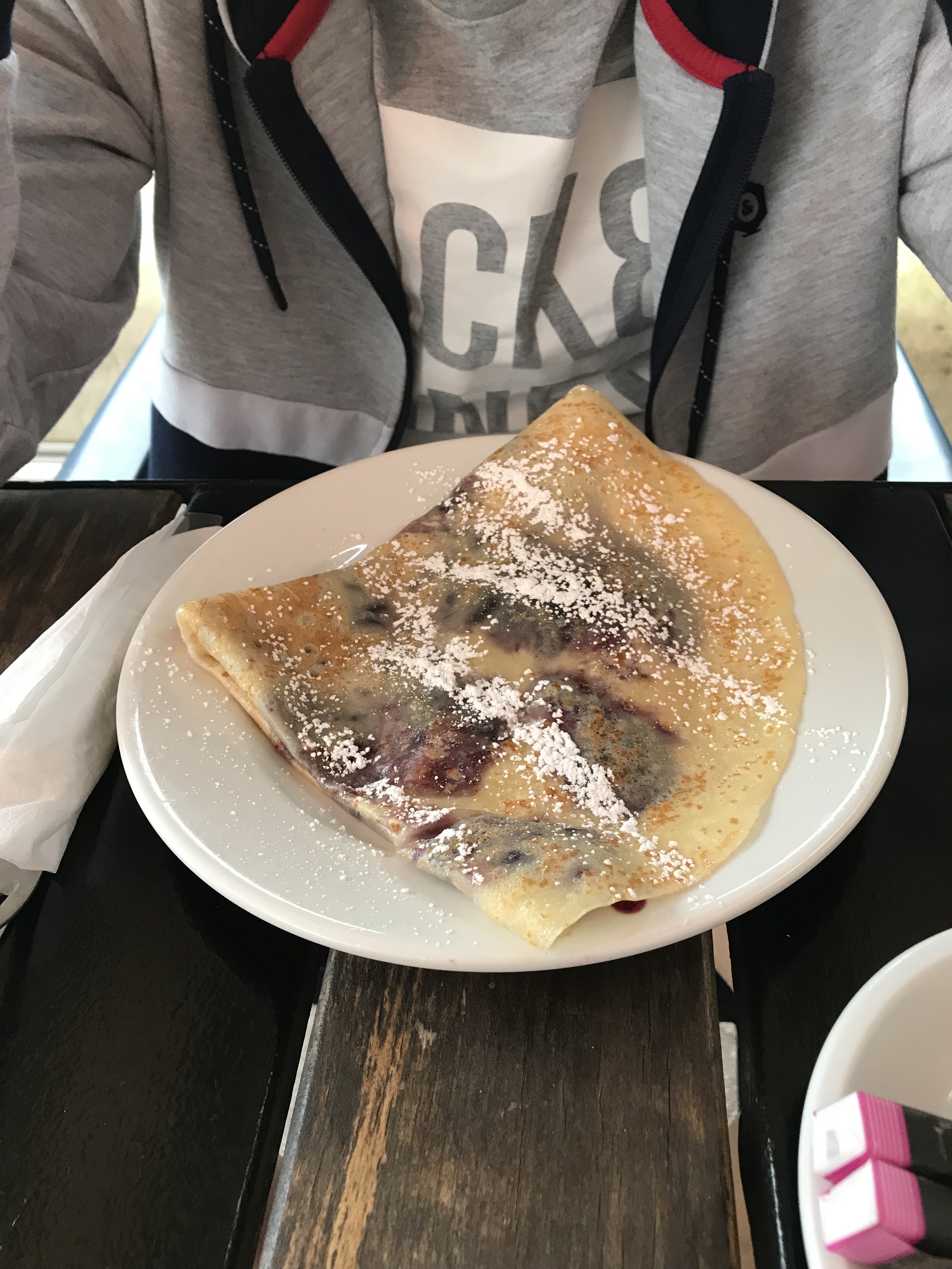 Les plats étaient copieux, la coupe de champagne avec des myrtilles était excellente. Le service à été rapide malgré un restaurant bondé. Notre serveuse était très souriante. Dommage qu'il ne faisait pas beau.