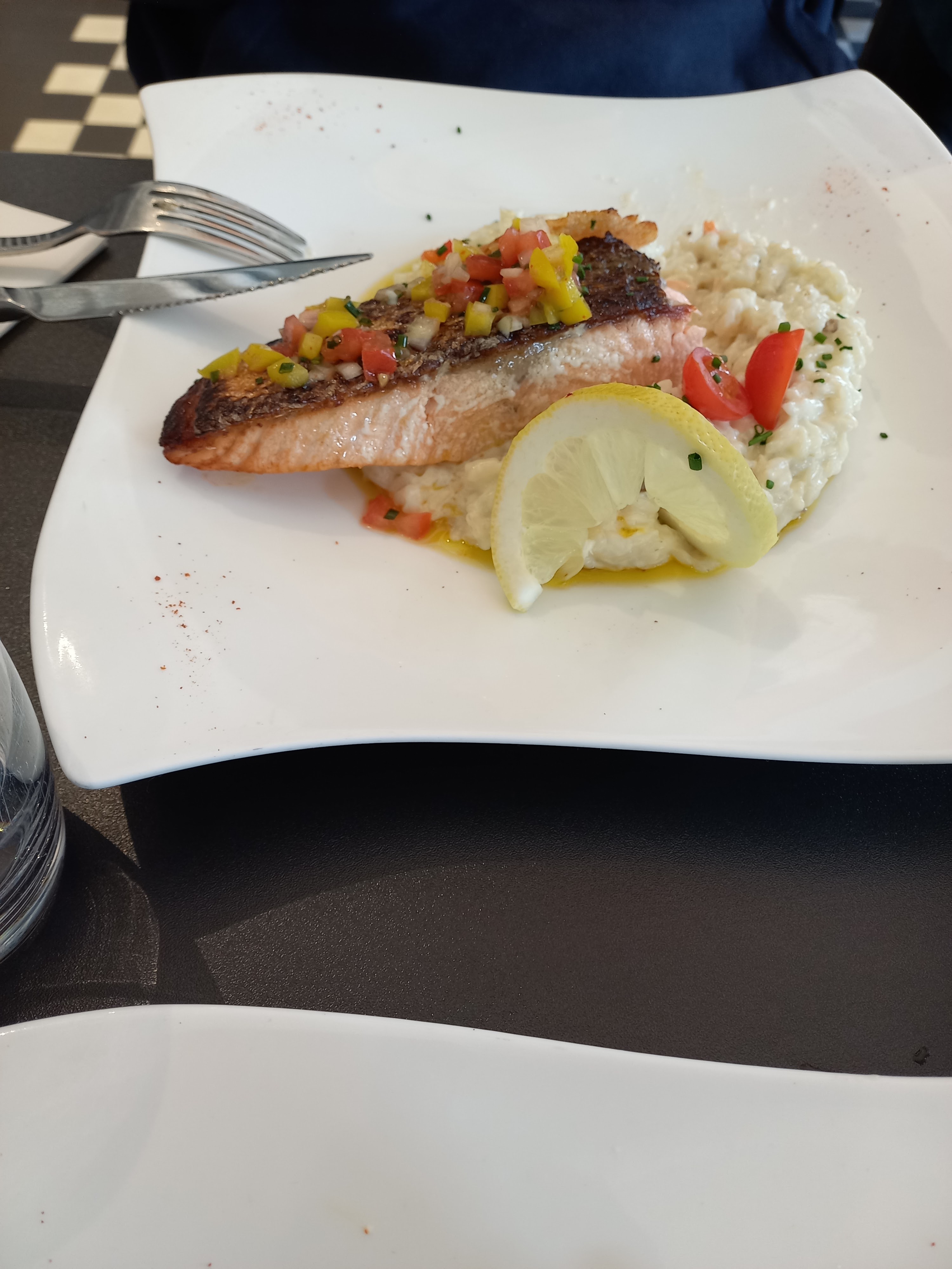 Très bon accueil de la part des serveuses et du gérant ou patron. La terrine maison au saumon cru et fumé était très bonne et le pavé de saumon délicieux, en revanche j'ai été déçue par le risotto, un peu croquant alors qu'il aurait fallu qu'il soit onctueux. J'y retournerai avec grand plaisir. Un autre bémol, plutôt bruyant.