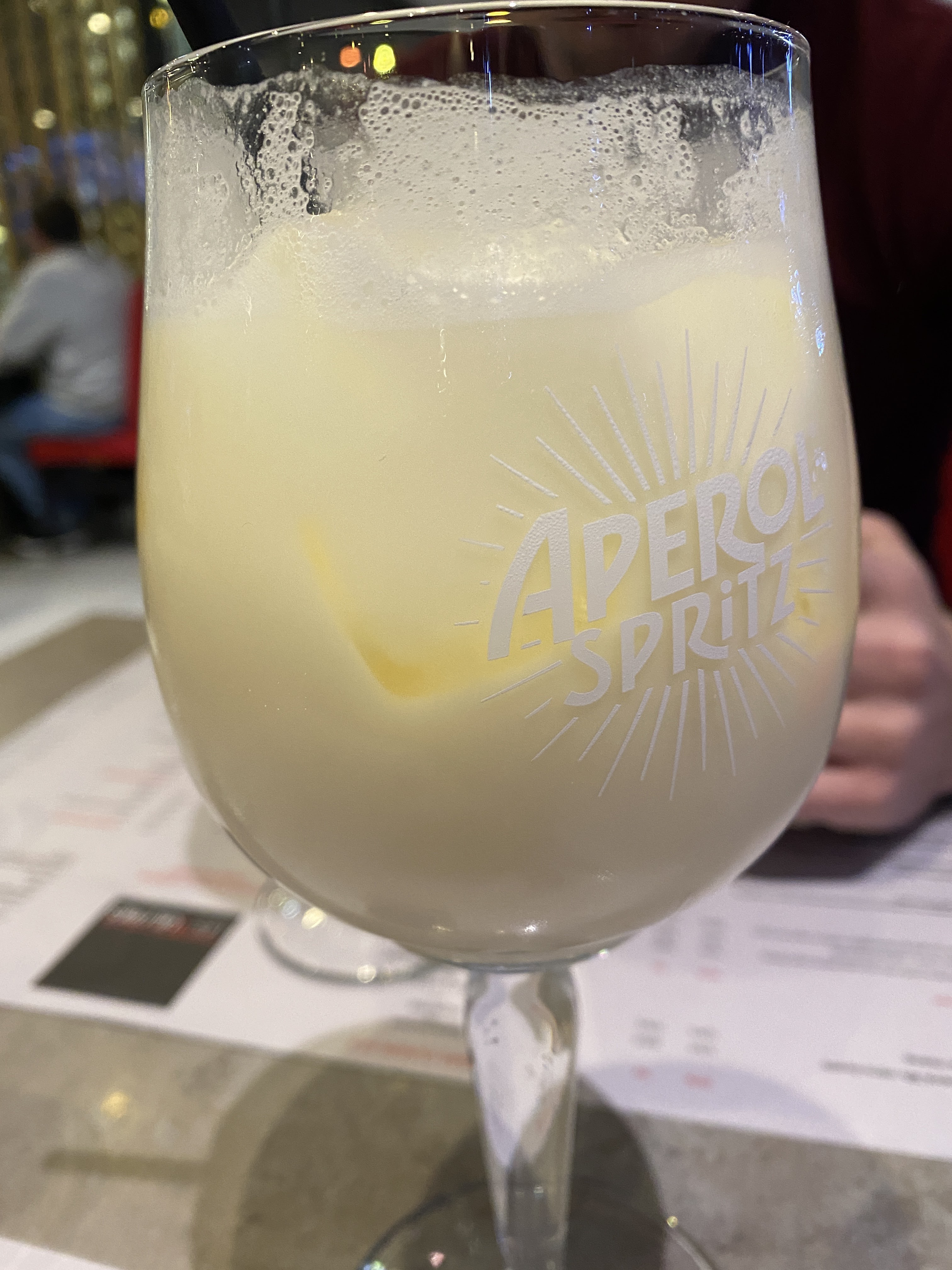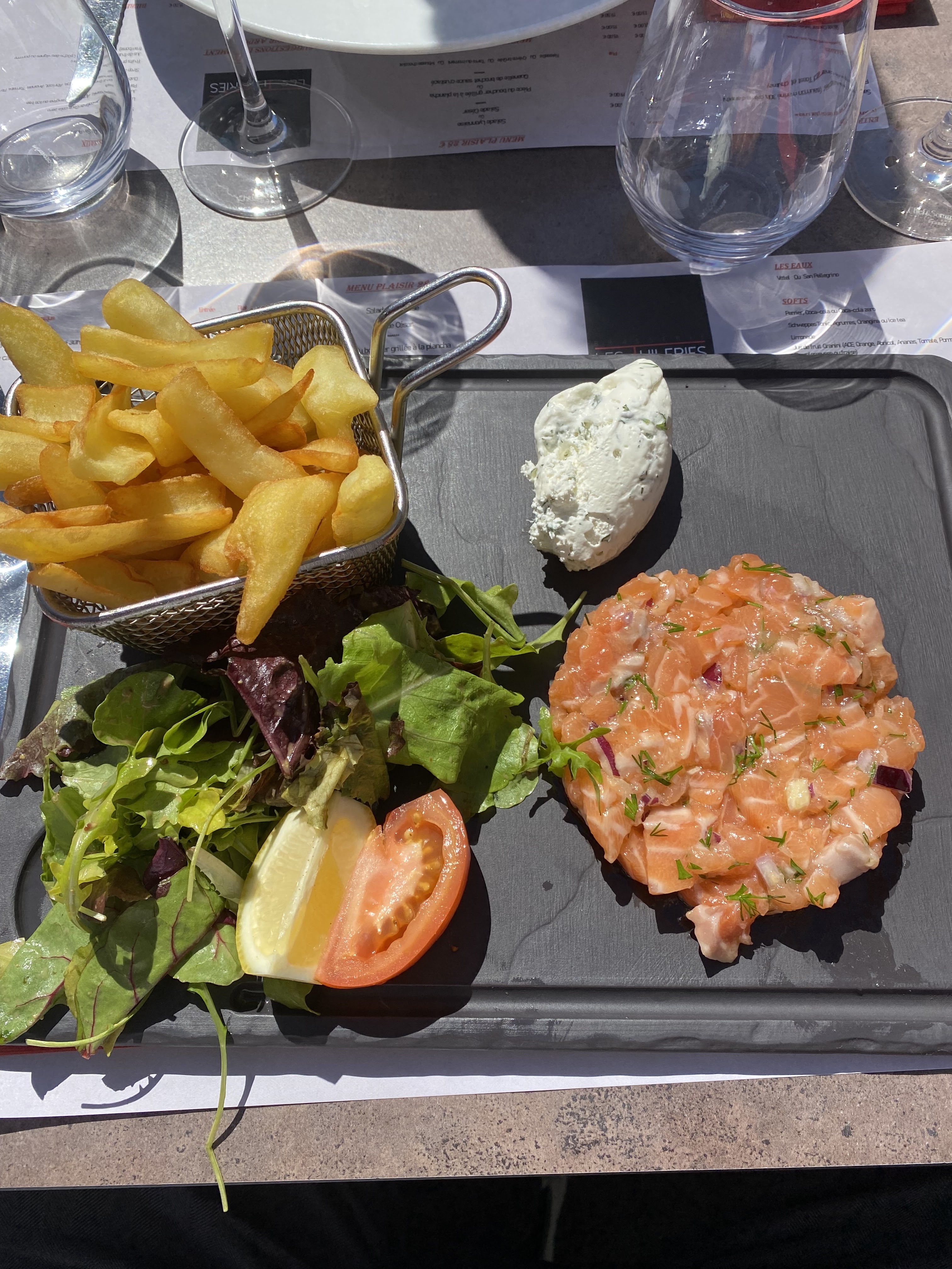 Très cher et pas bon. Spritz 9.90€ rien d’incroyable Petit tartare de saumon à 22.90 € avec des frites congelé