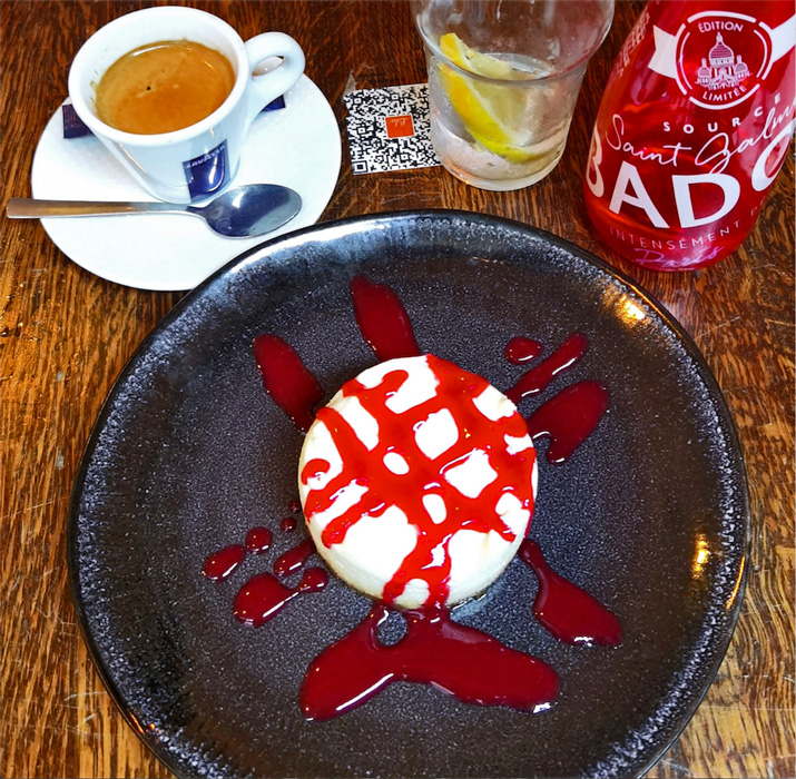 Voilà une gargotte parisienne par excellence. Je me suis vraiment senti à Paris ce midi. Il est 13h15 et la salle est pleine, je rentre. Le patron me voit et me demande ; je lui réponds être seul. Il me fait signe qu'un Client s'en va. Je le vois aider le dit-Client ; une personne en fauteuil roulant électrique. Le Patron aide la personne à remonter dans son fauteuil et je découvre qu'il s'agit d'un habitué. Cool. Je m'installe et on me présente l'ardoise. Bavette échalotes et cheese cake passion avec une p'tite CORONA pour faire glisser. Et ben ça faisait longtemps que j'mettais pas taper un bout de barbaque comme ça. Cuite comme il faut, avec les p'tites échalotes, les frites et la salade. Ou c'est splendide mais purée que c'est bon !!!! Je m'eclate et je suis pas le seul. Les habitués aussi, on plaisante, on rigole, on se charie bref, le resto avec les potes, les collègues, les Amis. Le Cheese Cake ne sort pas du congélateur, il est à la bonne température et le coulis de passion lui va bien. Un super moment aussi pour l'ambiance que pour ce qu'il y a dans l'assiette. Tout y est et c'était un super moment. Merci