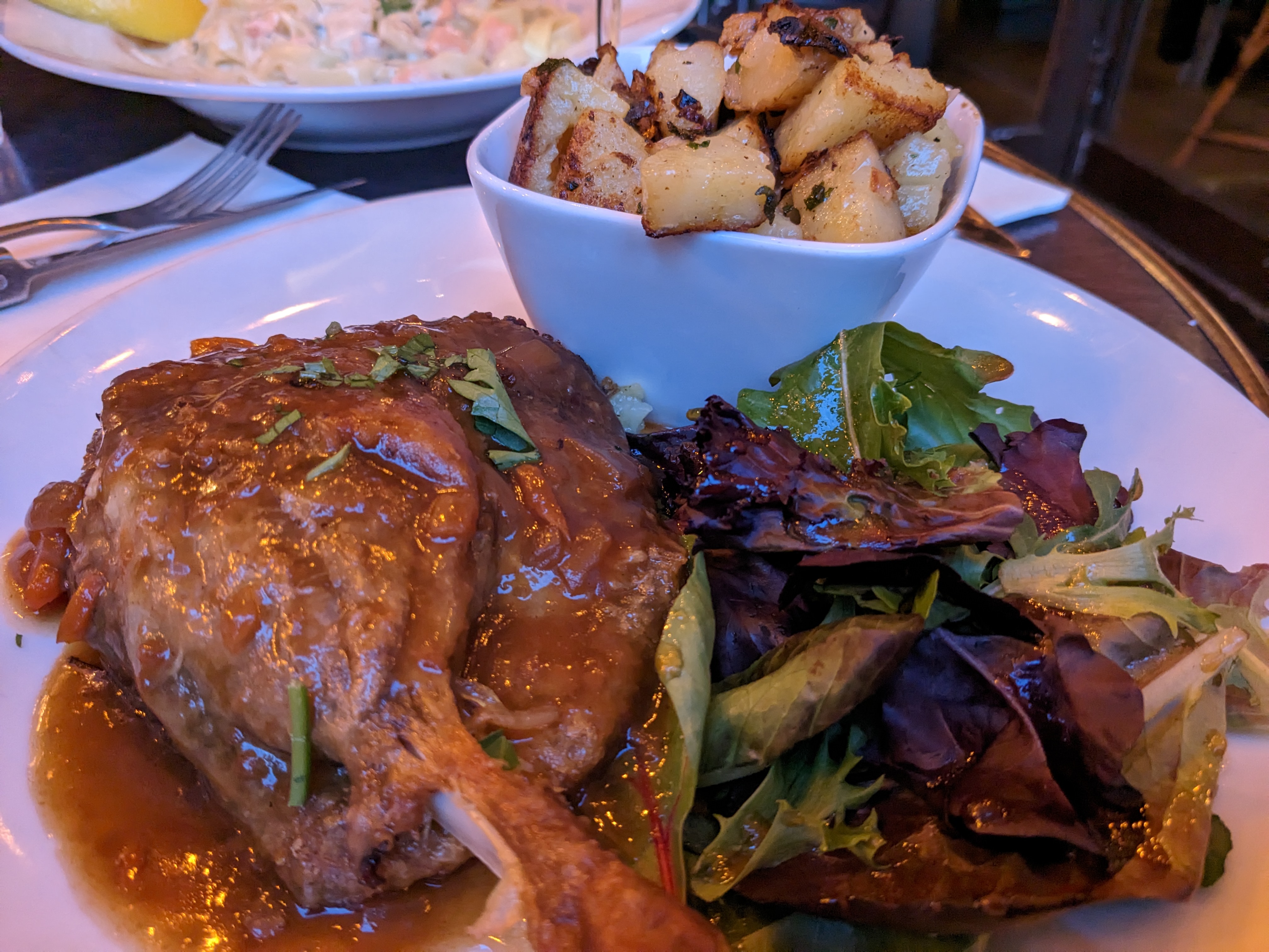 Je me suis arrêté parce que ce n'était pas loin de l'auberge où je logeais pour dîner et je voulais juste me détendre. Le serveur était sympathique et m'a assis à une table à côté d'une fenêtre, il faisait beau dehors et le patio était extrêmement occupé. J'ai commandé une pinte et le poulet et j'ai vraiment apprécié le poulet. La portion était un peu plus grande que ce à quoi je m'attendais et j'ai presque eu du mal à la finir. Je pensais que c'était un joli petit endroit.