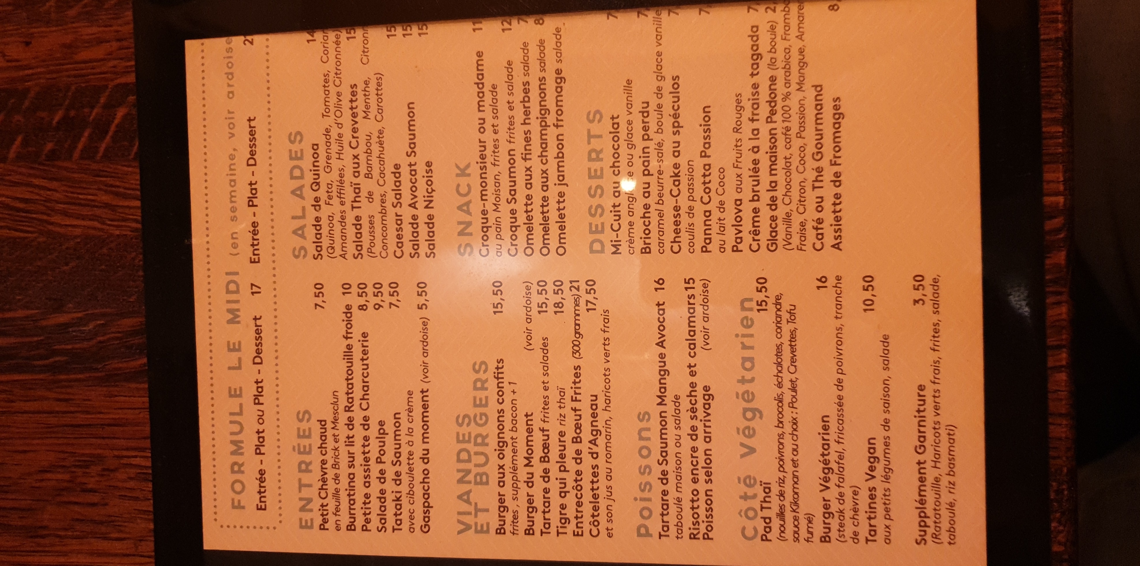 Cuisine simple mais Excellente. Très bon rapport qualité/prix. Un des derniers endroits de Paris où le café est à 1 € au comptoir.