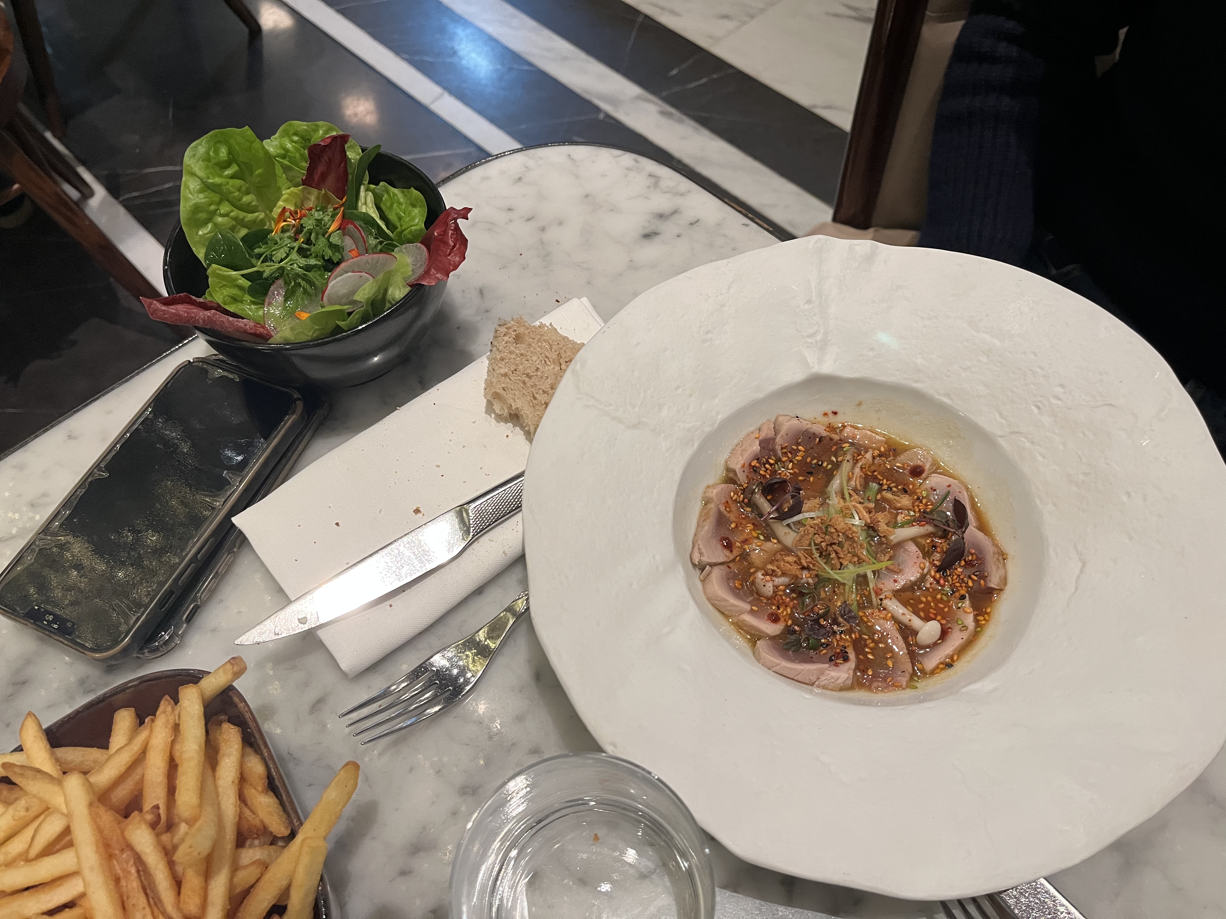 Dans un lieu magnifique, une simplicité maîtrisée à tous niveaux, un service très sympathique et professionnel, des plats cuisinés même si classiques, une ambiance élégante mais conviviale . Le prix est correct vis à vis de l’expérience Trés qualitative. Une valeur très sûre d’une brasserie Parisienne chic, nous reviendrons. Bravo à tous