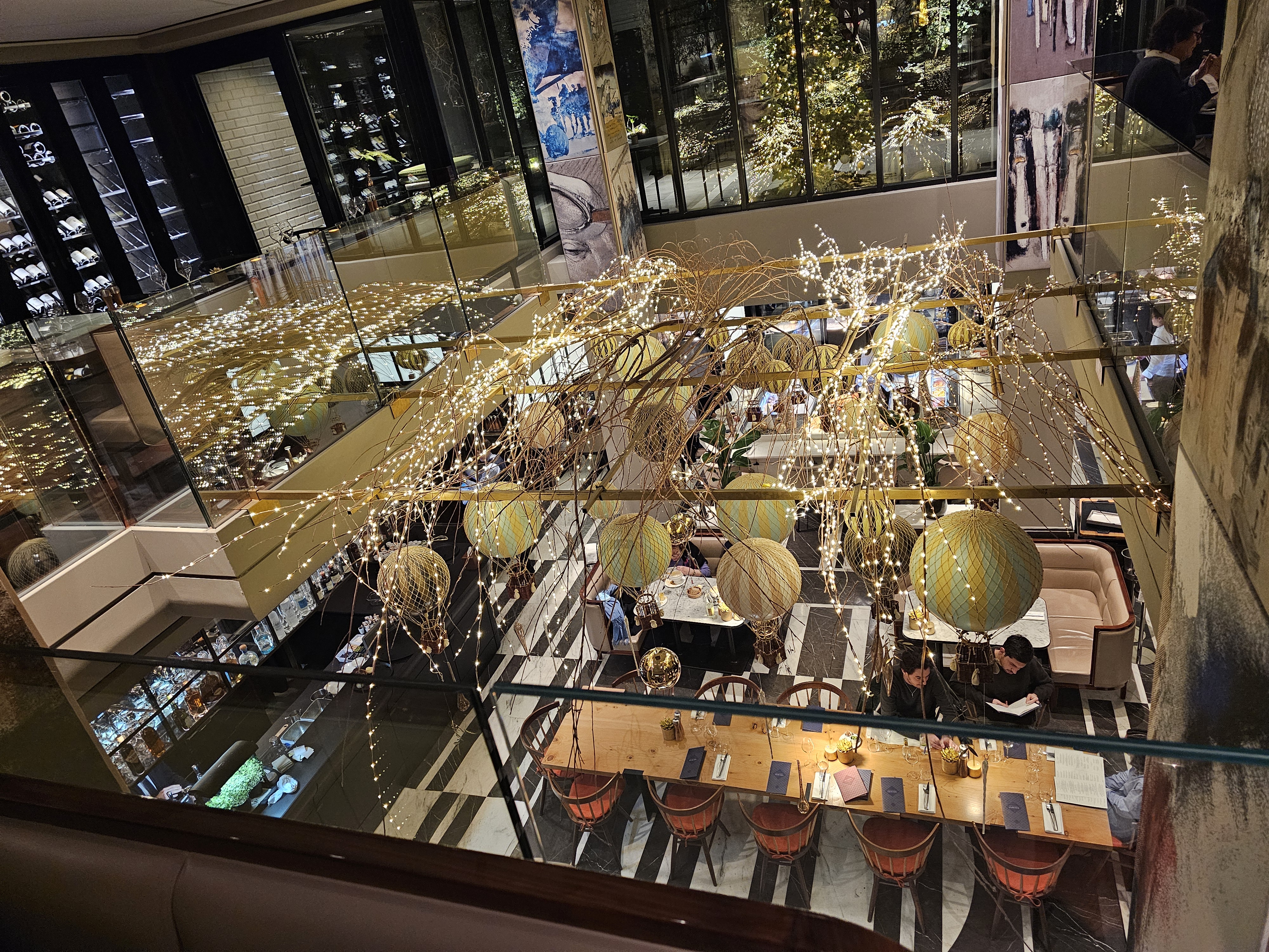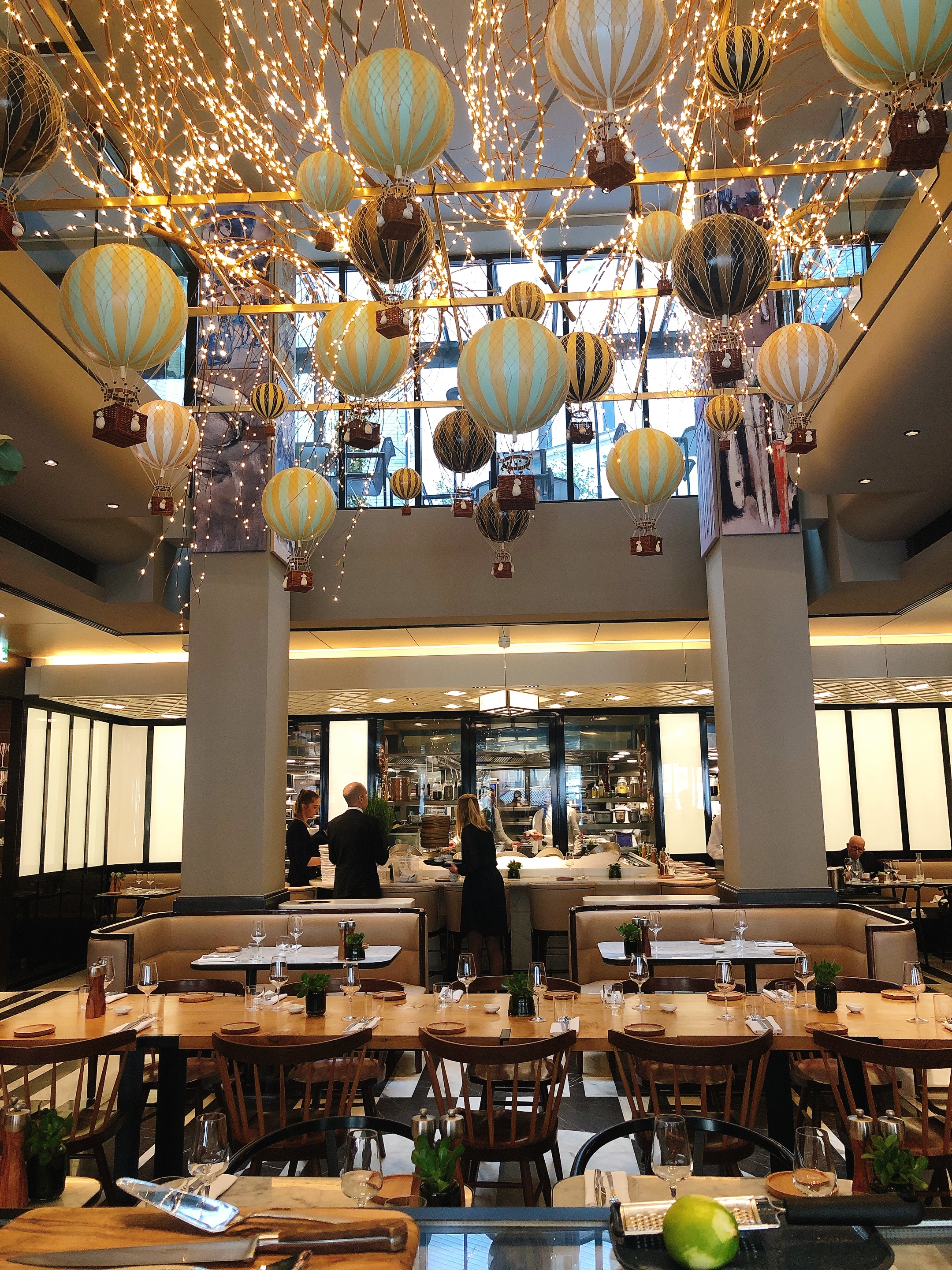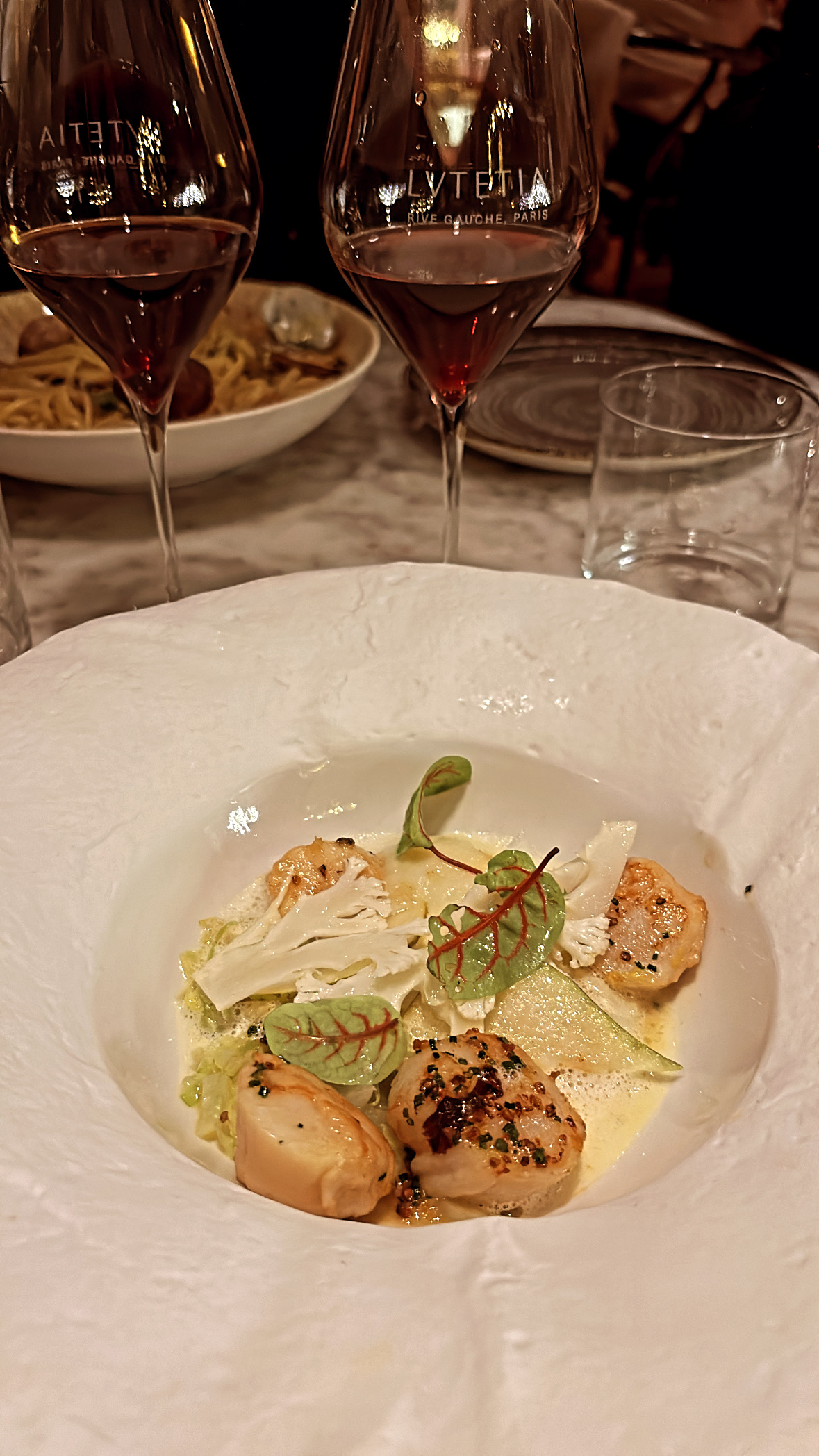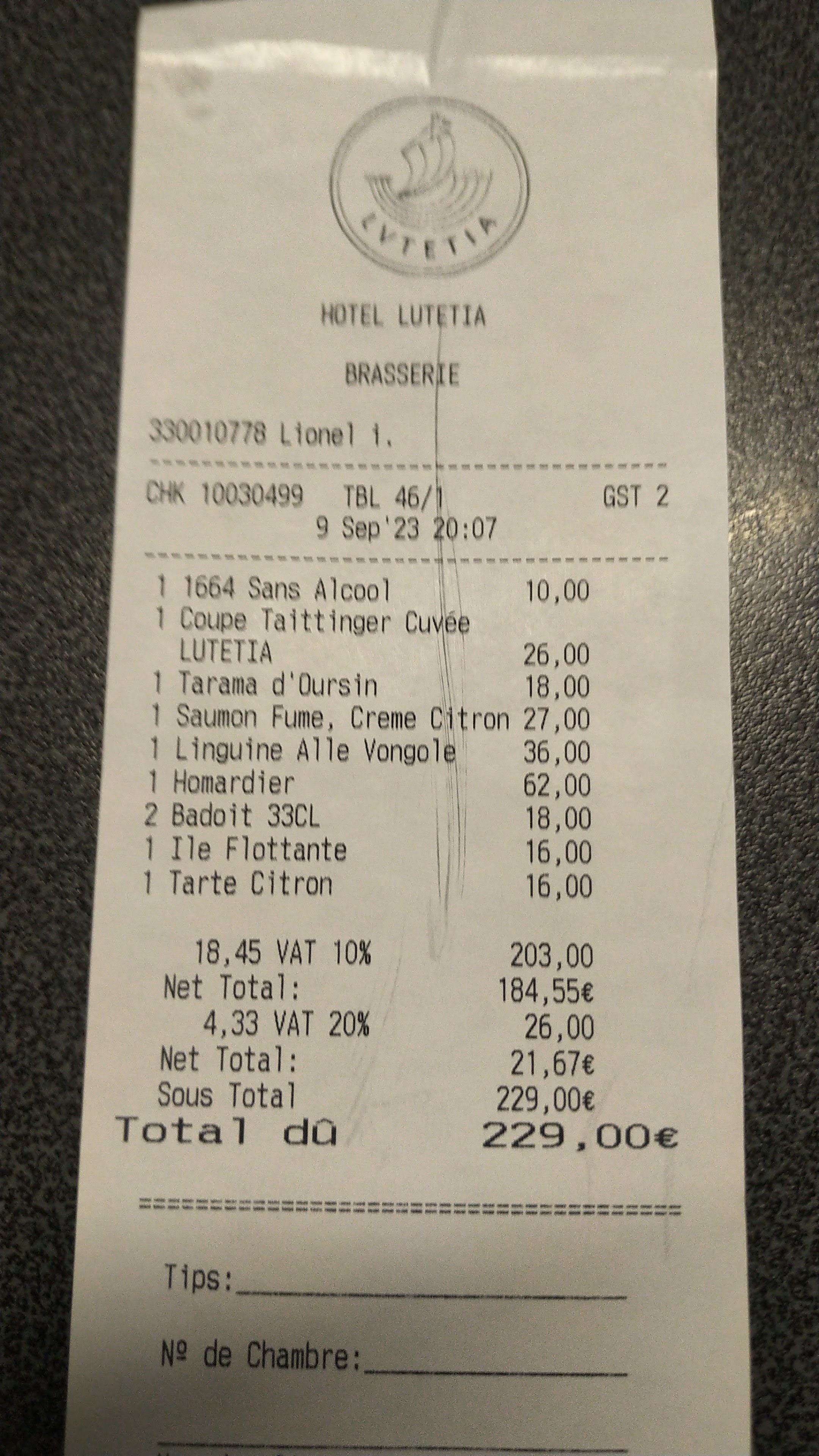 Carte type brasserie haut de gamme, bonne sélection d’entrées chaudes et froides, de viandes et de poissons/crustacées, mais d’une extrême pauvreté sur les options végétariennes, on sent que le chef n’a pas l’habitude. J’ai pris des linguine au homard. Linguine parfaitement cuites al dente. La sauce est bien travaillée, légèrement épicée, bonne. Le homard était insipide malheureusement, et alors que je devais avoir un demi-homard, je n’en vois que les pinces et un ridicule petit bout de queue (bref assez loin d’une moitié, quand bien même aurait-il été un homard chétif). En dessert, un Royal au chocolat dans les règles de l’art ; bon, mais sans plus. A ma table, une sole meunière excellente, et les Saint Jacques excellentes aussi (mais une portion ridicule, même pour ma femme qui n’a pas gros appétit… il manquerait peut-être un accompagnement). J’ai trouvé la décoration (petites Montgolfières au plafond) du lieu sympa, sans whaou ! Les serveurs sont au début de leur courbe d’apprentissage. On a eu affaire à 5 serveurs différents. 15 minutes se sont écoulées entre le moment où j’arrive à ma table et demande le vestiaire et le moment où on vient me prendre mon manteau. Un serveur vient nous proposer de commander un verre en apéro, il nous laisse consulter la carte et n’est jamais revenu. Le sommelier était absent pour notre choix de vin. Pendant la commande et le service des plats tout était au niveau. Le service du vin plus aléatoire. A la fin du dîner notre serveur nous a salué avec une insistance dans son discours peu usuelle, nous demandant a de maintes reprises si tout s’était bien passé sans vraiment nous laissé le temps de répondre. Les prix sont élevés bien sûr, c’est la brasserie du Lutetia après tout ! Ce qui fait que le rapport qualité-prix est assez mauvais.