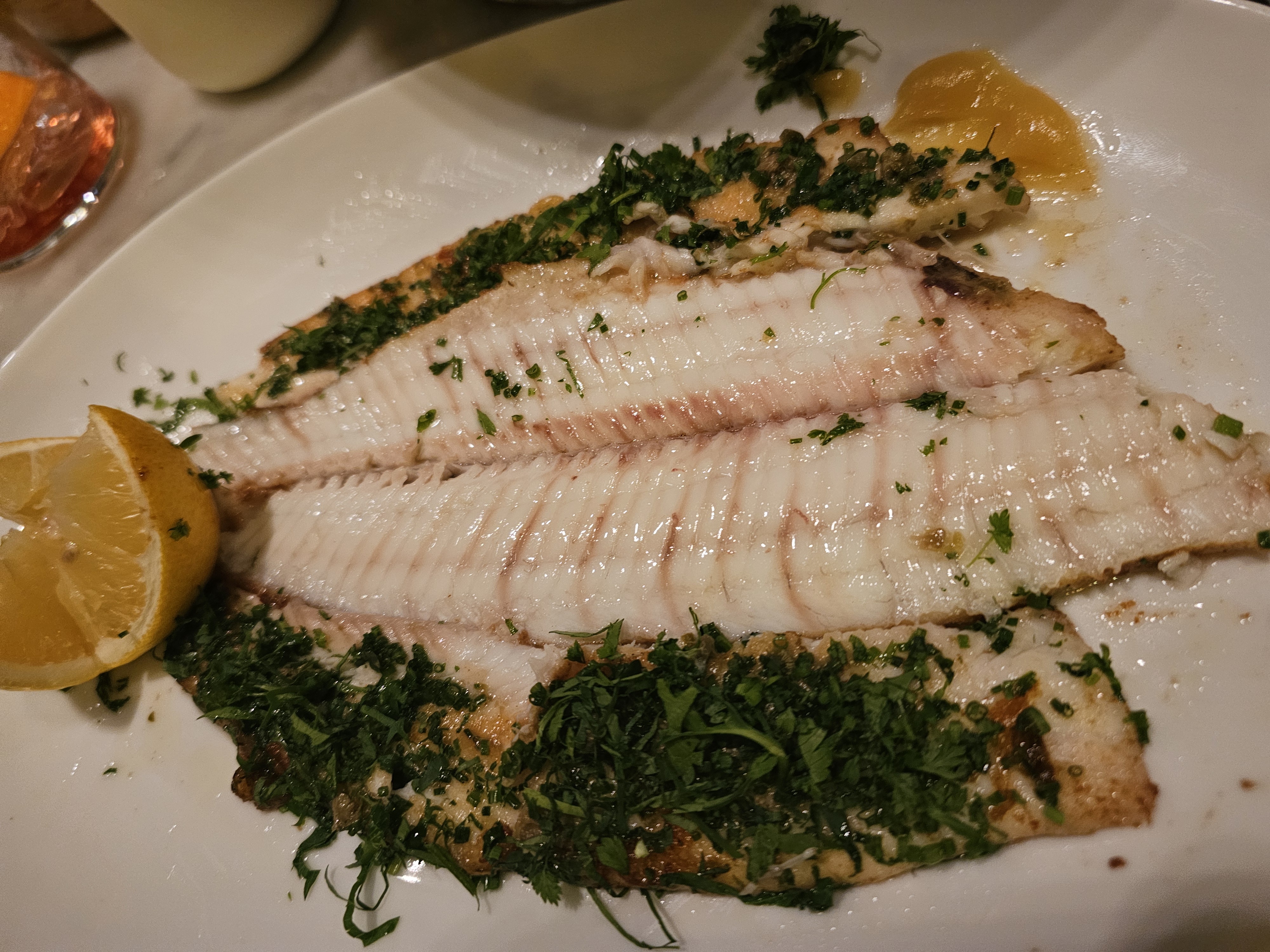 Première sole à 61€, renvoyée car caoutchouteuse… deuxième sole pas beaucoup mieux… bien entendu je l’ai mangée car il était hors de question de gaspiller un deuxième poisson, mais le rapport qualité prix n’y est pas. Elle n’était pas mauvaise mais pas bonne non plus. La texture et le goût pour un poisson à 61€ dans un établissement de la sorte devraient être au rendez vous. Ils n’y étaient pas. Les serveurs n’étaient pas très accueillants exceptée la serveuse qui nous a pris nos manteaux et préparé la table (merci pour votre gentillesse).