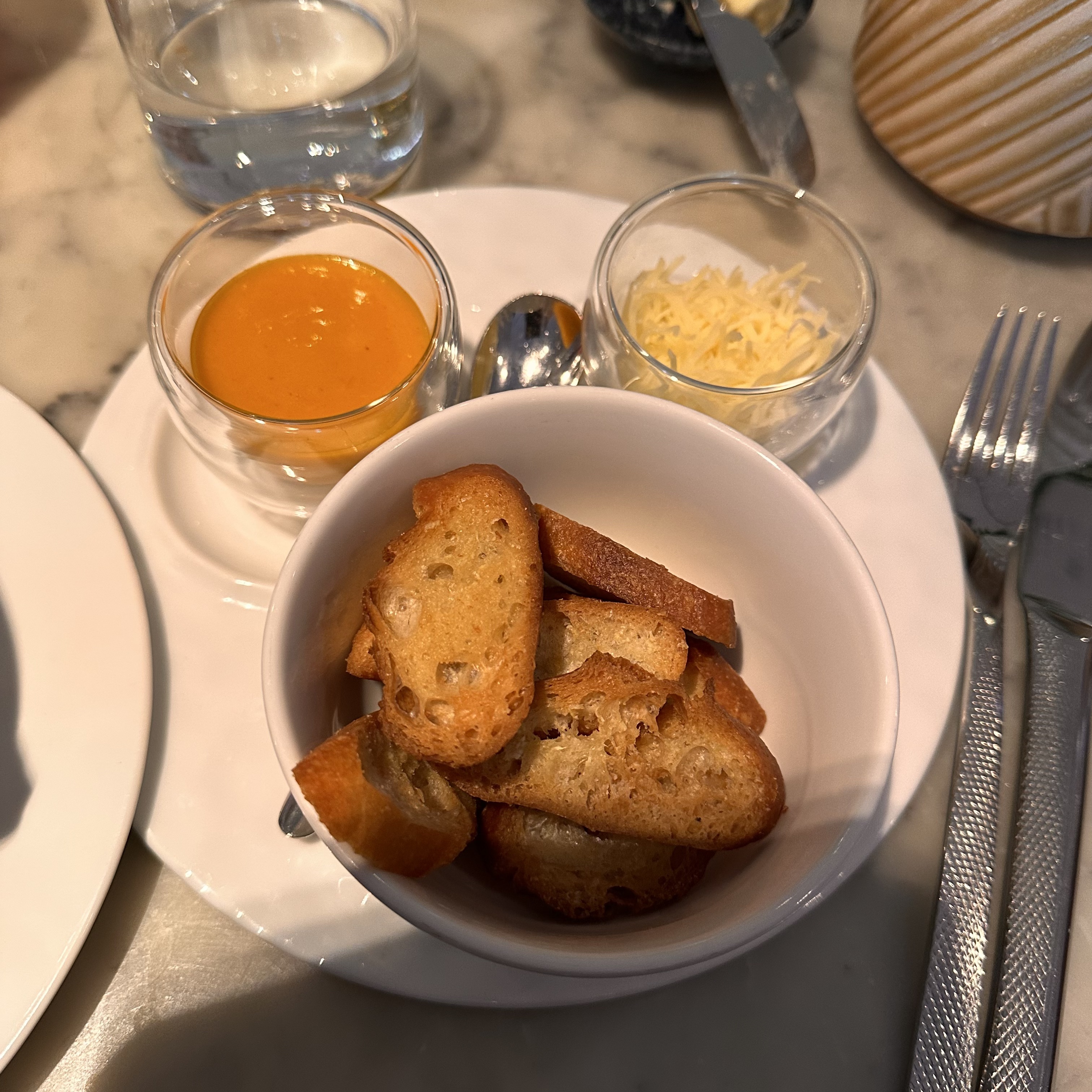 Je suis venu pour un petit déjeuner, niveau nourriture, rien à redire, tout était très bon mais niveau service, le bât blesse… les serveurs sont souriants mais il y a un manque flagrant d’efficacité ! Le service de la carafe d’eau c’est chic mais quand il faut attraper le regard d’un serveur toutes les 5 minutes pour être resservi, c’est fatiguant ! 3 serveurs pour débarrasser une table mais personne pour nous apporter du pain avec l’assiette de fromage (qui avait d’ailleurs été servi sans pain… on a été obligé de tartiner le fromage sur un reste de chouquette de notre assiette de viennoiseries, il faut aimer le sucré salé !) Pour une addition de plus de 100€ à deux, on espérait mieux (on parle d’un petit déjeuner, pas d’un resto avec entrée plat dessert et vin…) Allez y pour la cadre et pour la qualité de la nourriture en espérant que le service (très courtois cela dit) s’améliore