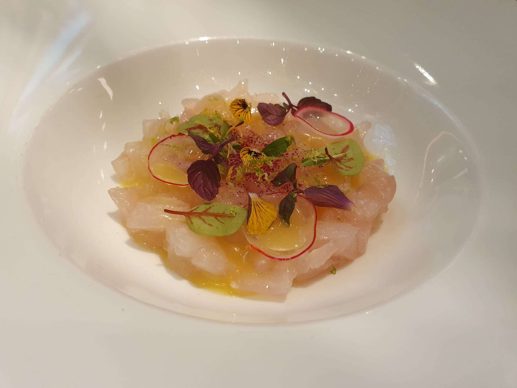 La cuisine est très agréable, les saveurs les cuissons sont respectées les assiettes sont bien présentées. Voilà le seul côté positif, un service qui laisse à désirer, je n'ai pas compris pourquoi toutes les autres tables ont eu une corbeille de pain mais pas la mienne. Je commande une bouteille de vin déjà je dois demander la carte des vins car on ne propose que des vins au verre. La bouteille est ouverte au cours de l'apéritif afin de l'aérer très bien... me voilà au milieu de mon entrée toujours personne pour me servir un verre... Fin d entrée nous avons attendu 25min d'être débarrassées toutes les autres tables l ont été même celles où les clients n avaient pas fini ... et en fin de repas le café est servi sans sucre... bref un service qui n est ni à la hauteur de la cuisine ni du standing du palace attenant... les gestes commerciaux ne font pas tout...
