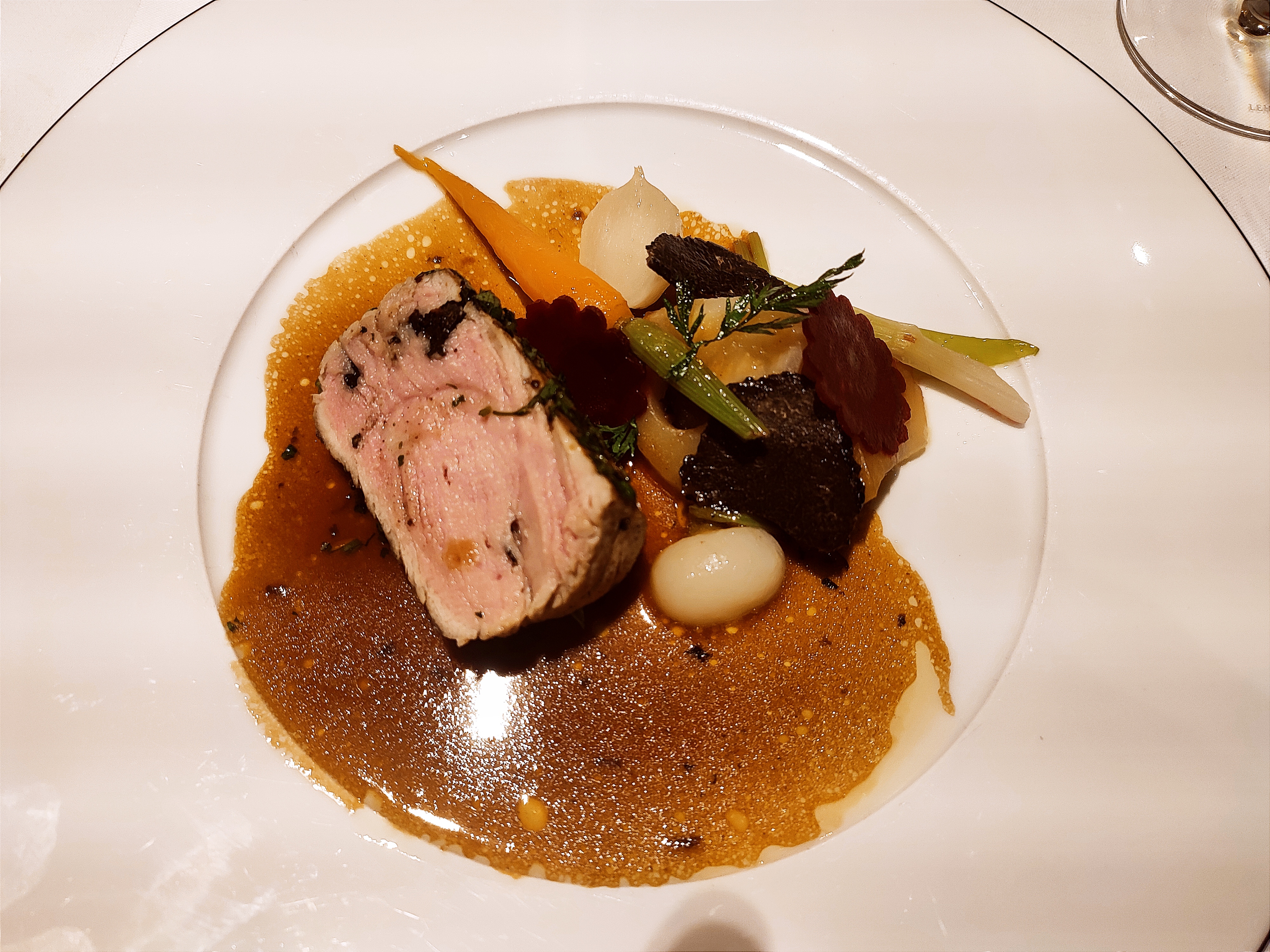 Très beau cadre chic mais pas guindé , le plus du plus a été le service soirée du 27 avril,un jeune homme très soigneux et professionnel très bon service. très bon fois gras, le homard entier roti excellent.