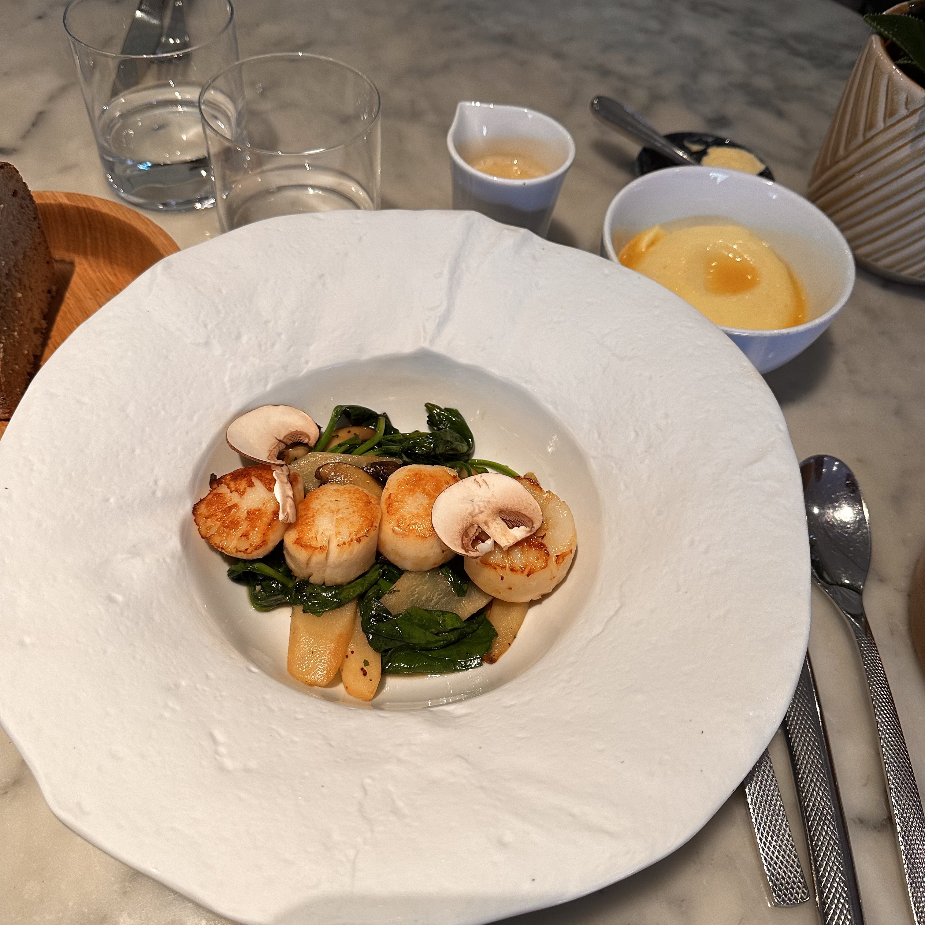 Clairement pas à la hauteur. La présentation des assiettes est baclée, nous avons demandé la carafe d'eau à quatre reprises, quant au pain, il n'est jamais arrivé sur la table. Nous avons consommé du vin au verre, aucun des trois verres n'était rempli de la même façon. Pour 100€ / personne, nous sommes en mesure d'exiger autre chose.... Bref, je ne recommande pas!