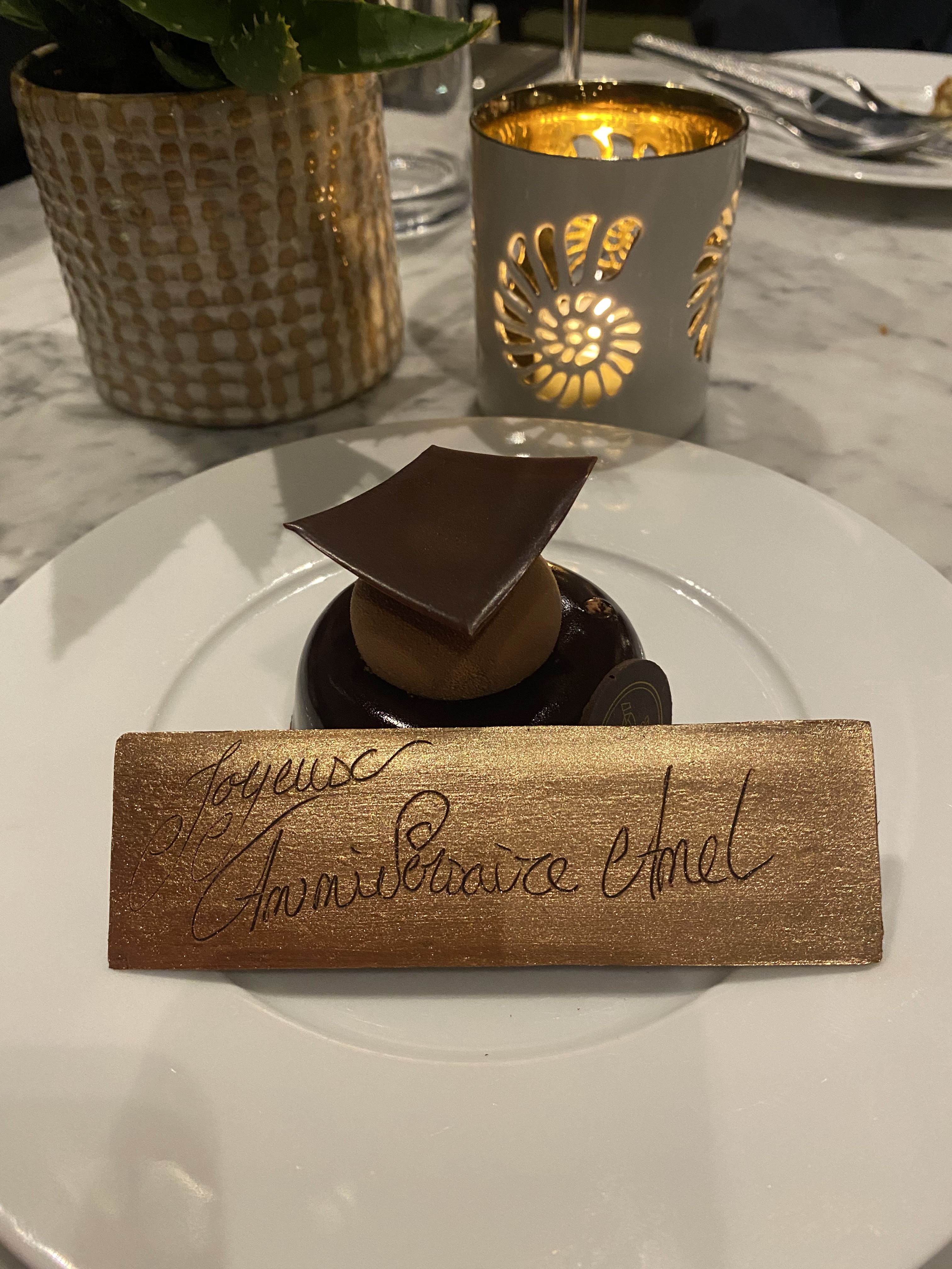 Personnel professionnel et attentionné. Les plats commandés (et le verre de vin, un Margaux) étaient très bons, notamment le suprême de poulet et la lotte. Le café gourmand restera un très bon souvenir gustatif !