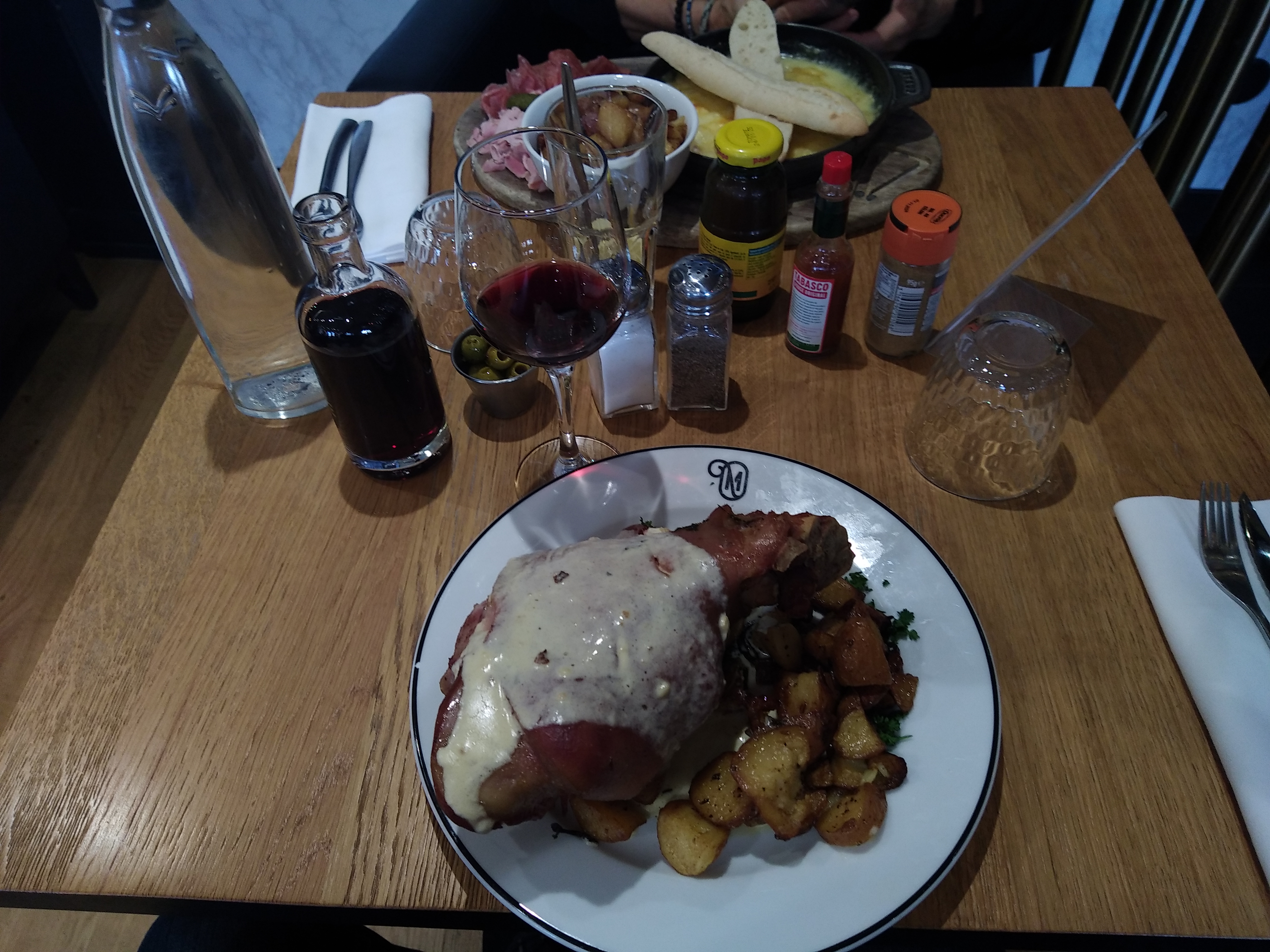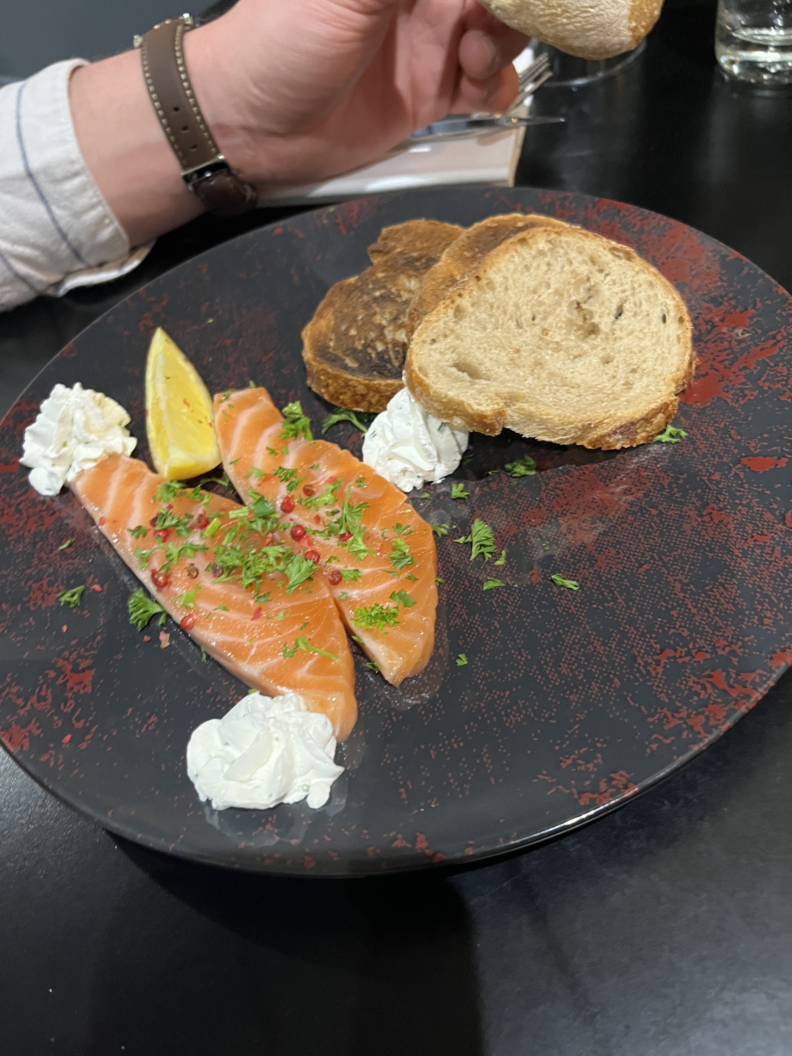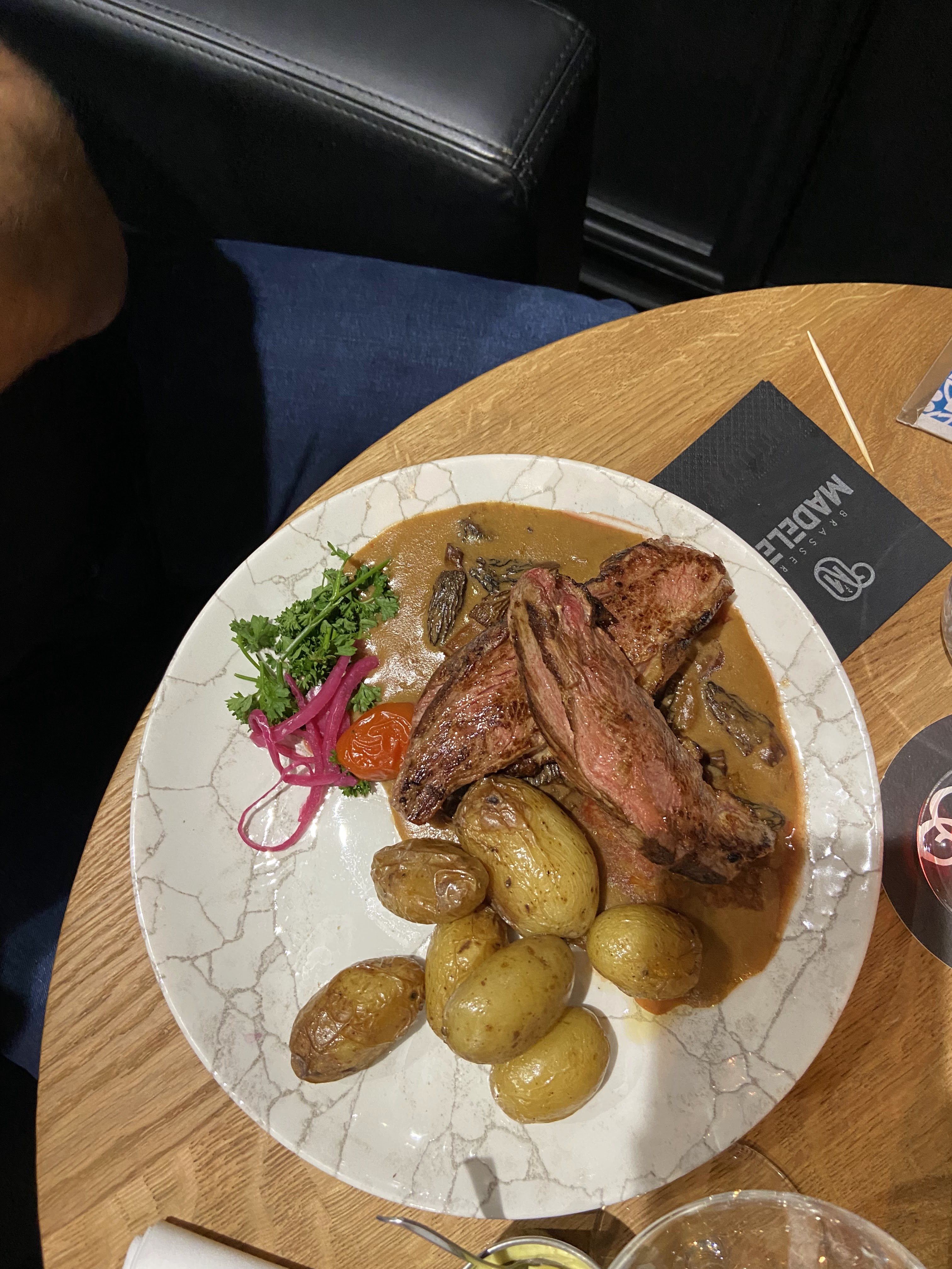 Je suis arriver a 17h20, bien accueilli avec ma compagne . Le verre de rhum plantation Xo 20 th anniversary juste incroyable avec un tiramisu café fait maison en attendant de manger une heure après ,ma compagne a pris l'un des côte d'Auvergne fruité est excellent au palais très peu d'amertume j'ai pris un autre rhum qui est le ZAPACA XO CENTENARIO ,passons au choses sérieuse, ma compagne et moi avions pris des burrata crémeuses en entrée qui étais visuellement très propre et raffiné au niveau du détail ,pour la suite elle a pris fish an chips de cabillaud qu'elle a trouver de croustillant et moelleux a la fois avec frite maison pas brûler 😊 et pour ma part une entrecôte de 300 gr tout juste a point comme voulue et très salivante en terminant avec trois magnifique petite profiteroles vanille en dessert et un très bon tiramisu café pour ma compagne qui avais aimer le mien un peut plus tôt dans la journée un repas tout juste extraordinaire,exquis tout ce que vous voulez rien a y redire même pour les serveur qui sont très avenant en vers leurs clients et très pro niveau commande pas de carnet dans les mains '👍👍👌👌👌👌👌👏👏👏
