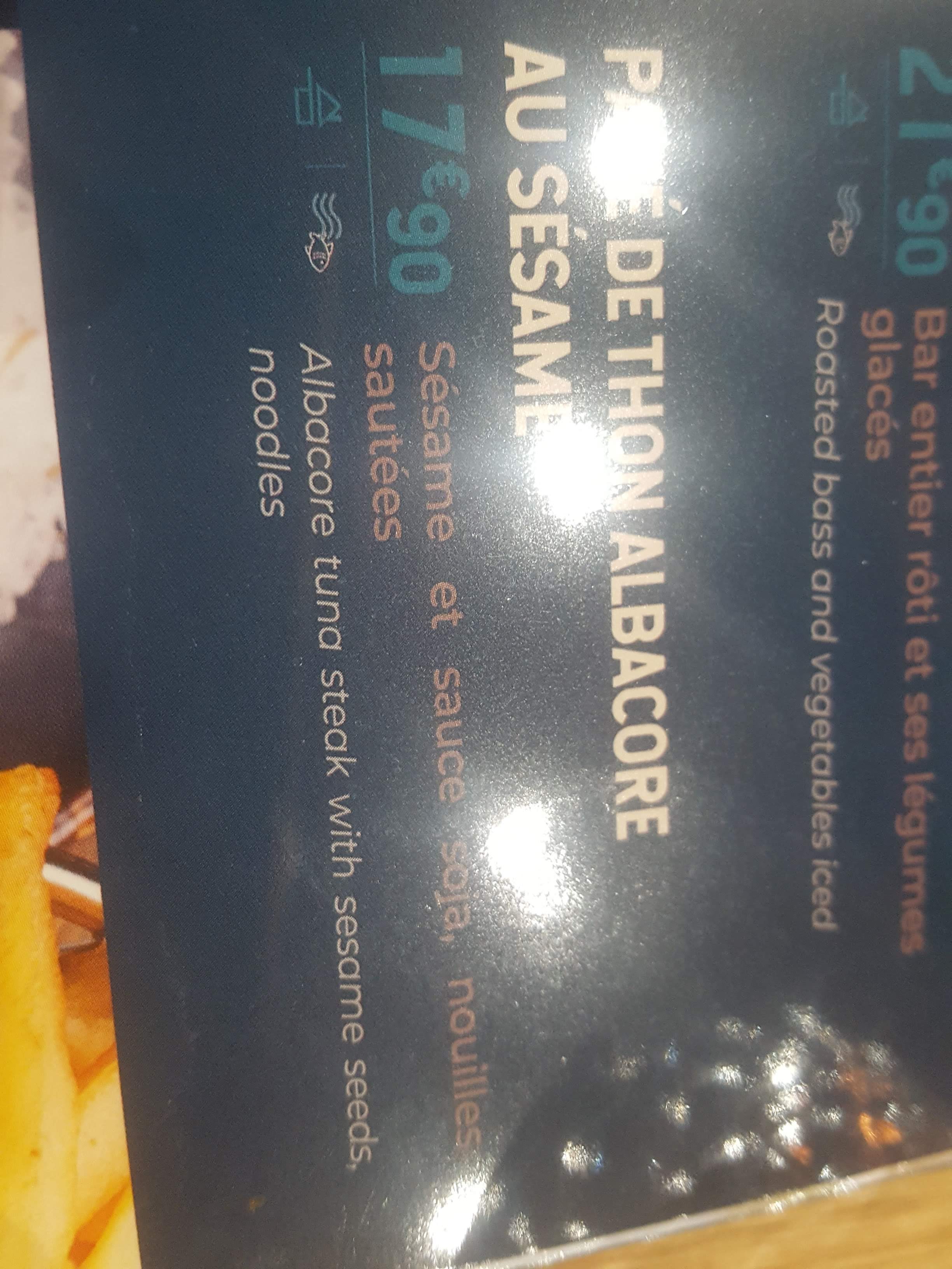 Déçue. On a eu la carte en main. On avait prévu de manger des moules en entrée . Au moment où la serveuse arrive, elle nous dit on n'a pas de moules. On a pri des bulots. Le serveur pressé ce jour là nous a jeté l'assiette de boulots sur la table. Pas de pain. On a eu du mal à avoir de l'eau. On a arrêté de demander du pain. Les plats sont arrivés tièdes. La souris d'agneau au thym fade. La sauce trop diluée sans goût. Le thon sésame tiède également. Présentation bâclée pâtes jeté dans le bol. Dommage goûteux. On est parti sans prendre de desserts. Super pour une soirée anniversaire de mariage.