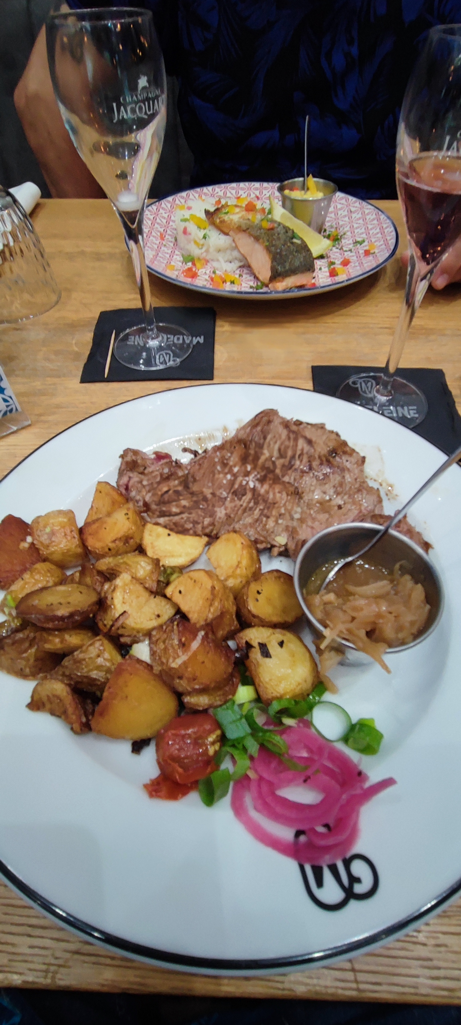 Toujours un agréable moment ! Nous venons régulièrement à la brasserie Madeleine idéalement située place de la Victoire. Le décor est joli et spacieux. Les fruits de mer sont une valeur sûre qu’on prend très souvent en entrée ! Petite découverte: la flammenkueche ! Très très bonne et très copieuse. Au plaisir de revenir